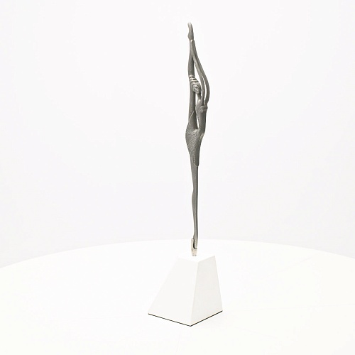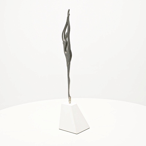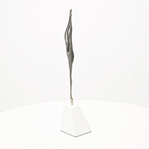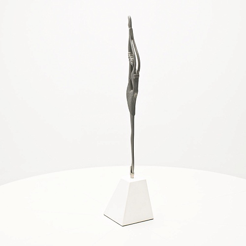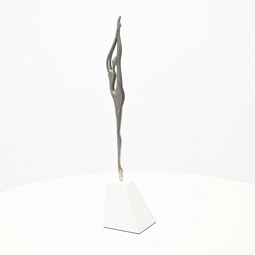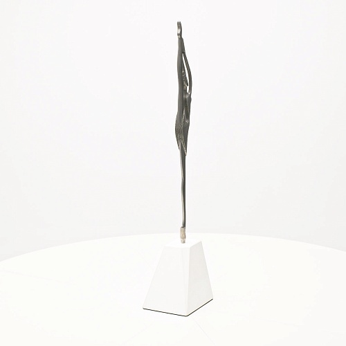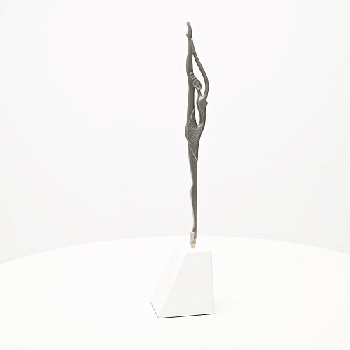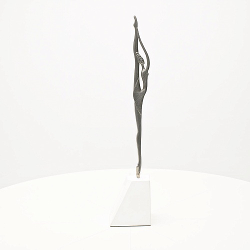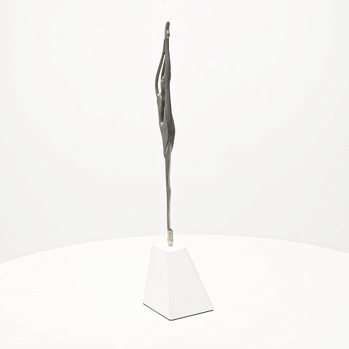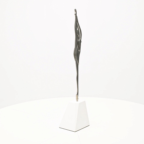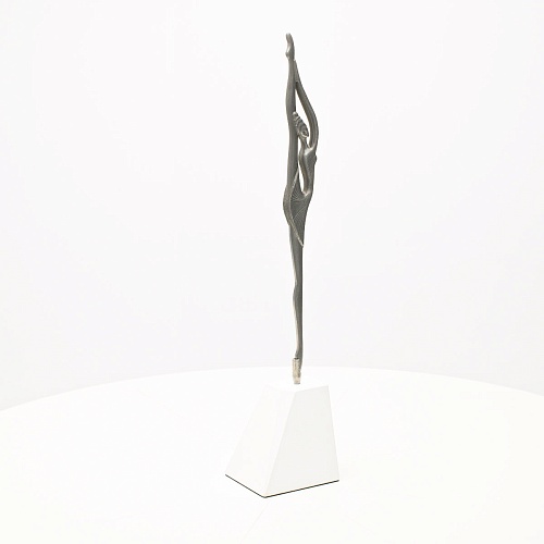 Композиция «Соло» представляет собой танцовщицу в момент исполнения танцевального движения. Летящая, изящная и воздушная, как натянутая струна балетного нерва, она удерживает взгляд зрителя. В ее образе воплотились нежность и сила одновременно, и это не противопоставление, а целостность, гармония противоположностей. Она создана для танца бесконечности. Ее линии, пластичные и музыкальные, стремятся ввысь, разрезая пространство. Создается впечатление важности каждого мимолетного движения, ведь оно как раз и может оставить след в памяти вечности.