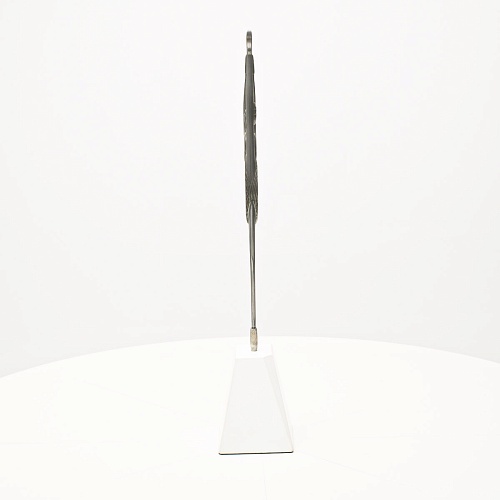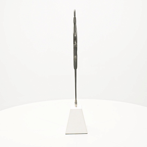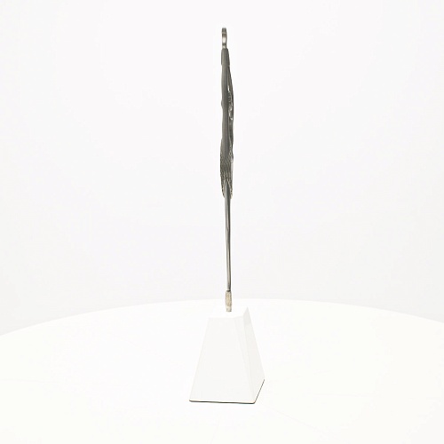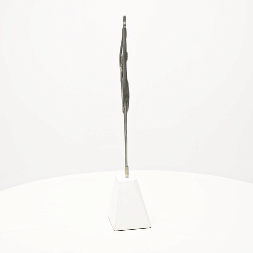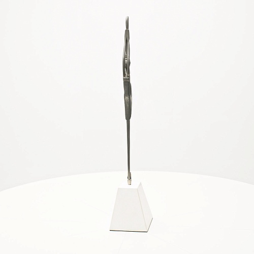 Композиция «Соло» уникальна с точки зрения технической реализации. Фигурка танцовщицы изготовлена вручную из цельной заготовки дамасской стали Zladinox. В изделии нет ни одного крепления и узлов соединения деталей. Изделие отличает минимализм, эстетика, классическое сочетание светлого и темного. Никаких дополнительных украшений не требует к себе «Соло» – она сама по себе красива и одухотворена. Тонкая фигура практически парит в воздухе, а женская ножка стоит на кахолонге – камне удивительной чистоты, молочно-белого цвета.
