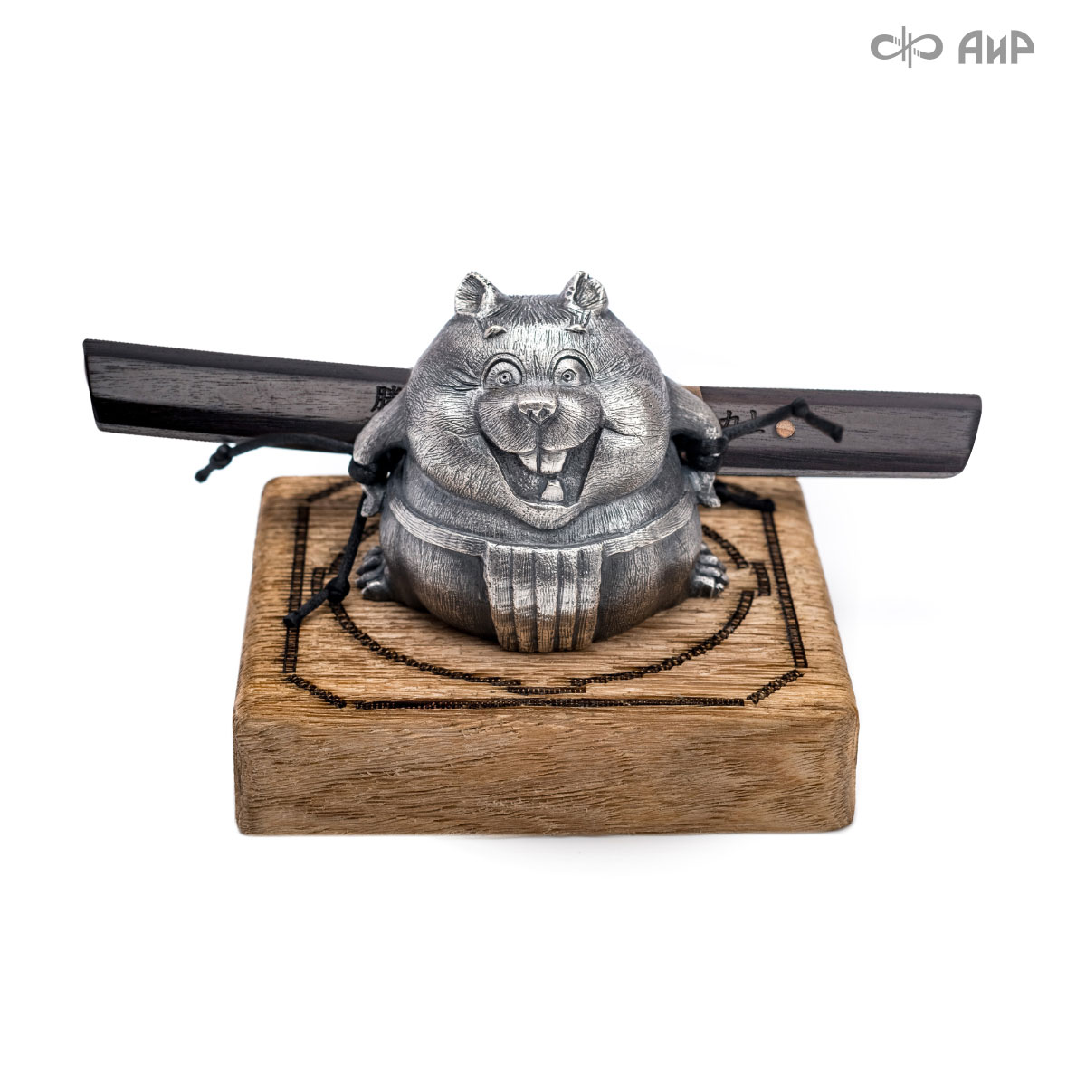 Шутливая композиция «Хома Рикиси» вызовет улыбку даже у самого серьезного человека. Герой композиции – крупный, упитанный хомяк, чемпион мира по борьбе сумо, вооруженный айкути (разновидность танто). Срок изготовления 25-40 рабочих дней, 100% предоплата.
