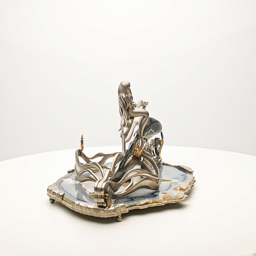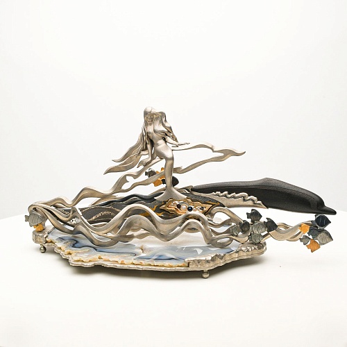 Чарующий и нежный, легкий и озорной образ нимфы с распущенными волосами рядом с надежным дельфином – аллегорией спасения, свободы и благородства – вызывают самые прекрасные чувства и эстетическое наслаждение.