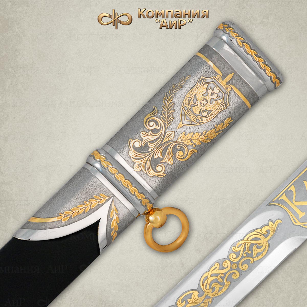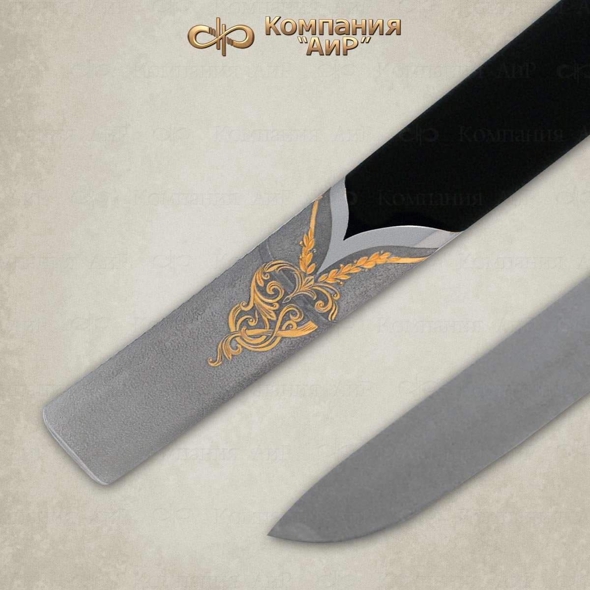 Компания «АиР» специализируется на изготовлении казачьих шашек, украшенных в художественном стиле златоустовской гравюры на металле. Клинок стальной, незначительной кривизны, однолезвийный, с одним широким долом. На клинке методом травления, золочения нанесен орнамент, включающий воинскую атрибутику: скрещенные клинки, лавровые ветви и др. Эфес состоит только из деревянной рукояти. Навершие рукояти латунное, раздвоенное, с отверстием для темляка. Внизу на рукояти находится латунная втулка-упор. Ножны деревянные, обтянутые кожей. Прибор ножен состоит из устья, гайки и наконечника. Навершие, устье и наконечник декорированы в стиле златоустовской гравюры на металле.