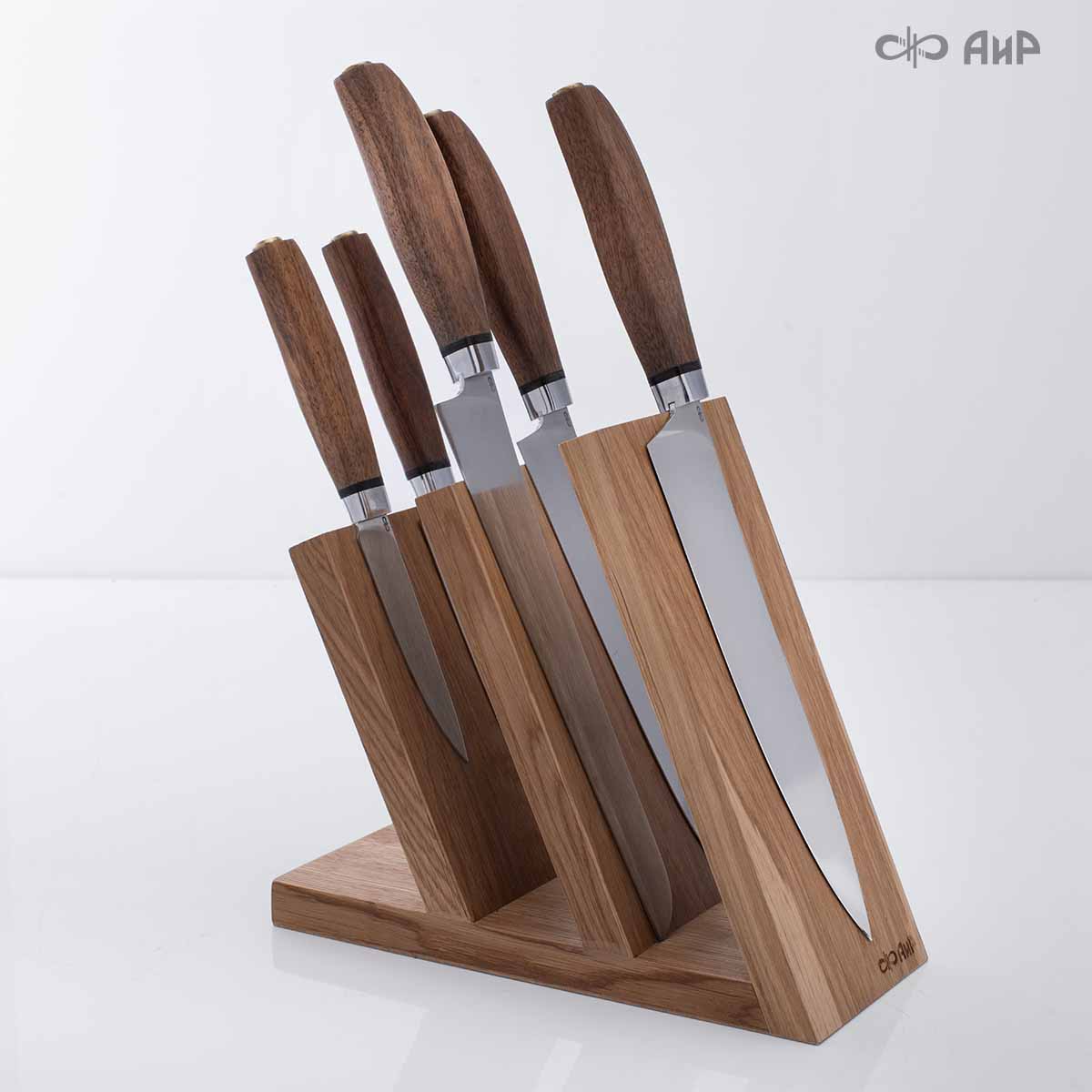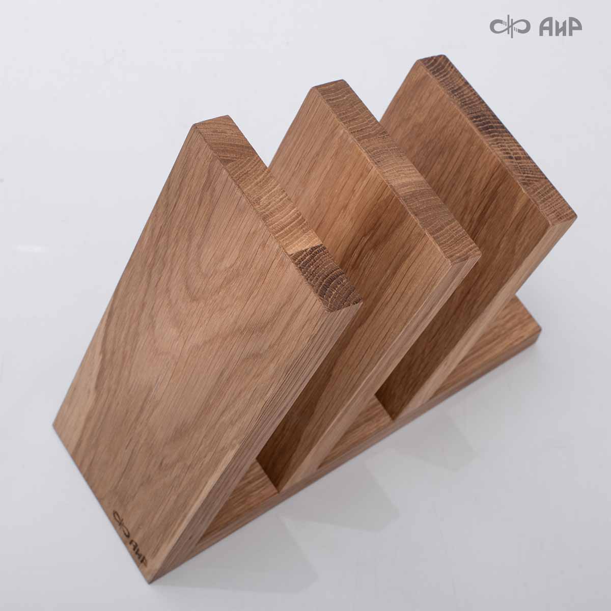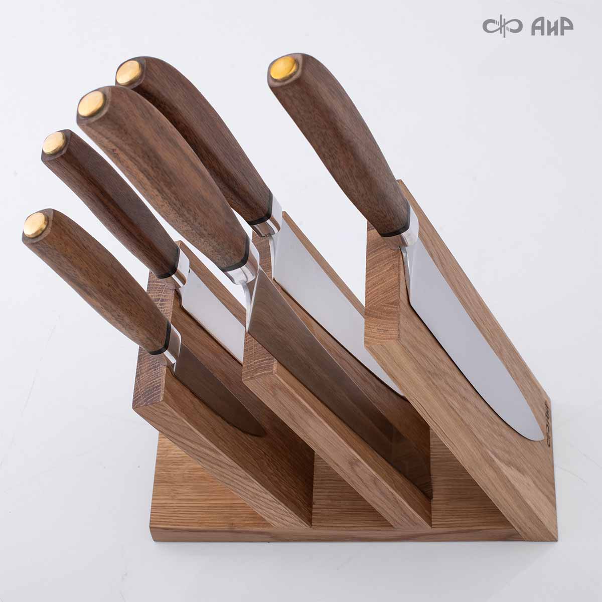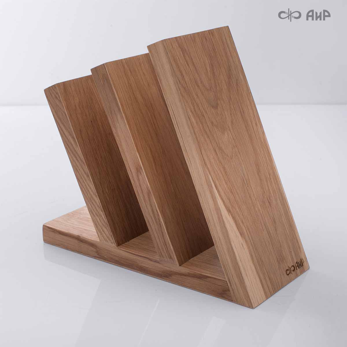 Удобный держатель для ножей из натуральной древесины дуба, который можно разместить прямо на столе.