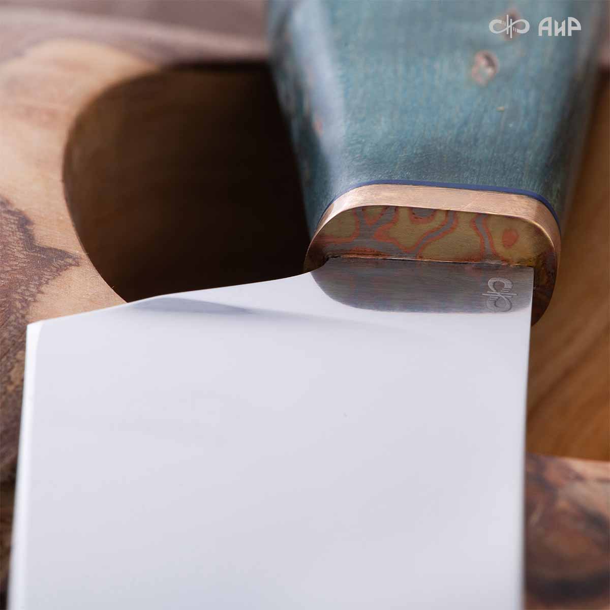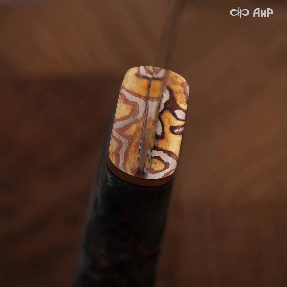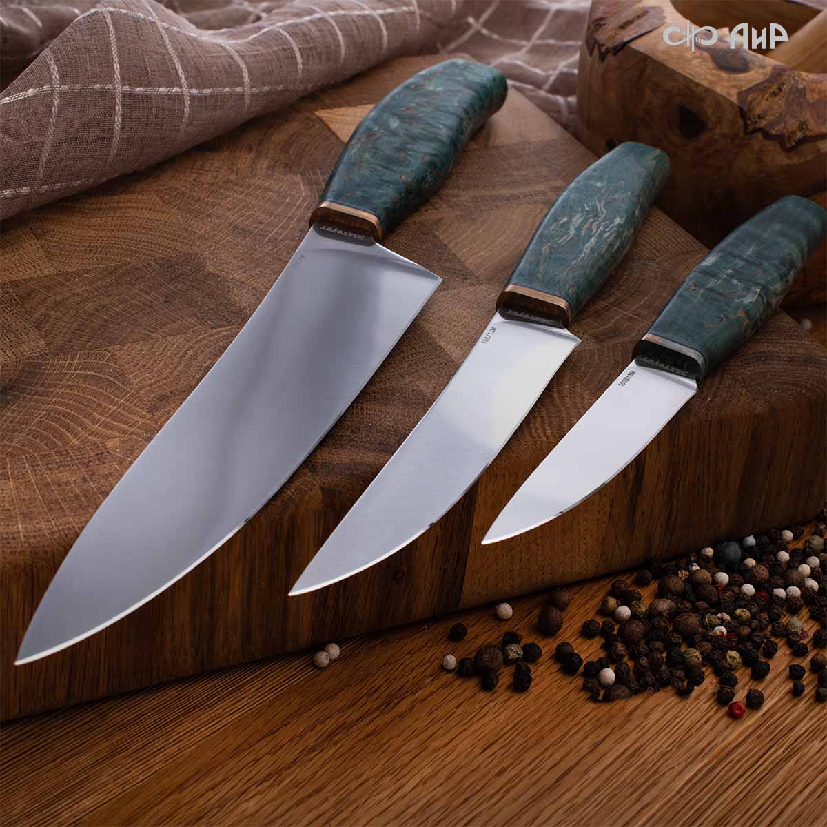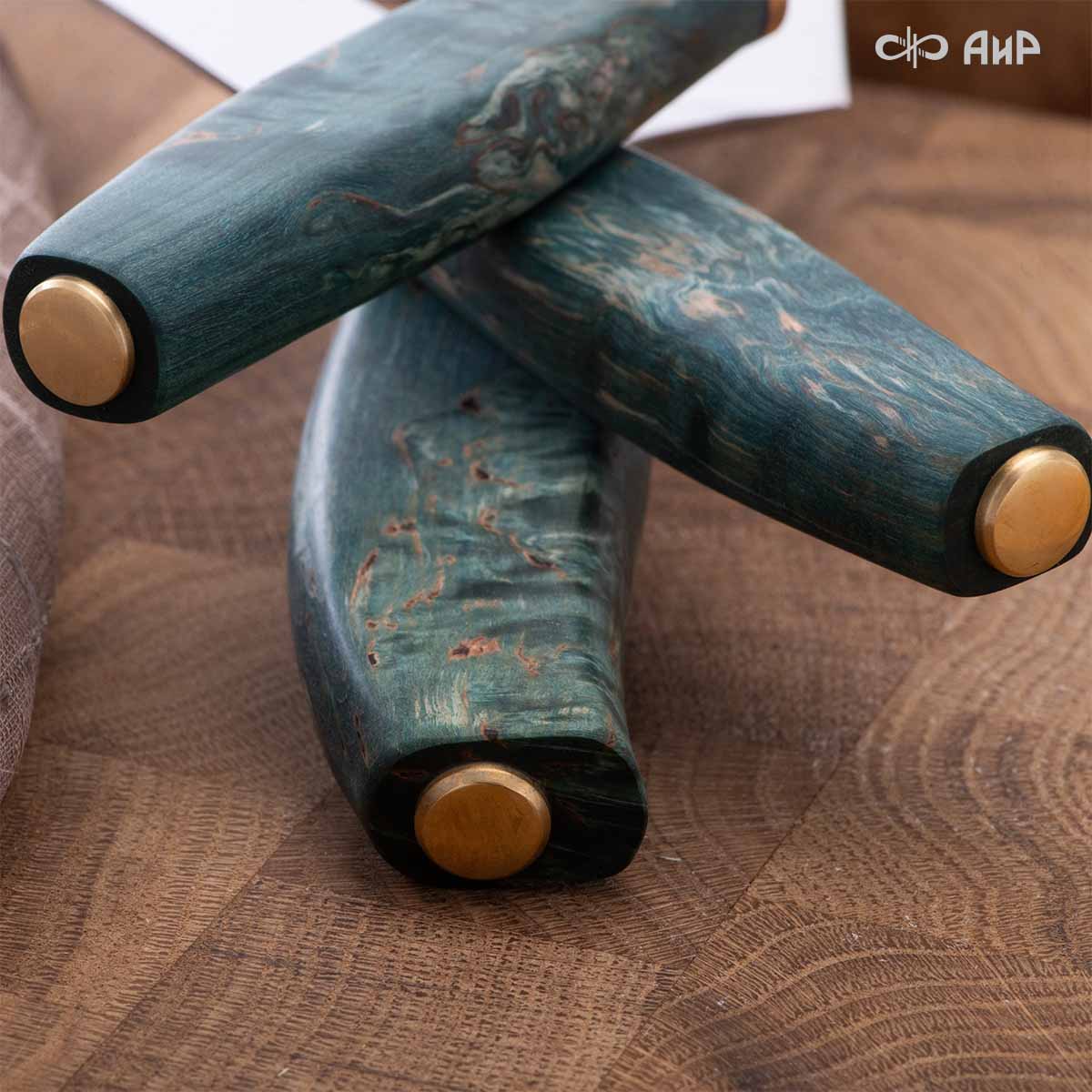 Набор Поварской-3 (стабилизированная карельская береза зеленая, мокуме гане 3 мм)