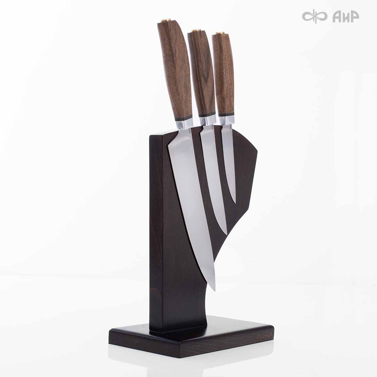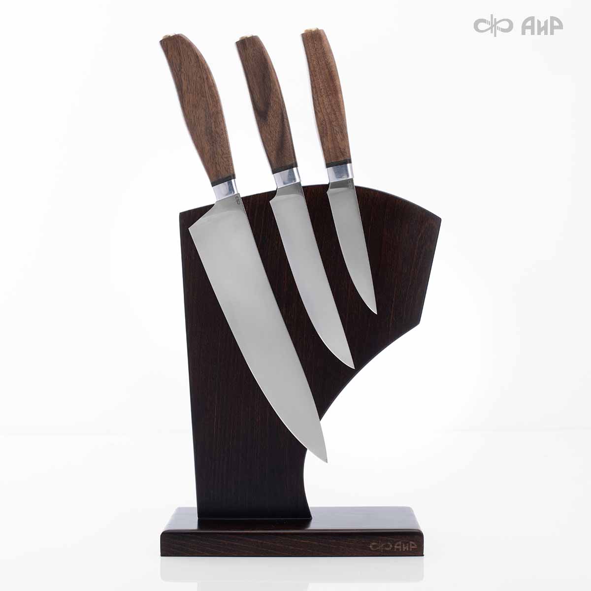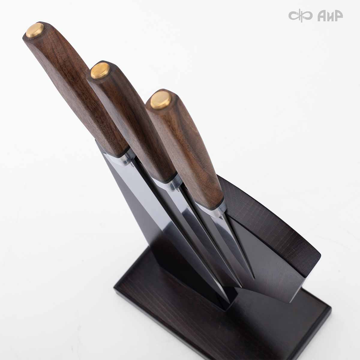 Удобный держатель для ножей из натуральной древесины бука, который можно разместить прямо на столе.