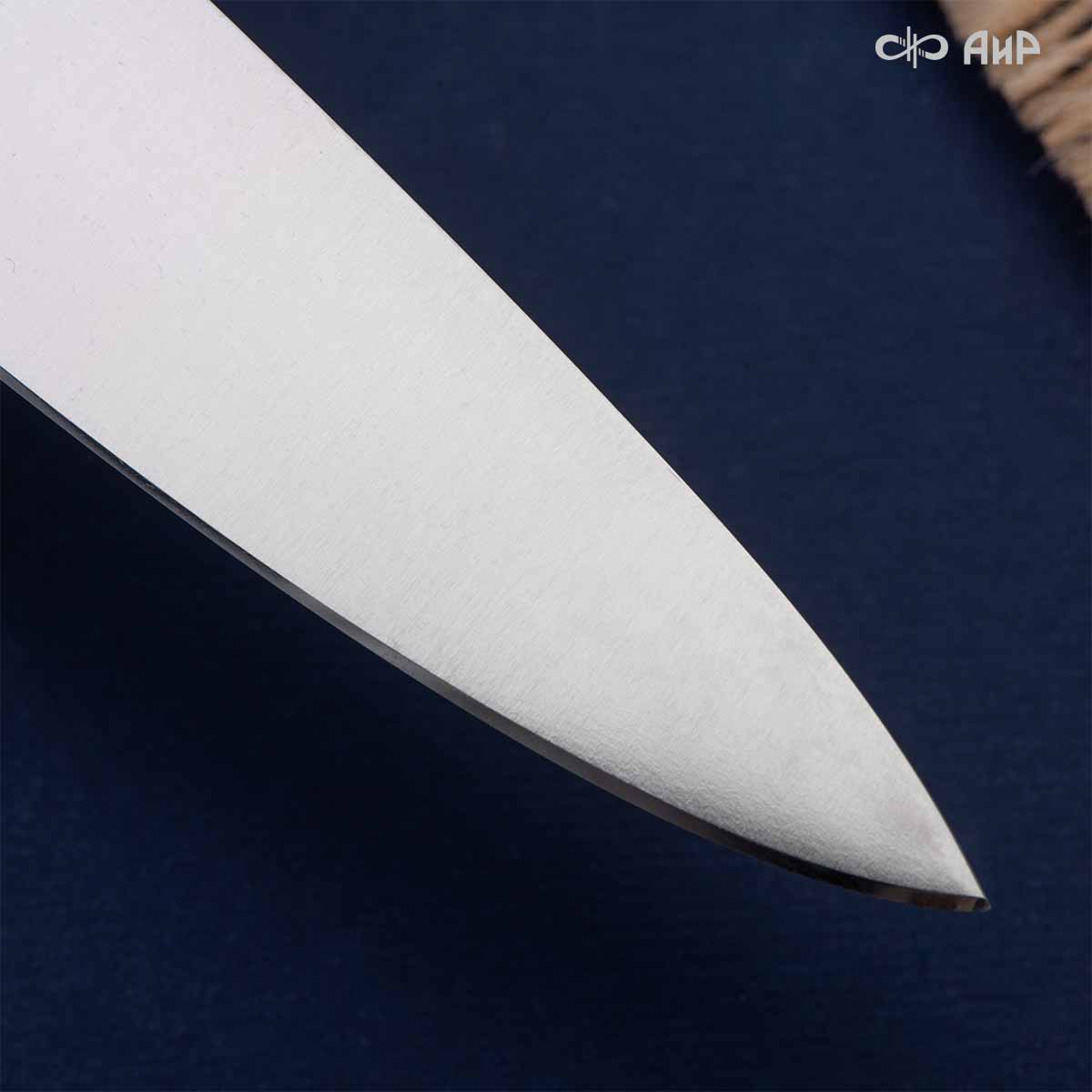 Нож «Шеф малый» имеет короткий клинок с прямыми спусками и маленькую эргономичную рукоять. Такой нож – хороший помощник на кухне. Предназначен для чистки, нарезки и шинковки овощей, фруктов, корнеплодов. За счет компактных габаритов и острого лезвия нож «Шеф малый» идеально пригоден чистки продуктов, декоративного оформления и вырезания фигурок из овощей и фруктов. Нож «Шеф малый» входит в состав набора «Шеф ЦМ». Выполняется с накладным монтажом рукояти.