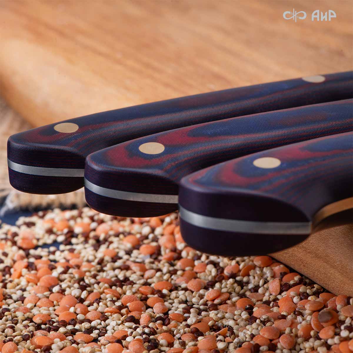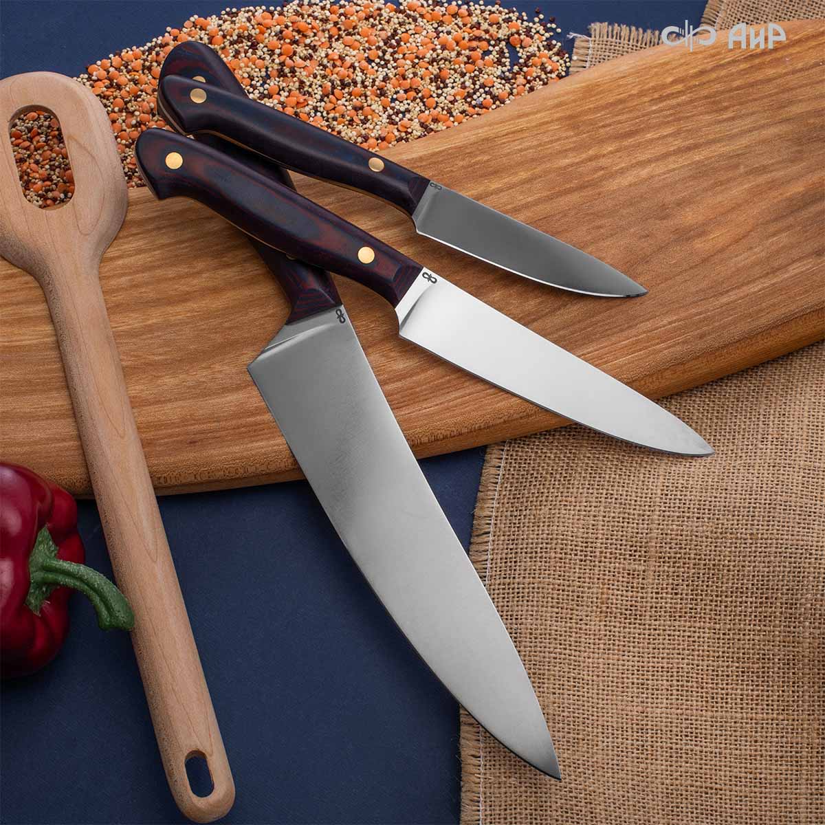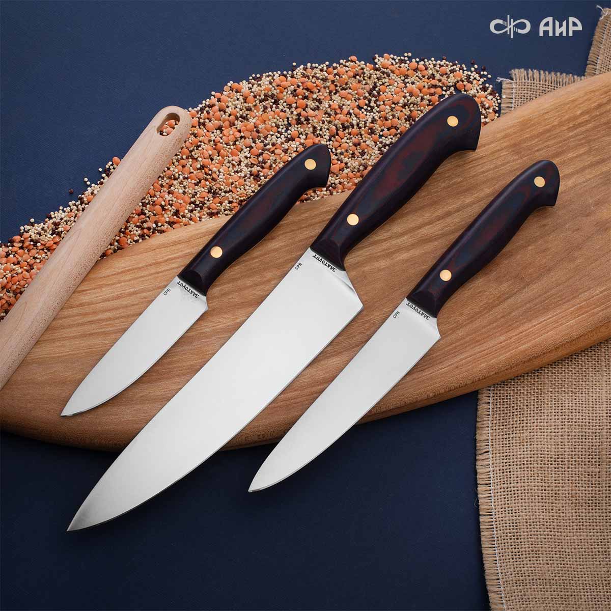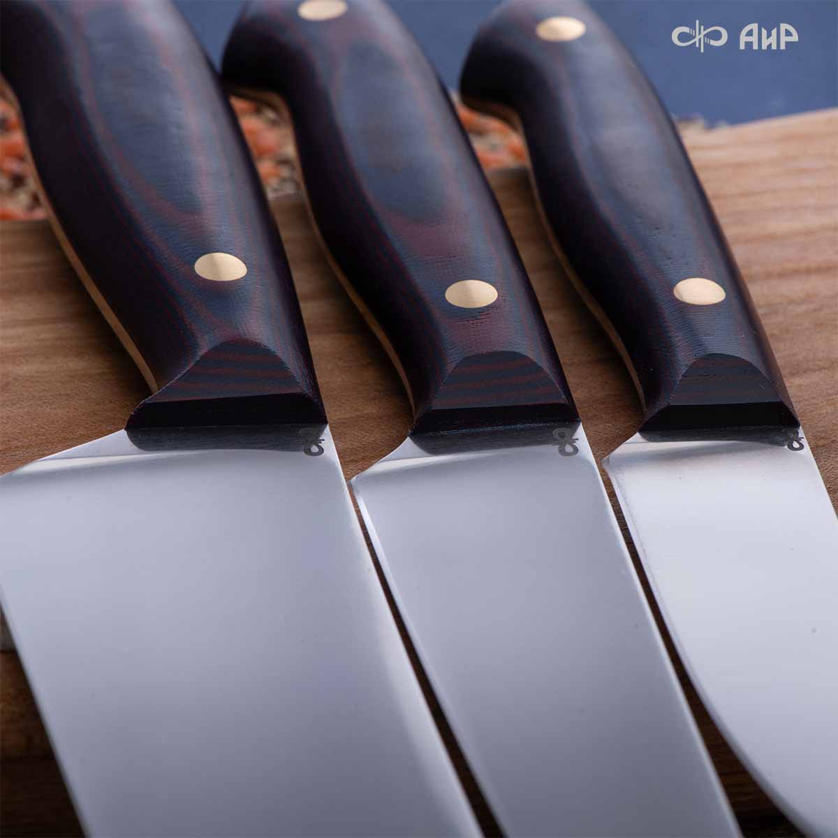 В набор входят следующие ножи: нож "Шеф большой", нож "Шеф средний" и нож "Шеф малый". Кастомная заточка