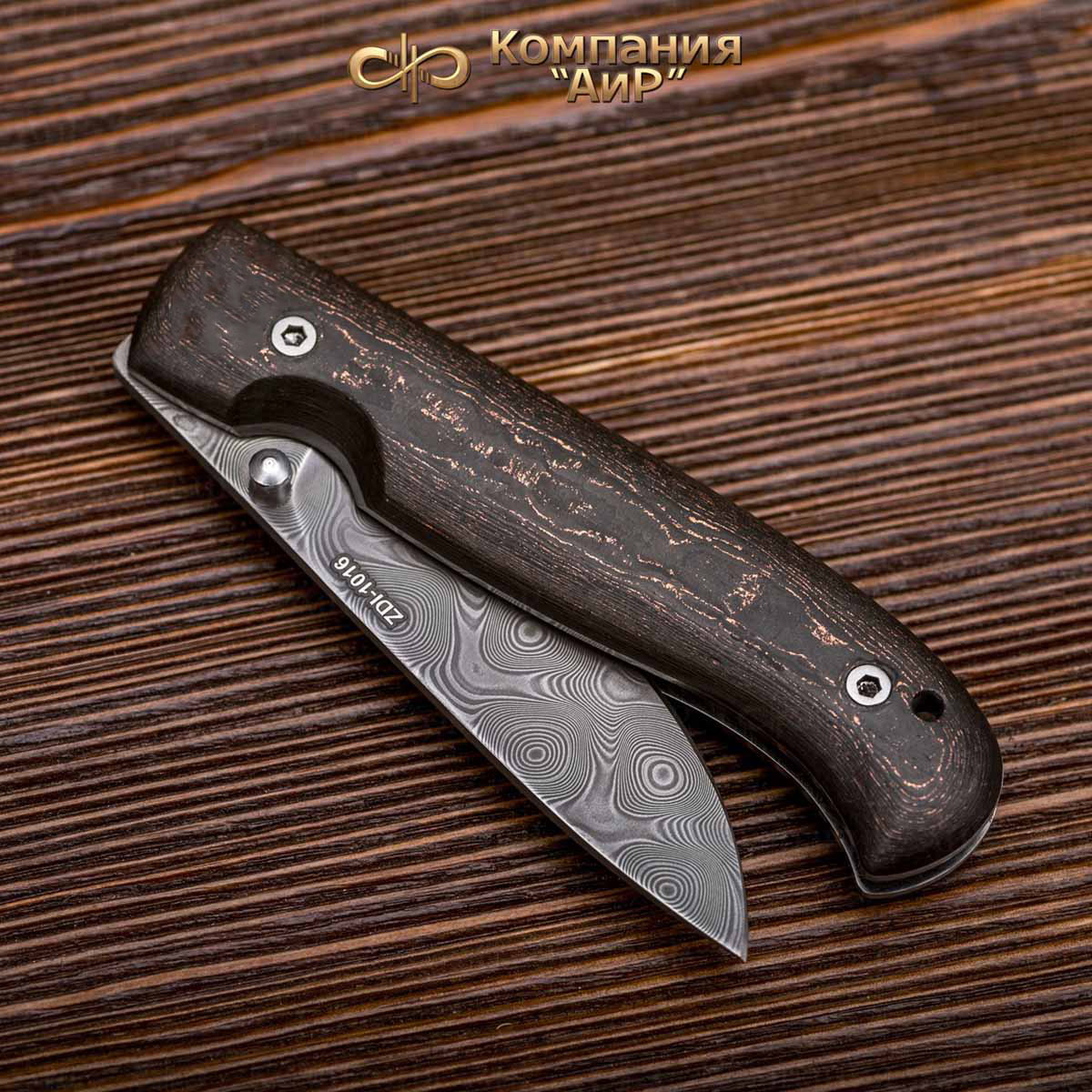 Складной (карбон мраморный с медью) дамасская сталь ZDI-1016, узор пирамида