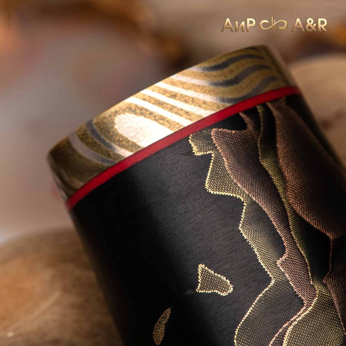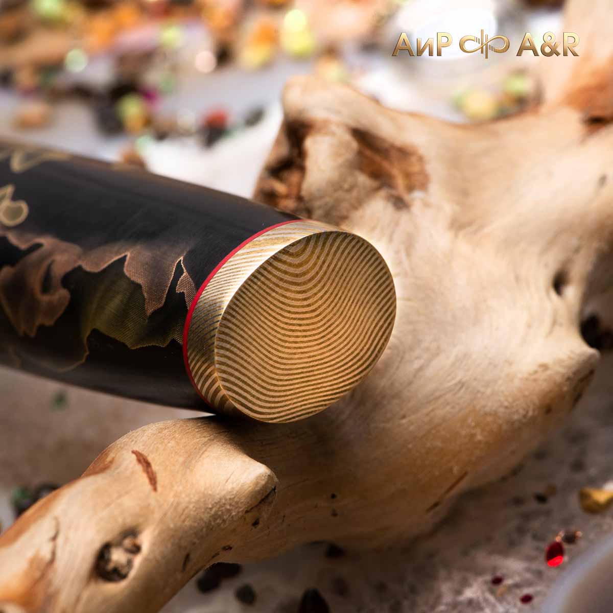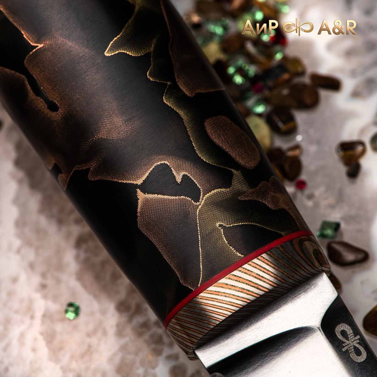 Финка Сканди (композит с латунью и бронзой "волны" черный, мокуме гане, фибра)