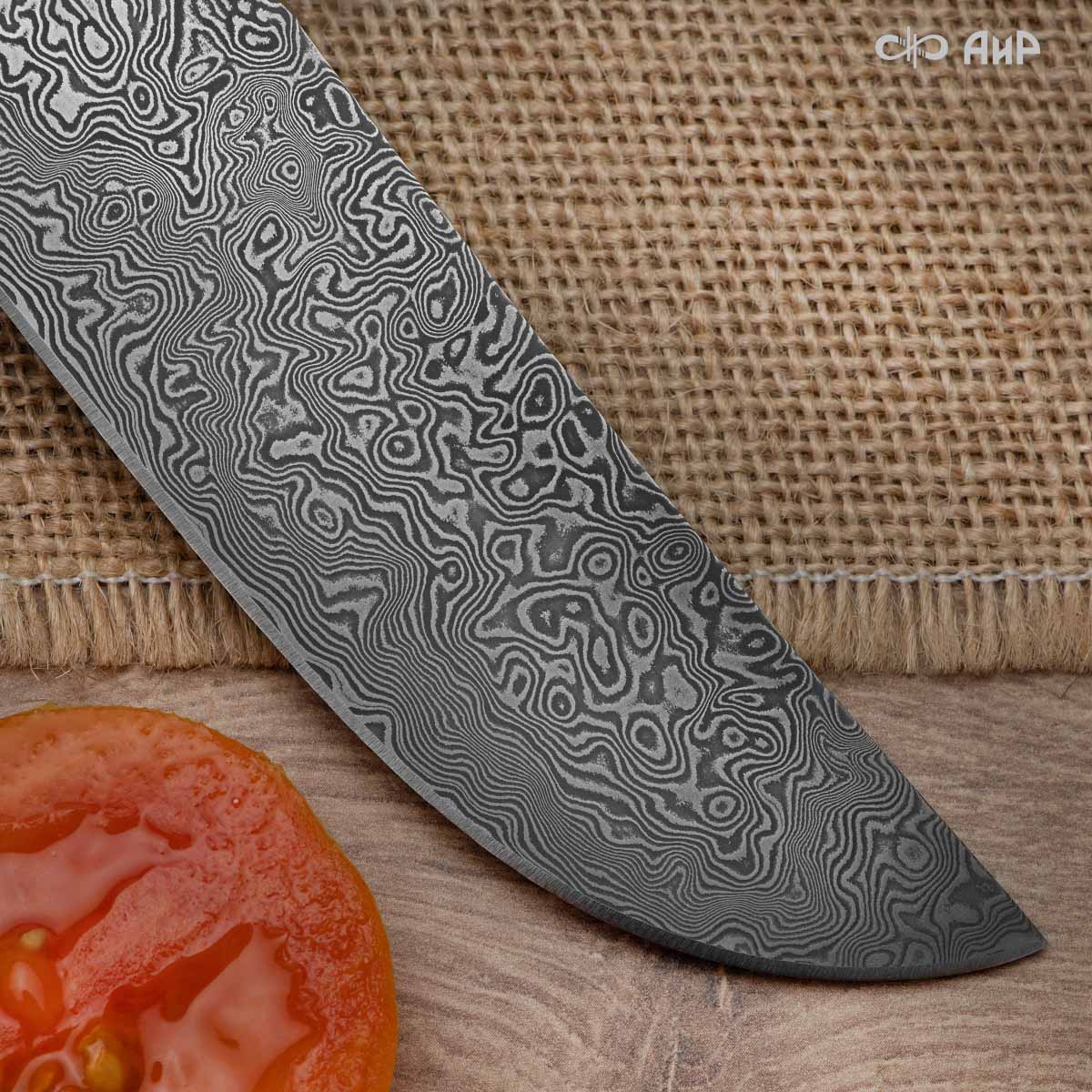 Пчак цельнометаллический (от узб. pichoq – нож) – традиционный узбекский нож. Отличительная особенность пчаков – это клинообразный в сечении, достаточно широкий клинок (значительно шире рукояти), рукоять, продолжающая линию обуха и соединяющаяся с клинком посредством больстера. Клинок может изготавливаться из различных сталей, как нержавеющей, так и дамасской. Форма острия у Пчака от Компании «АиР» называется «тугри» – то есть с прямым обухом. Вполне традиционен узкий дол «кома», идущий вдоль обуха с обеих сторон клинка. Рукоять достаточно узкая, ее головка имеет клювообразный изгиб – чакмок. Монтаж клинка накладной, неразборный. Пчак широко распространен по всей Средней Азии. Например, уйгуры считают, что у каждого уйгурского мужчины должен быть с собой пчак как нож повседневного ношения. В настоящее время пчаки идеально подходят для использования на кухне – для разделывания мяса, разрезания хлеба, фруктов, овощей, и, конечно же, сочных арбузов и дынь.