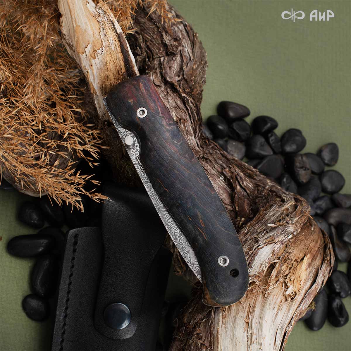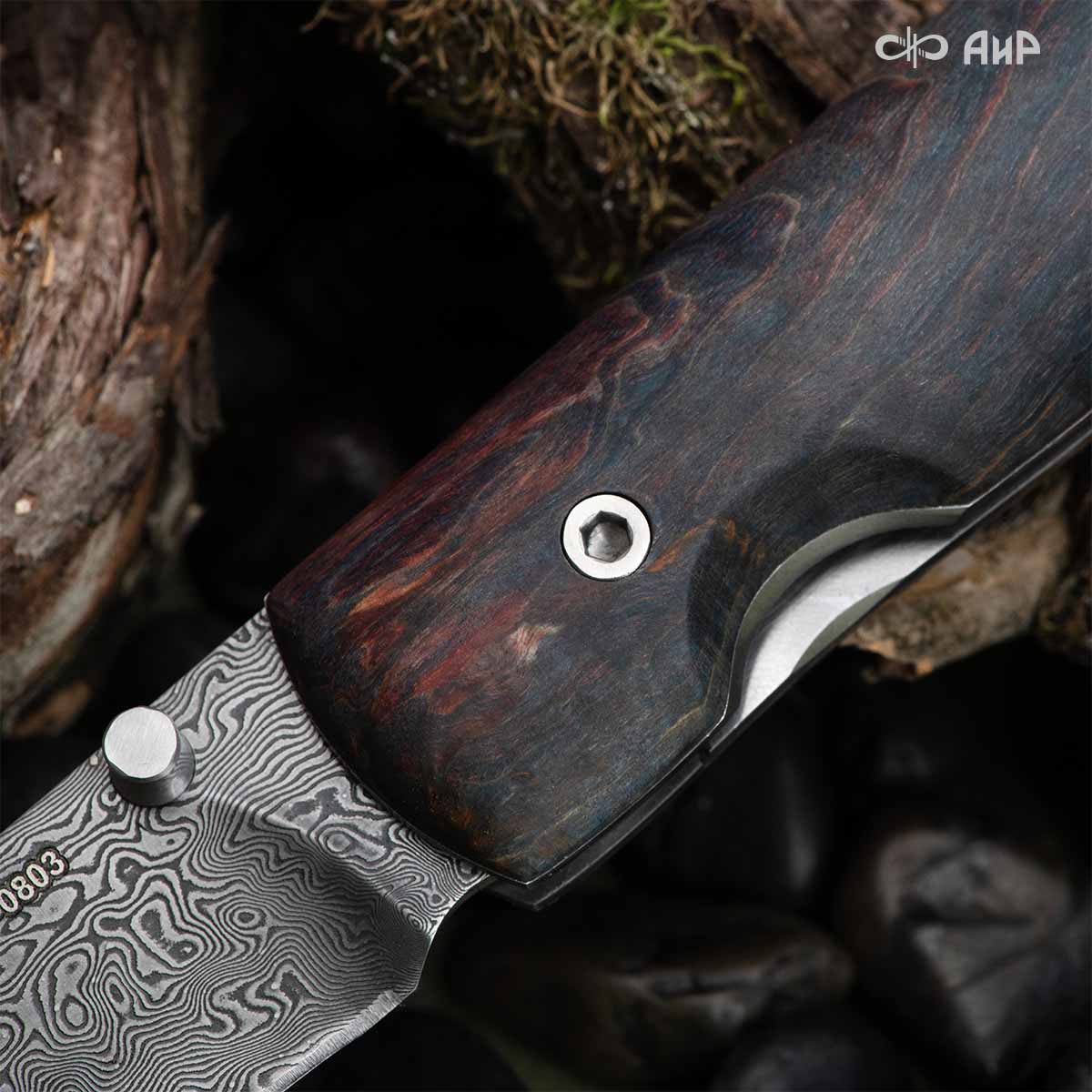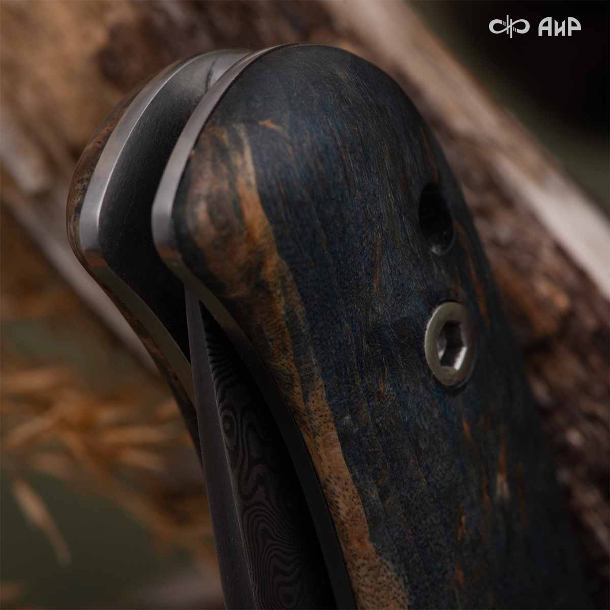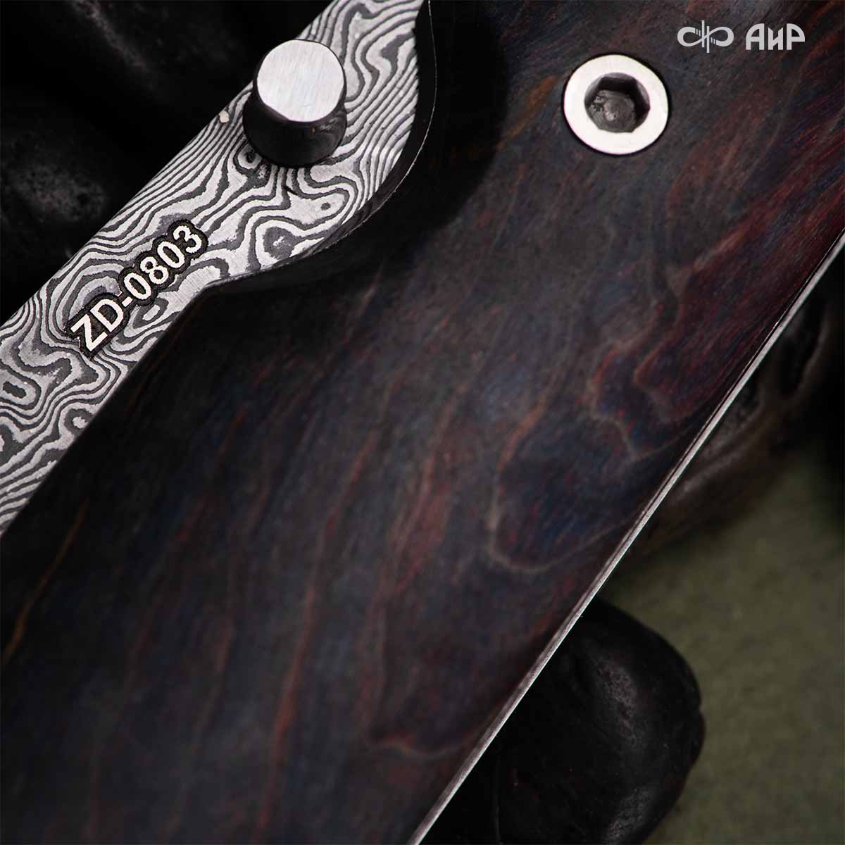 Складной (стабилизированная карельская береза лазурная) дамасская сталь ZD-0803