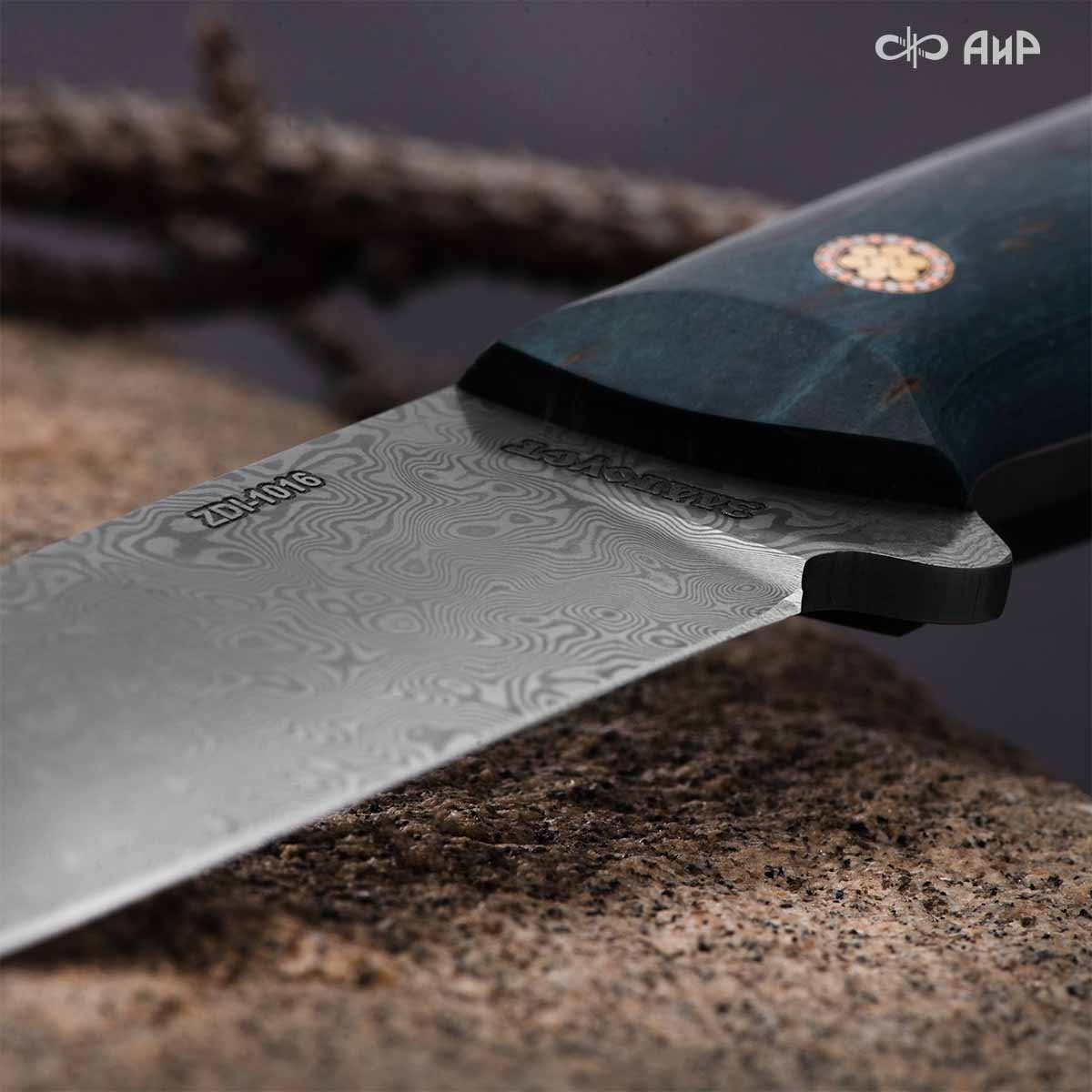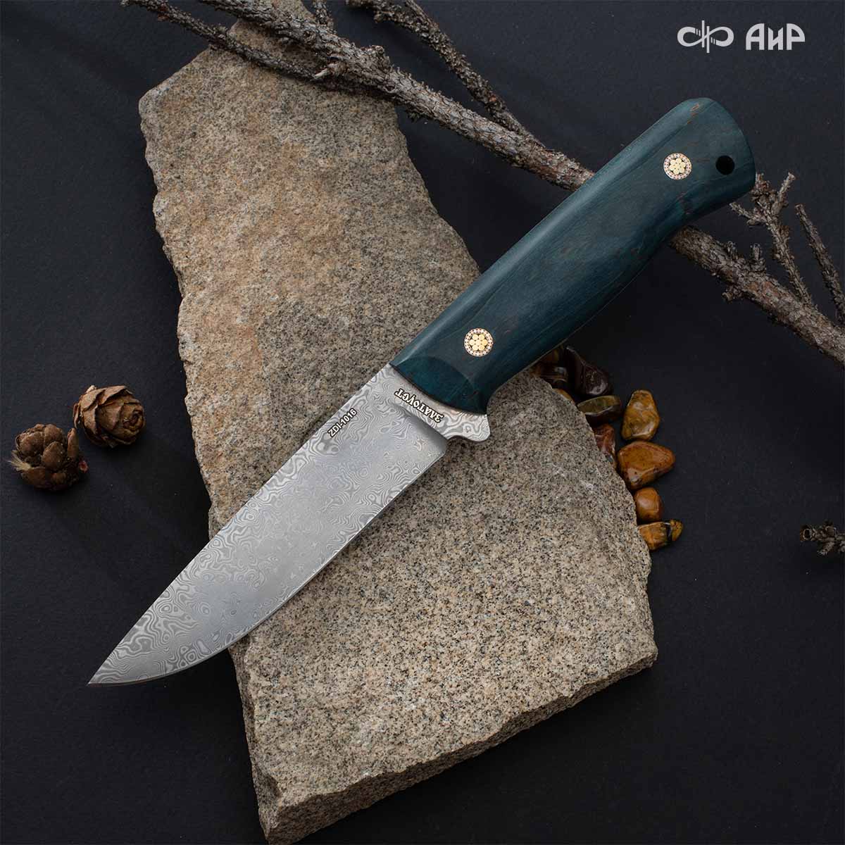 Стриж (стабилизированная карельская береза зеленая) дамасская сталь ZDI-1016