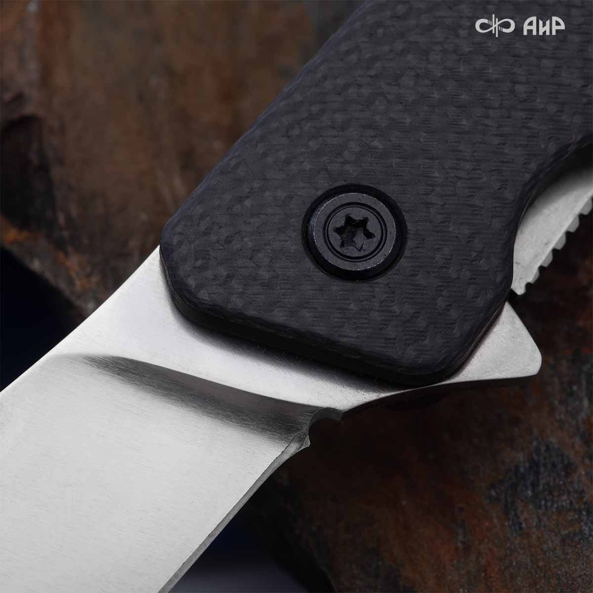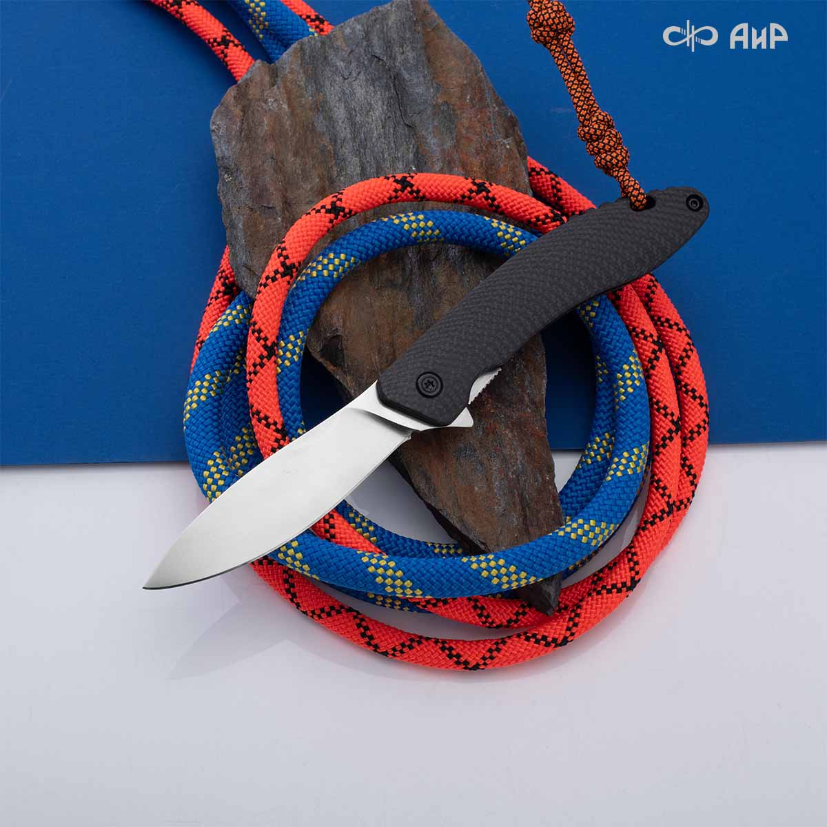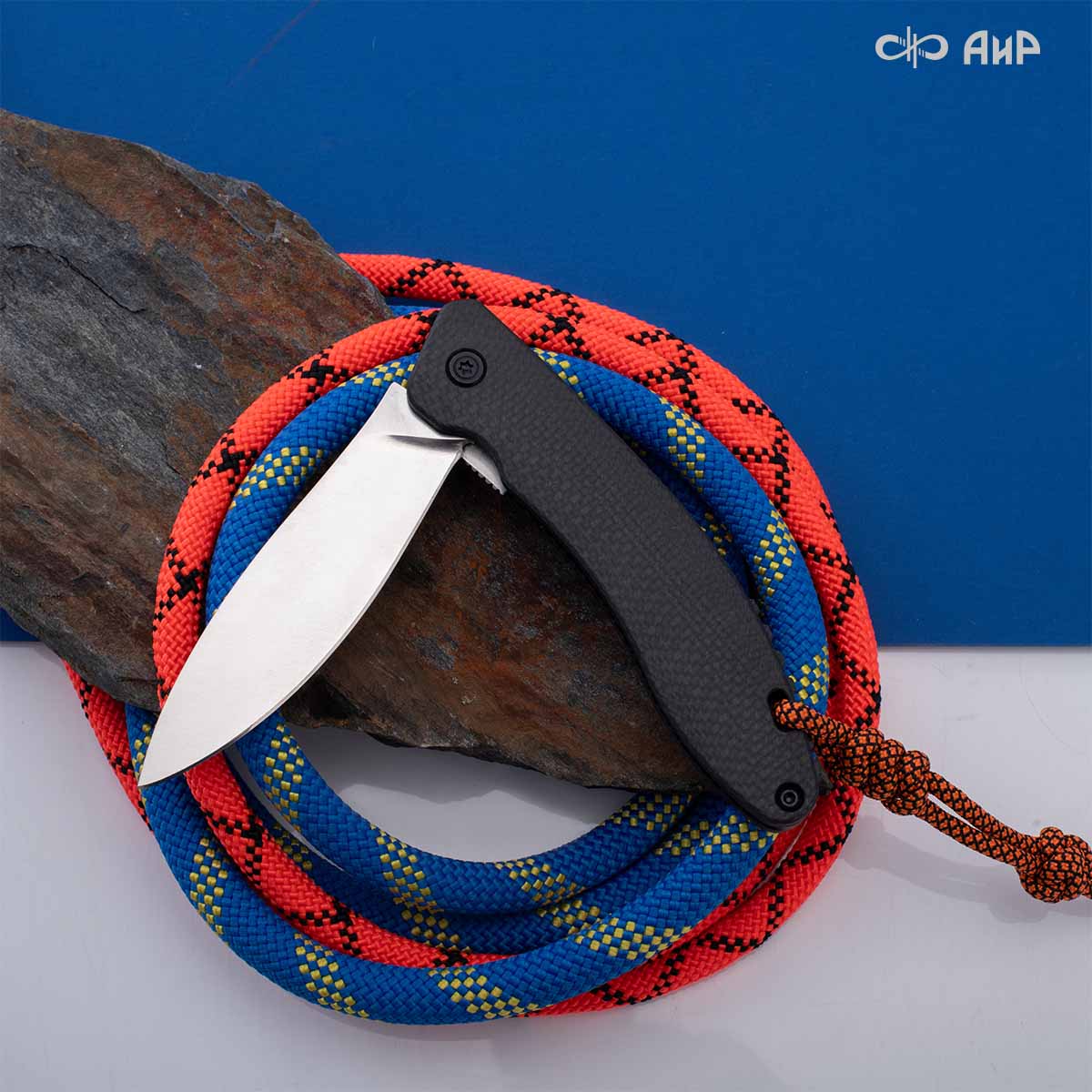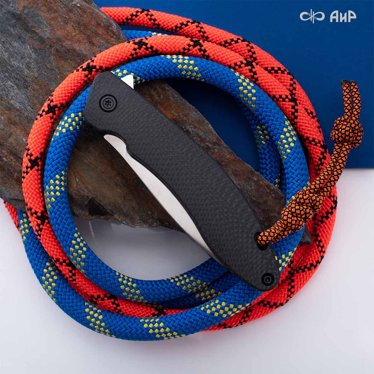 Флиппер («плавник»), расположенный на пяте клинка снизу у осевого механизма, позволяет легко и быстро открыть складной «Хантер» одной рукой. Замок типа Liner-Lock обеспечивает надежную фиксацию лезвия в открытом состоянии. Рукоять «Хантера» имеет эргономичную форму, позволяющую надежно удерживать нож в руке и контролировать движения. Доступные варианты материалов для накладок: микарта/G10, карбон, текстолит.