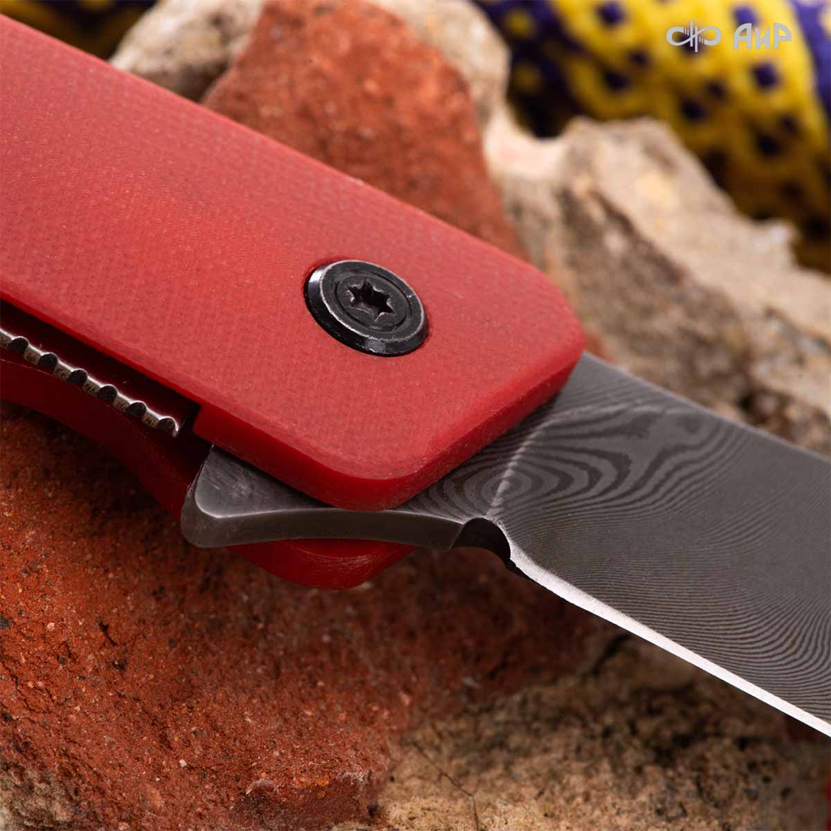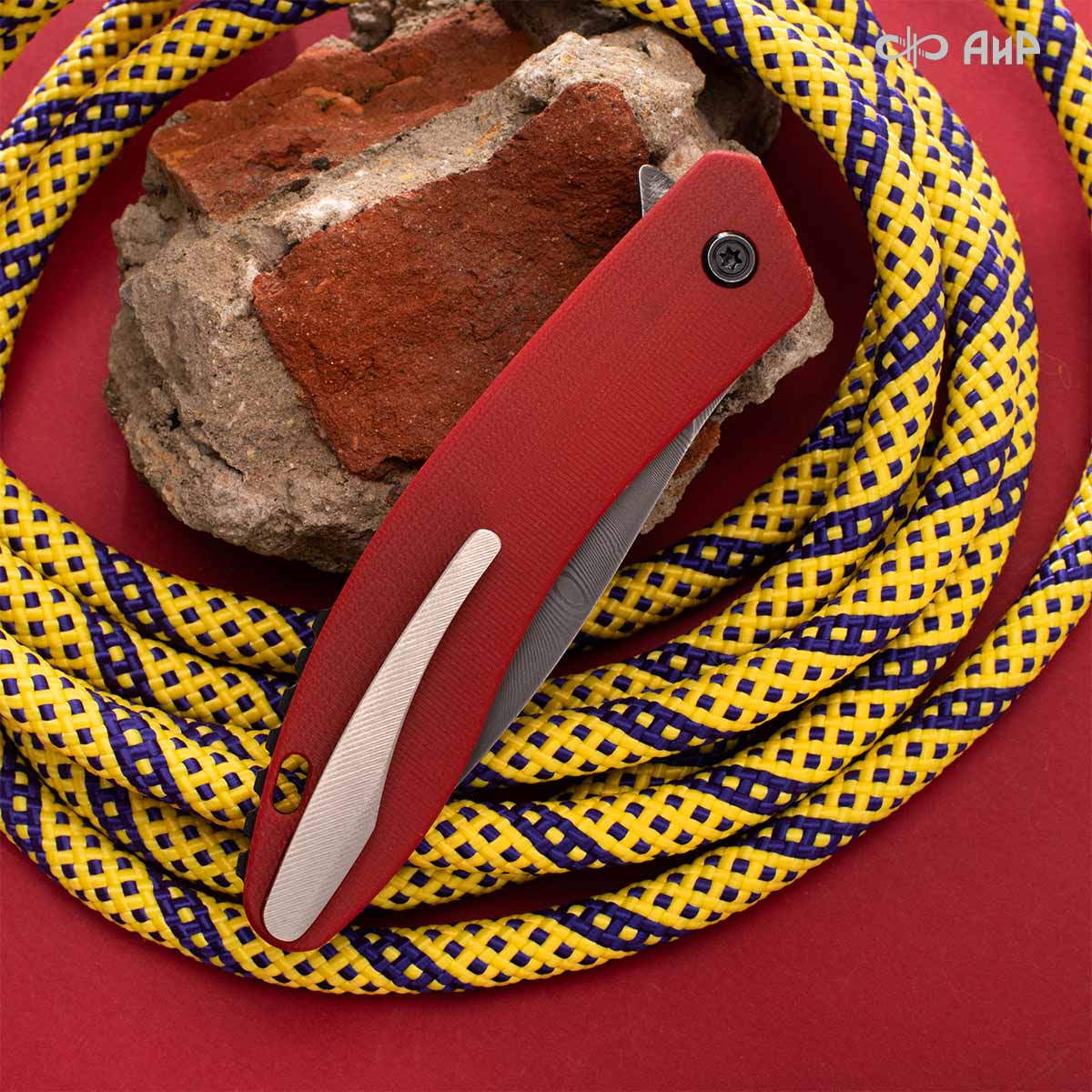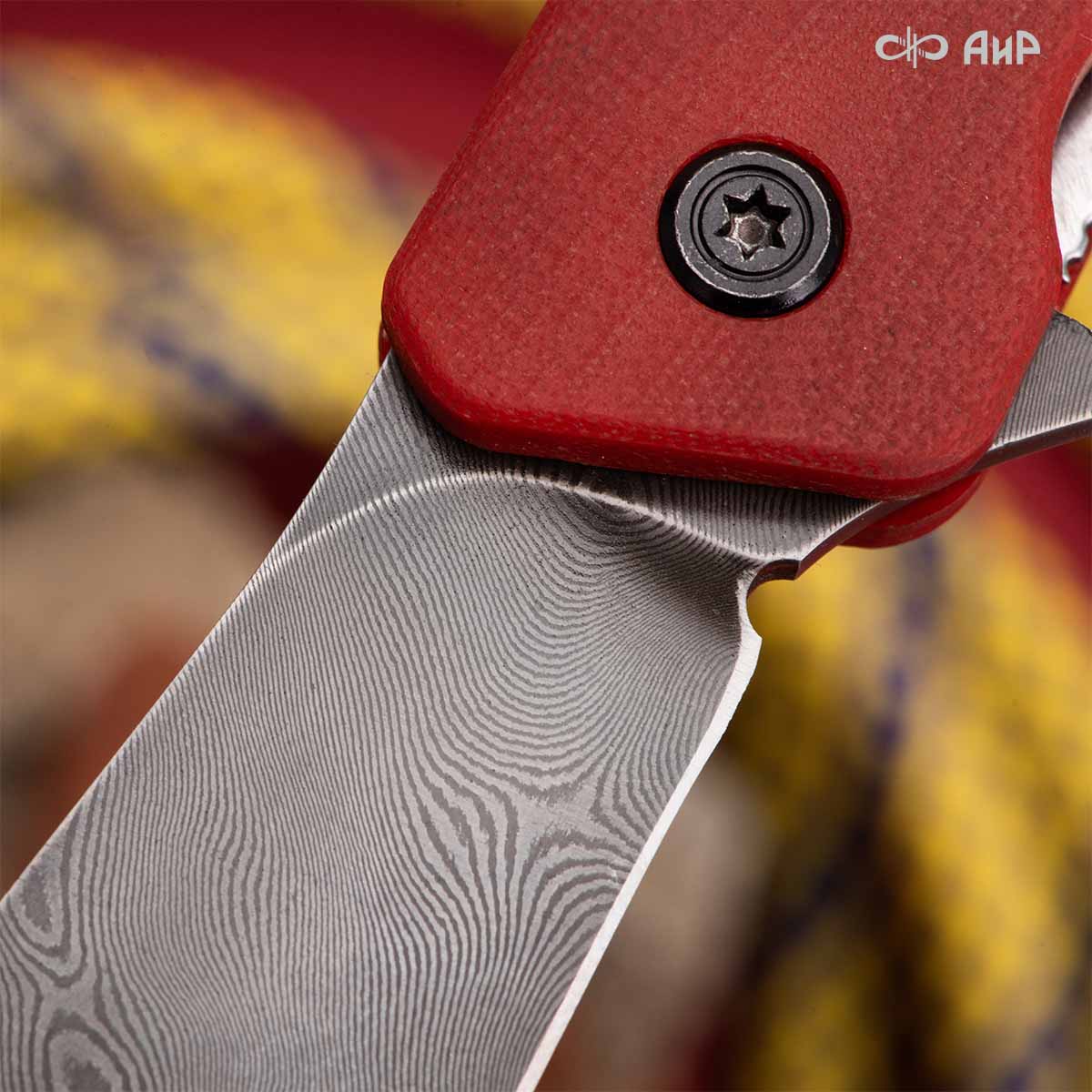 Хантер (G10 красный, кастомная заточка) дамасская сталь ZD-0803, узор твист