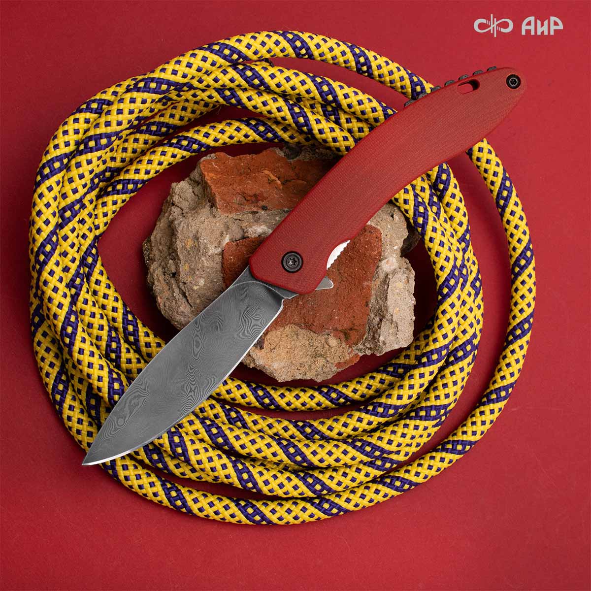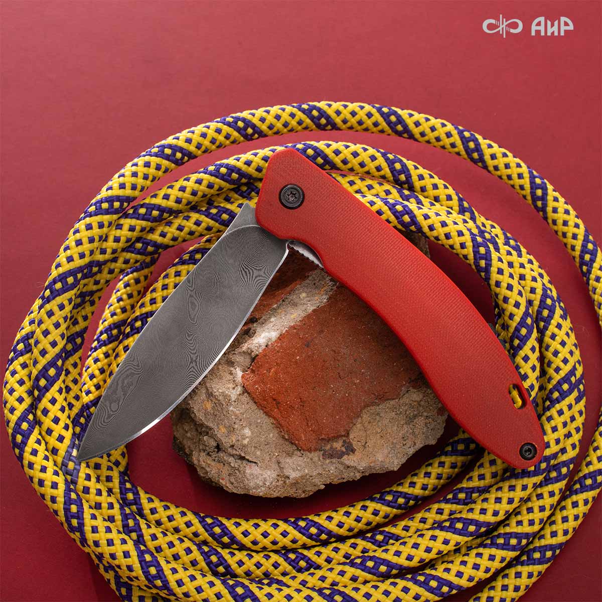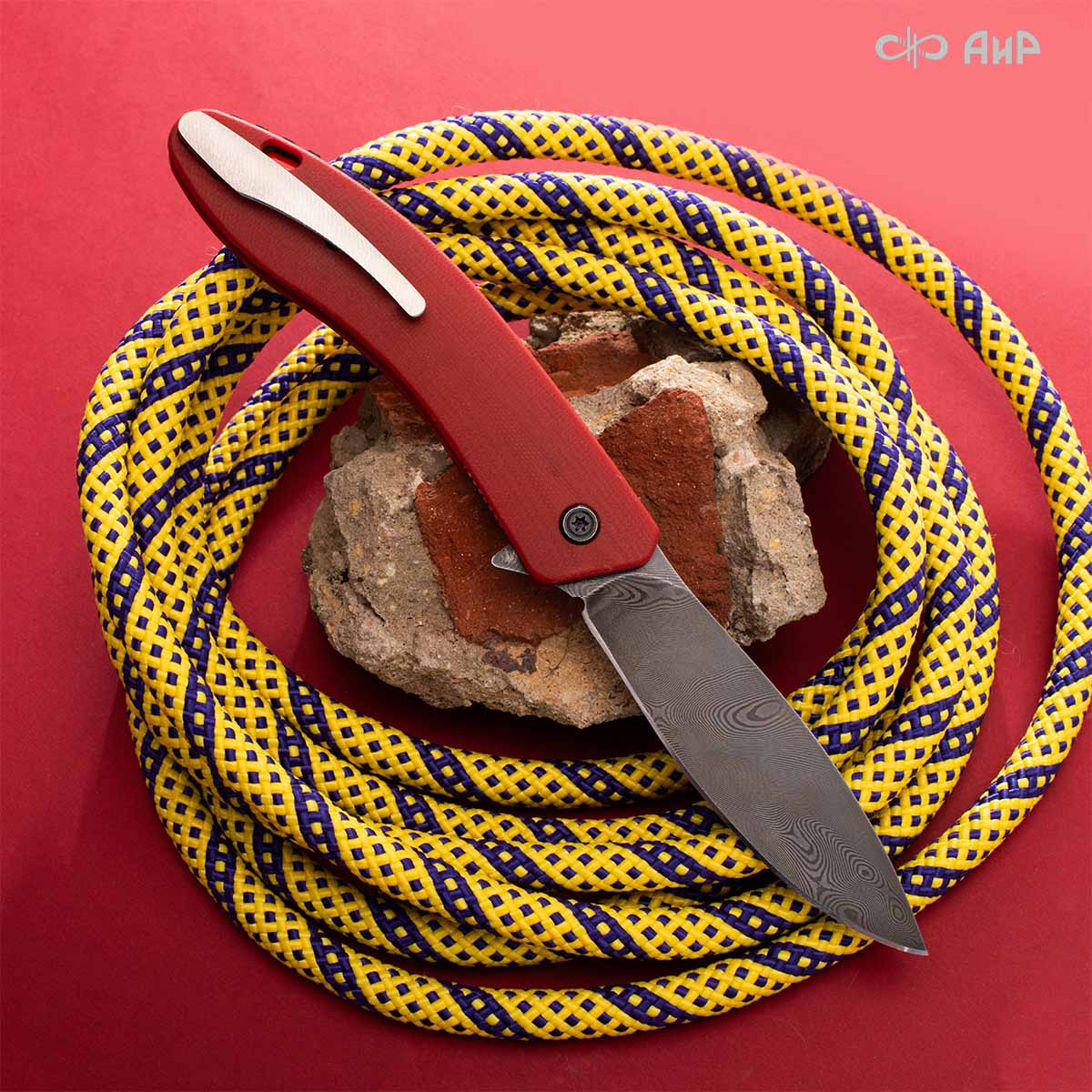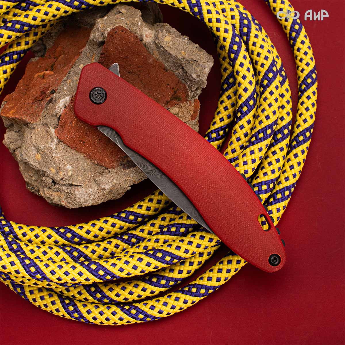 Хантер (G10 красный, кастомная заточка) дамасская сталь ZD-0803, узор твист