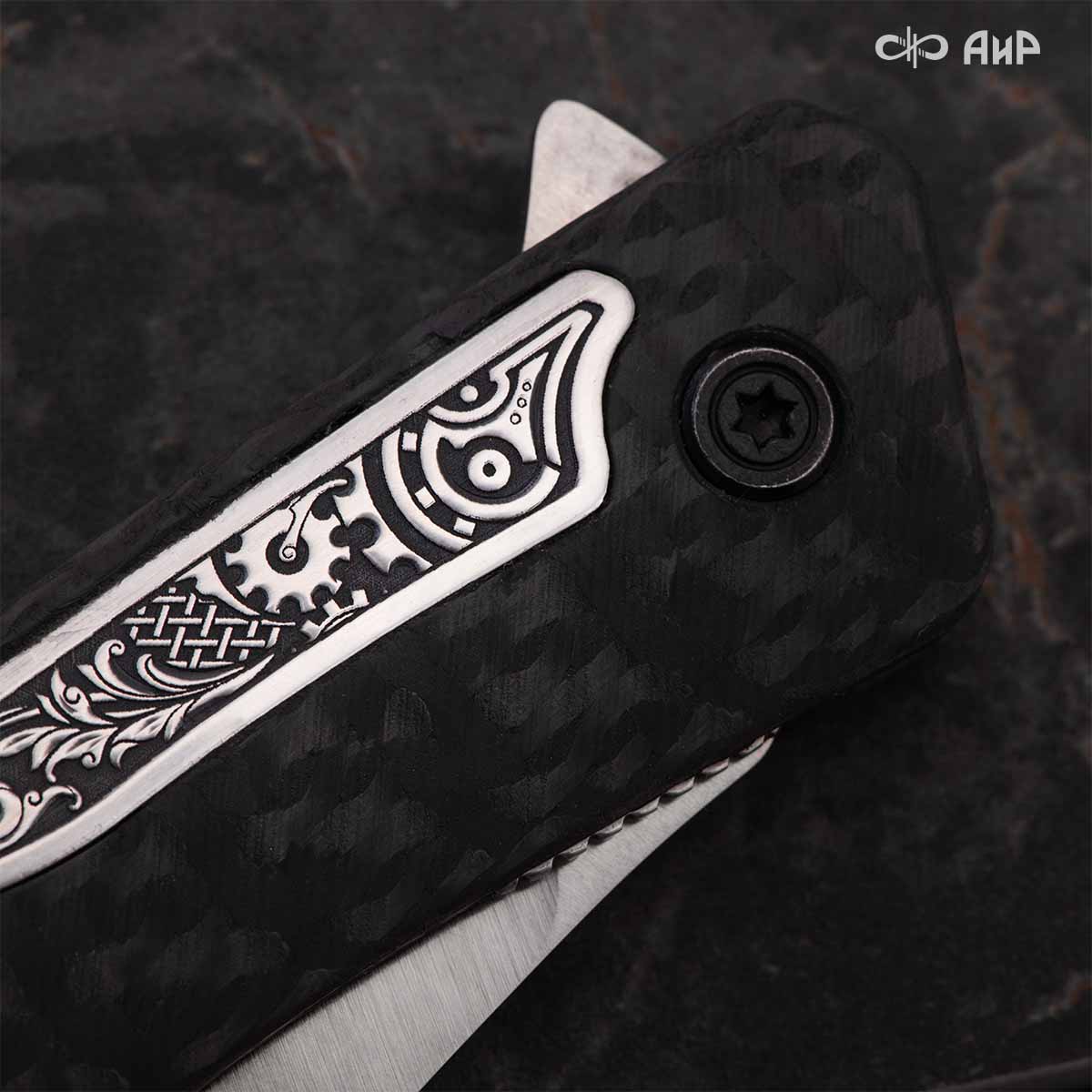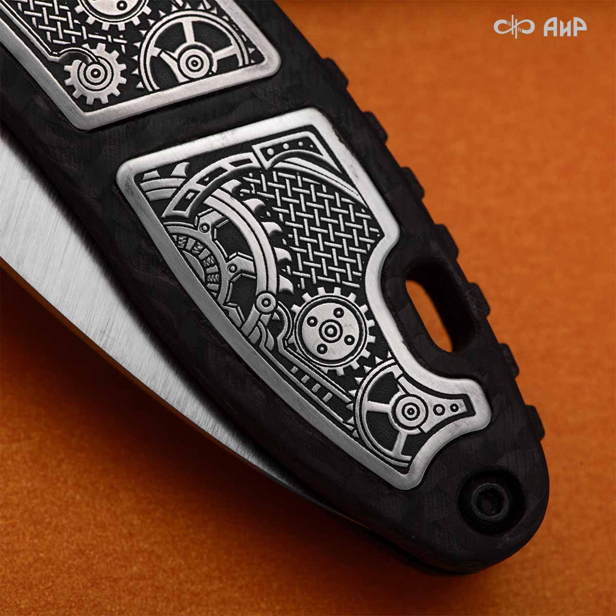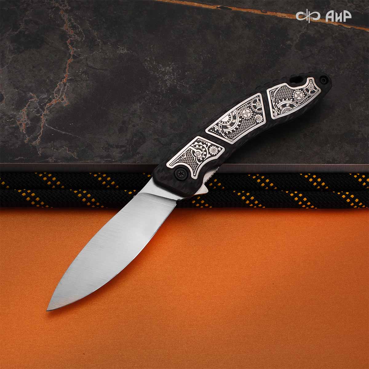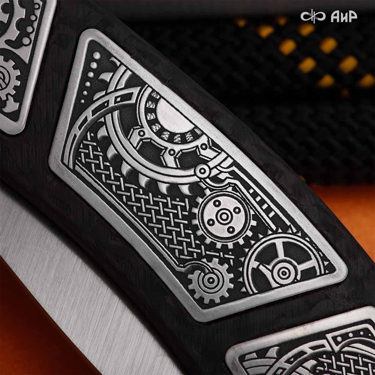 Хантер (карбон черный, вставка в рукоять стим-панк серебро, кастомная заточка), S390
