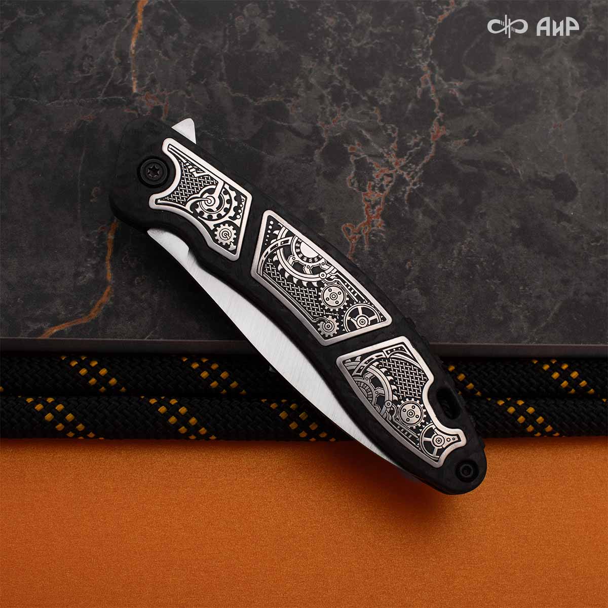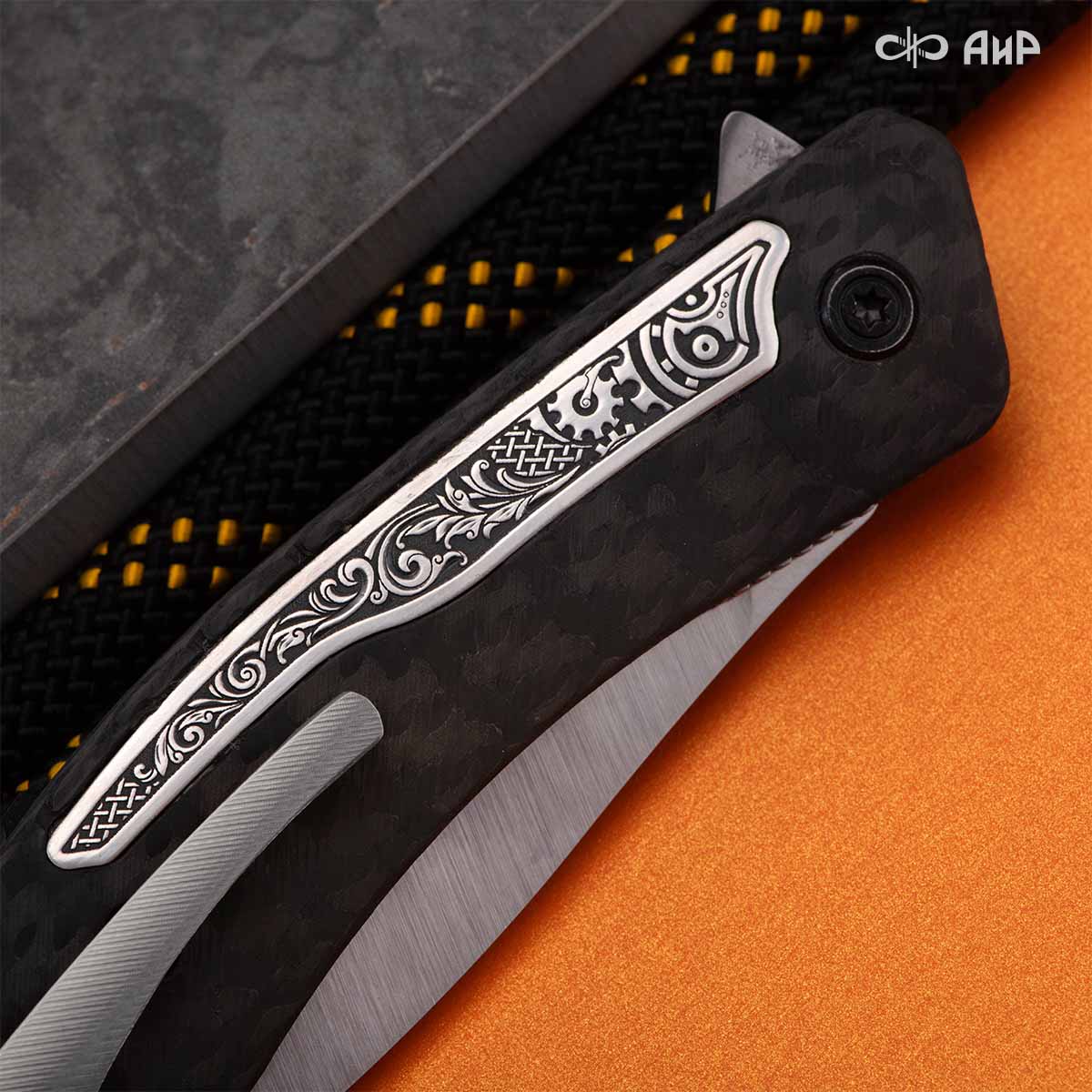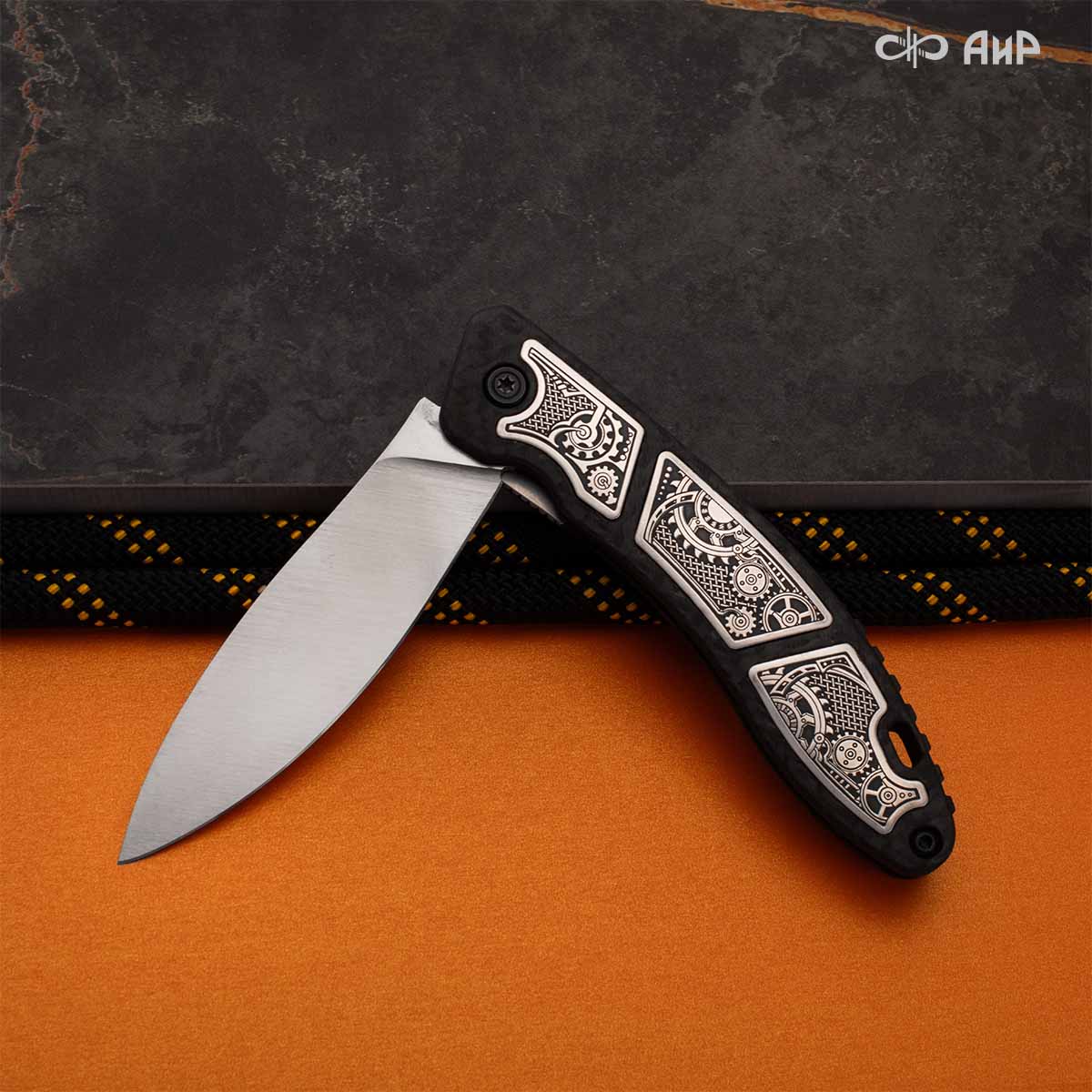 Хантер (карбон черный, вставка в рукоять стим-панк серебро, кастомная заточка), S390