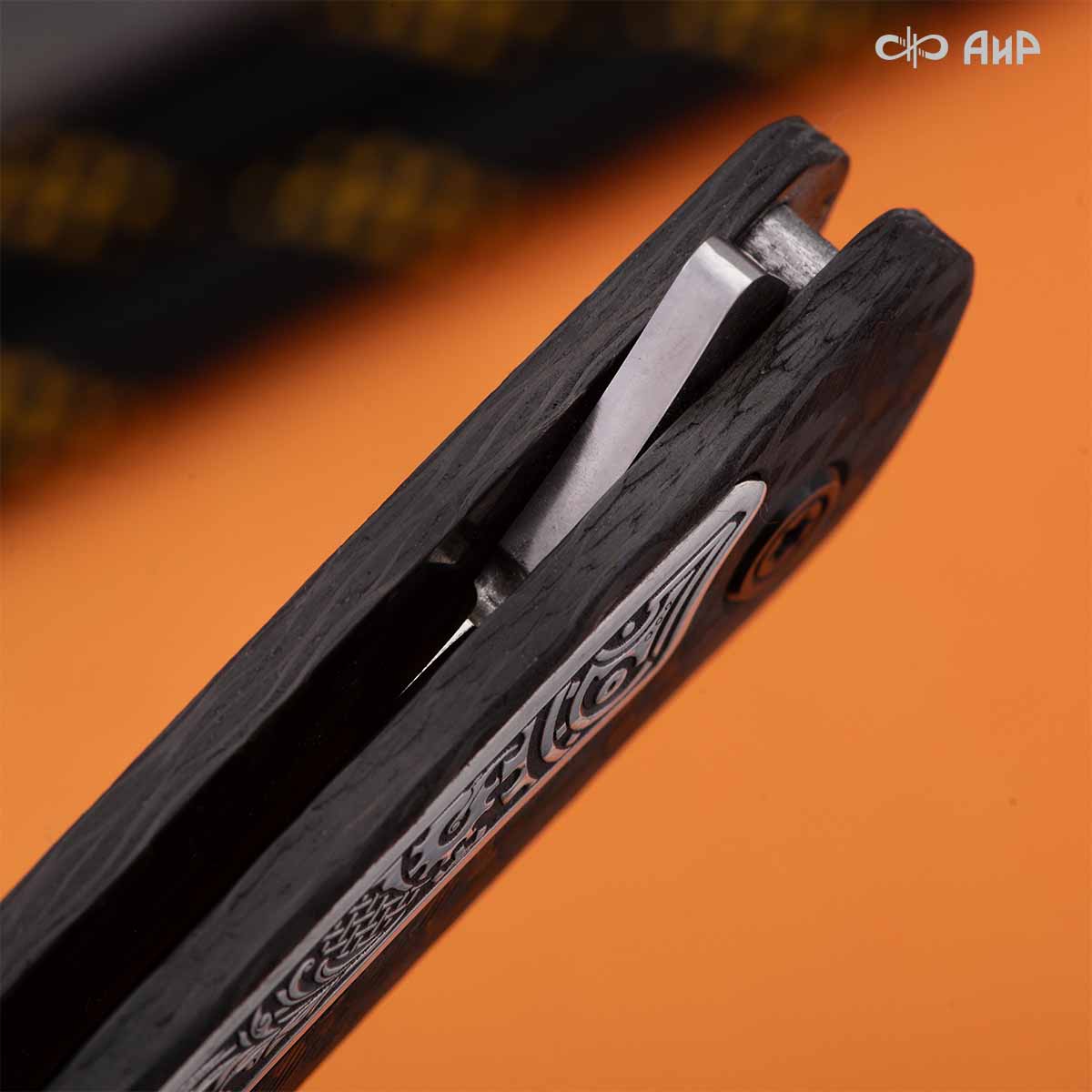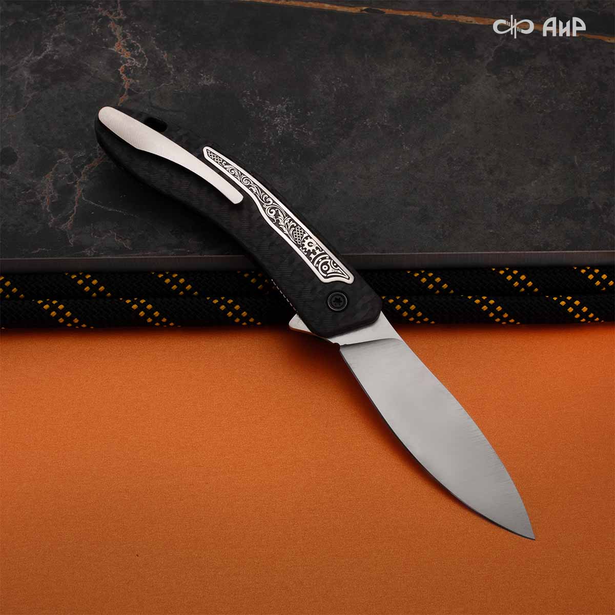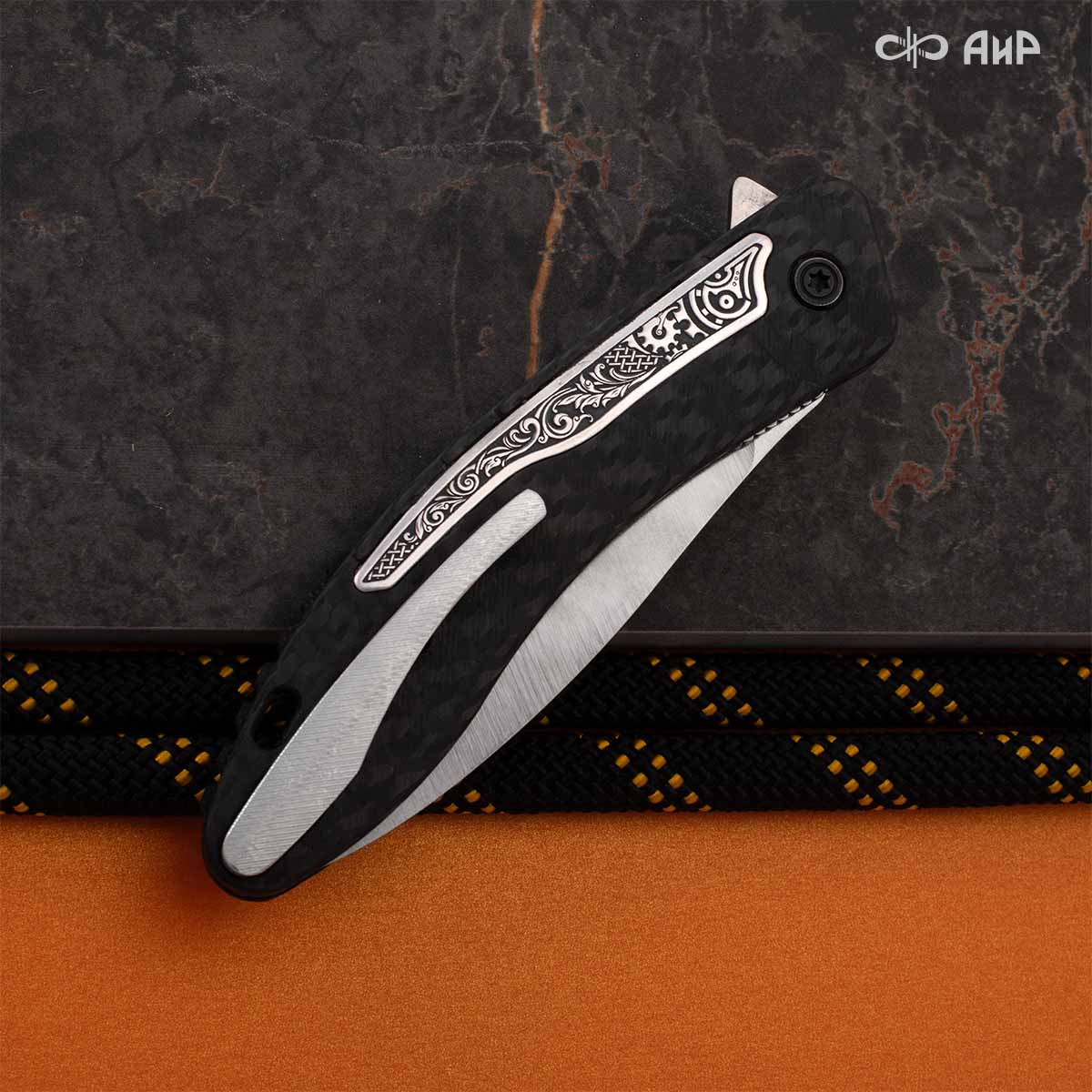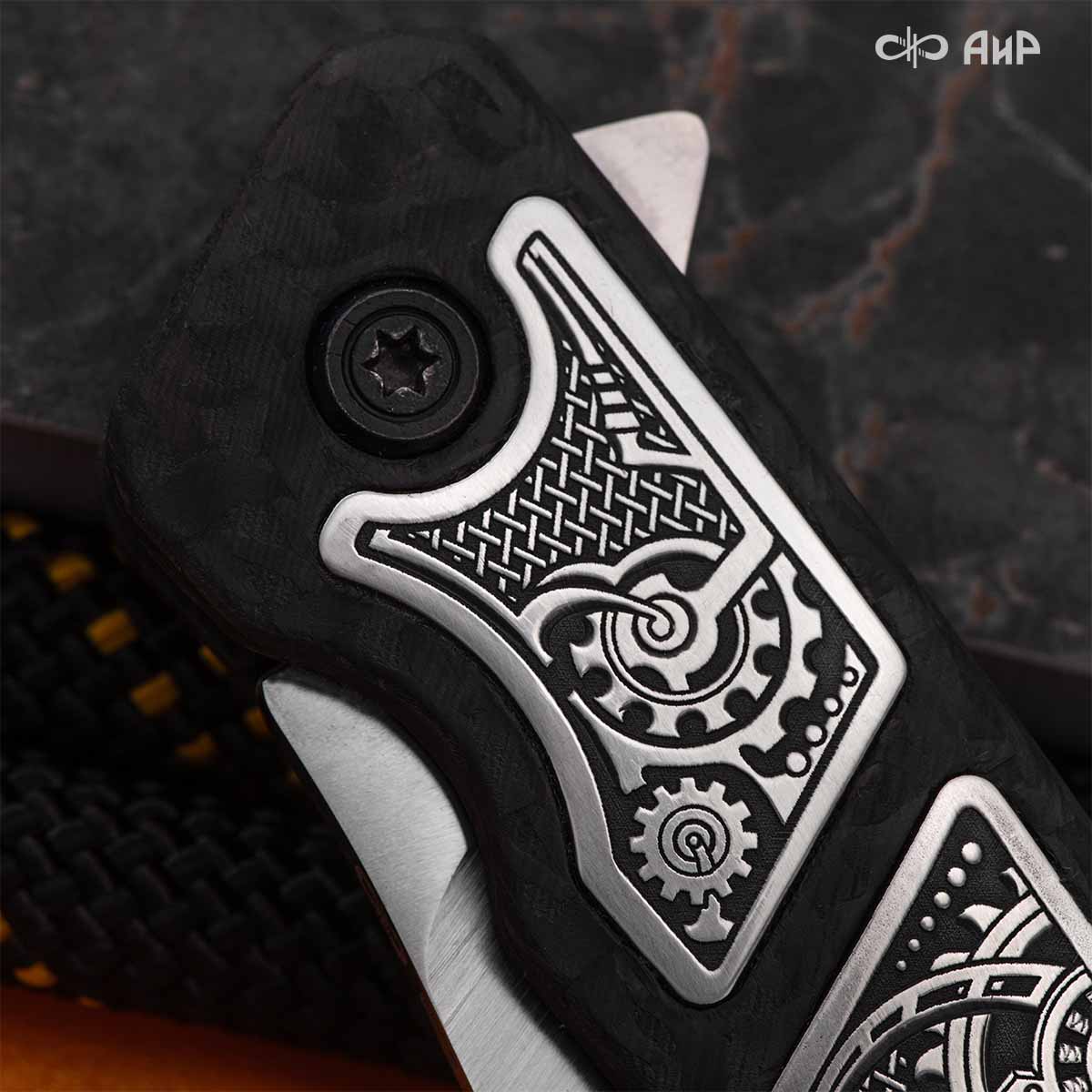 Хантер (карбон черный, вставка в рукоять стим-панк серебро, кастомная заточка), S390