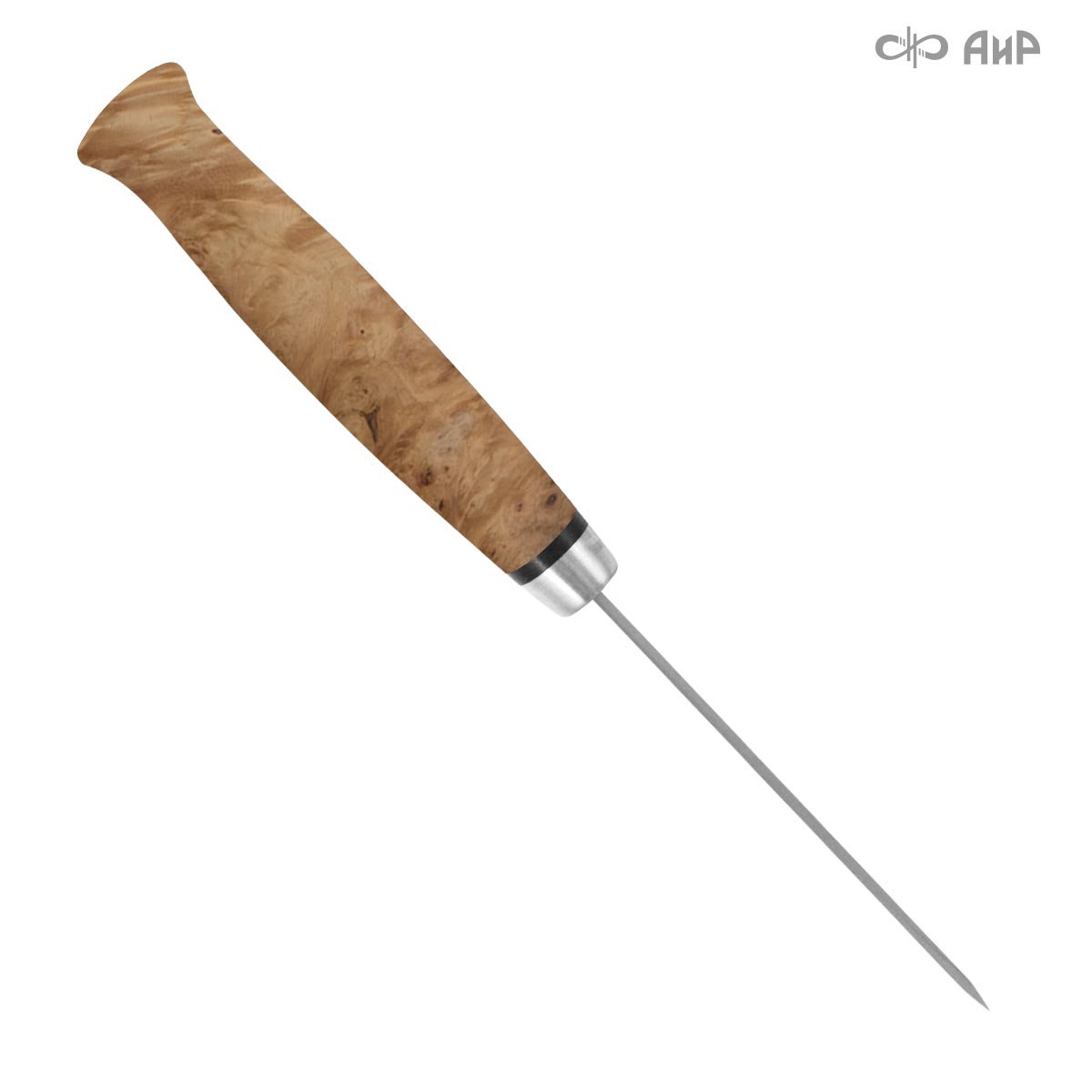 Небольшой универсальный, легкий и прочный нож классической скандинавской формы с нешироким клинком, имеющим популярные у скандинавов неширокие прямые спуски, образующие агрессивно режущее лезвие. Клинок имеет чуть приспущенный к острию обушок. Нож демонстрирует отличные режущие качества. Клинок с толщиной обуха в 2,4 мм имеет широкую голомень с обеих сторон, что придает ему дополнительную прочность. Скандинавская форма рукояти подкупает: она удобна даже для большой руки, уверенно и прочно ложится в любую, даже усталую ладонь. Оптимальной величины гарда не дает соскользнуть пальцам при резах от себя. Навершие рукояти «грибком» позволяет с большей уверенностью извлекать нож из глубоких ножен. Монтаж рукояти всадной, неразборный. На навершии рукояти имеется отверстие под темляк. Первоначально планировался как бюджетный нож с дамасским клинком и деревянной рукоятью, но по желанию покупателей стал выпускаться во всех вариантах исполнения, используемых компанией. «Кузюк» ‒ отличный выбор для большинства видов работы в лесу.