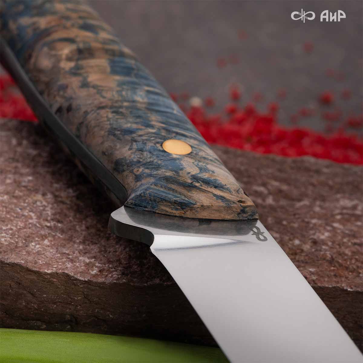 «Стриж» – компактный универсальный нож с накладным, неразборным монтажом рукояти. Клинок ножа выполнен с понижением линии обуха, благодаря чему острие находится на оси приложения силы и имеет хорошую проникающую способность. Прямые спуски от обуха образуют прекрасно режущее лезвие. В основании клинка имеется упор-ограничитель, позволяющий предотвратить соскальзывание руки на лезвие. Нож хорошо сбалансирован и посадист. На рукояти имеется отверстие для темляка. Отличный инструмент для похода, дальних путешествий, в быту и фермерском хозяйстве.