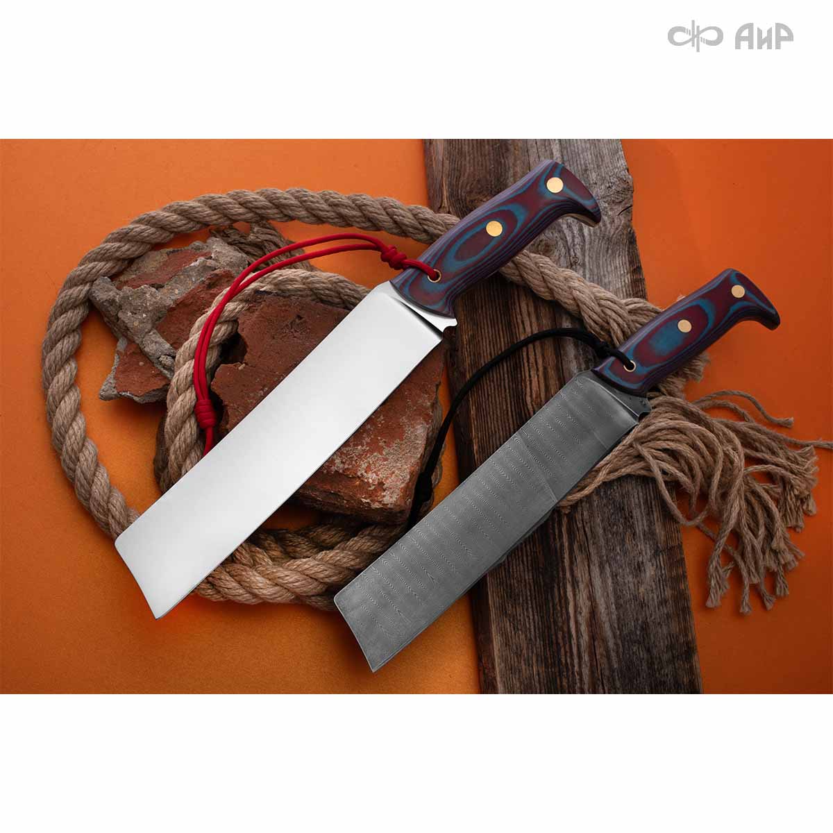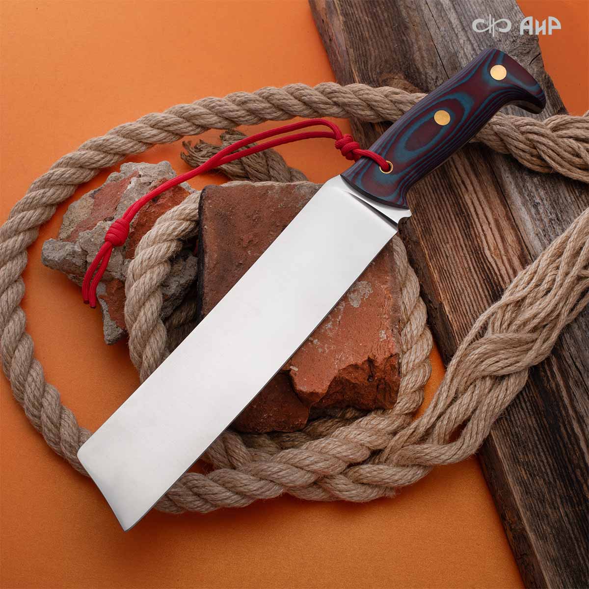 Уралмаш тесак (микарта красно-синяя, паракорд с темлячным узлом, кастомная заточка)