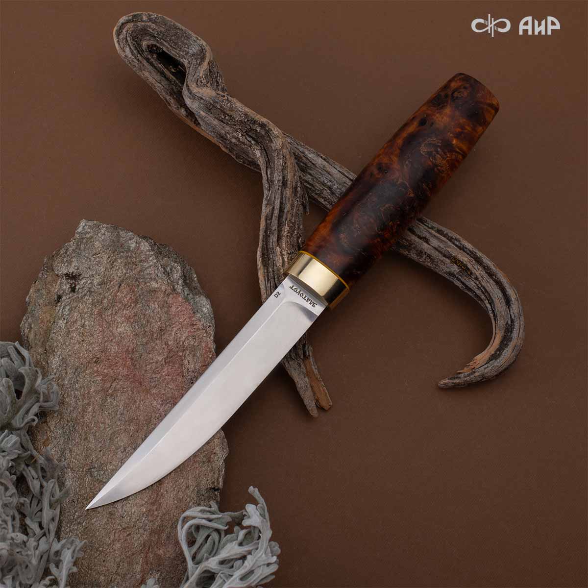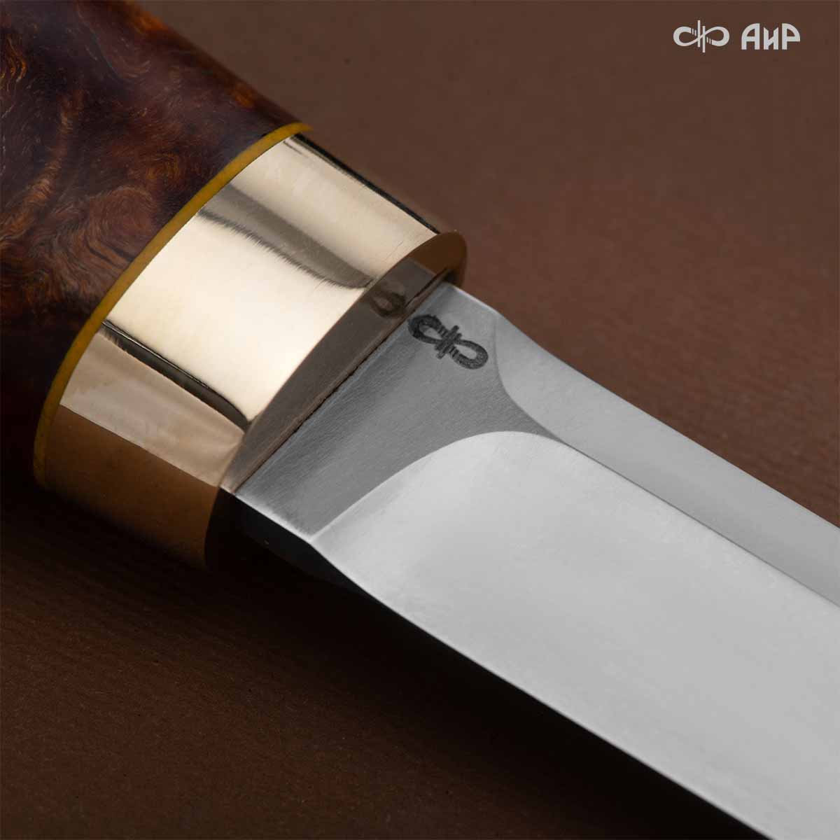 Финка Сканди Мини (стабилизированный кап тополя оранжевый, латунь)