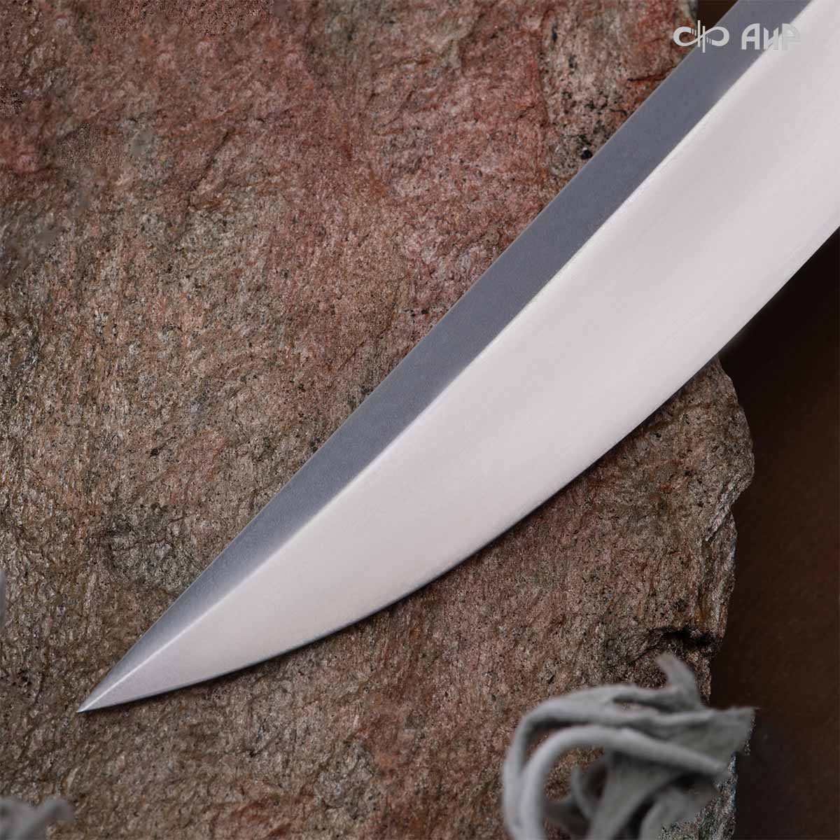 Нож «Финка Сканди» представляет собой современное воплощение традиционной для скандинавских народов формы финского ножа, который будет верным помощником человеку в любых его начинаниях. Высокие спуски клинка придают ему отличные режущие характеристики, при этом проникающие свойства остаются на высоте из-за прекрасной геометрии клинка. Удобная рукоять, имеющая многовековой опыт использования ее народами Севера, прекрасно подходит под любую руку. При этом используется очень надежный сквозной монтаж рукояти.