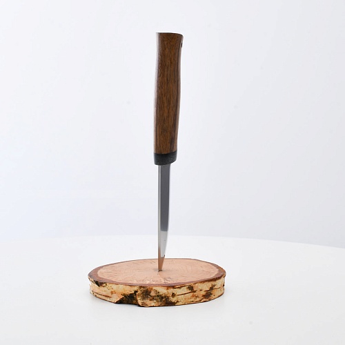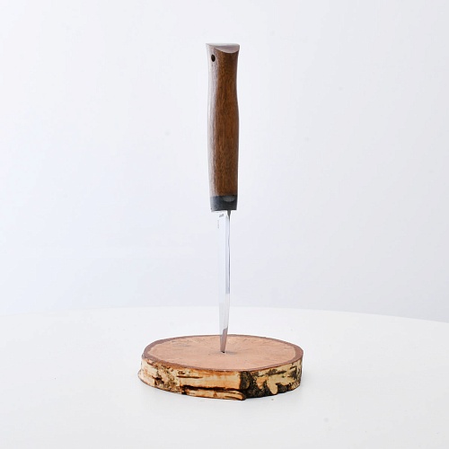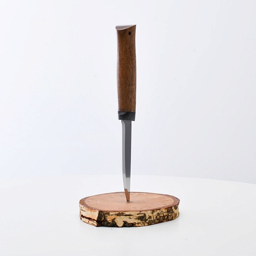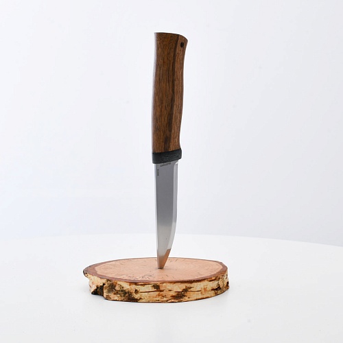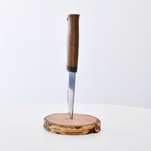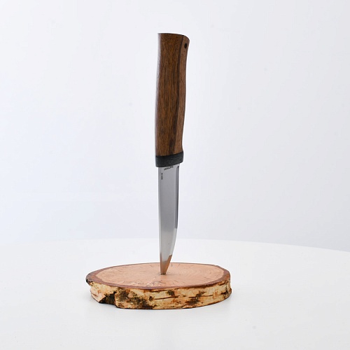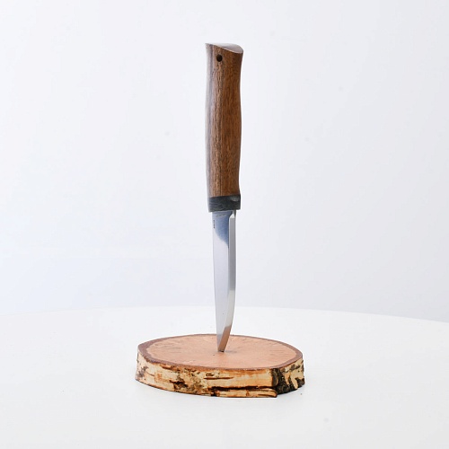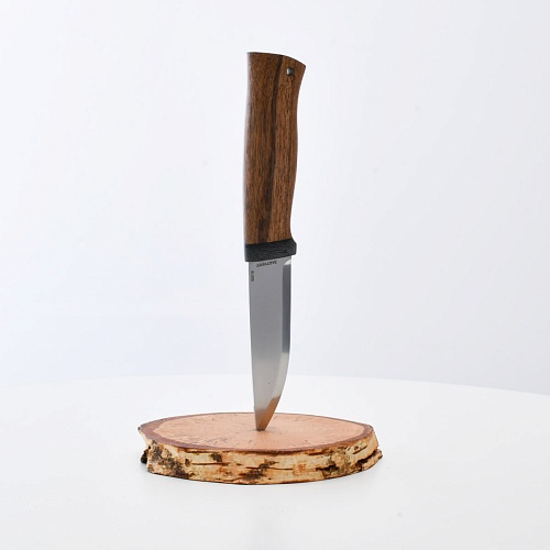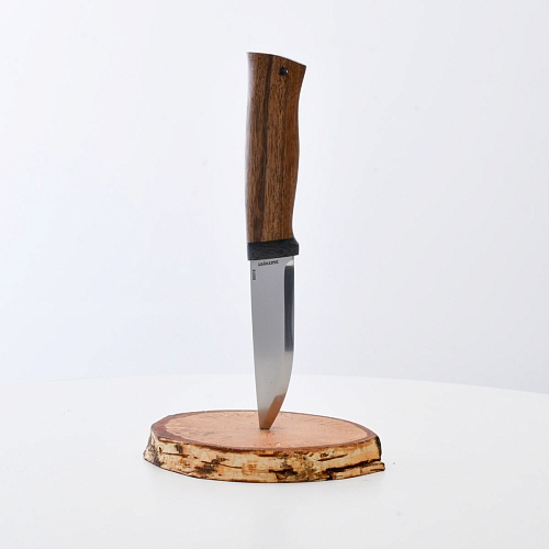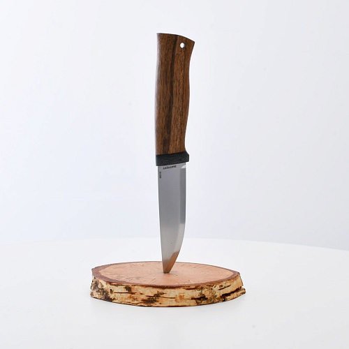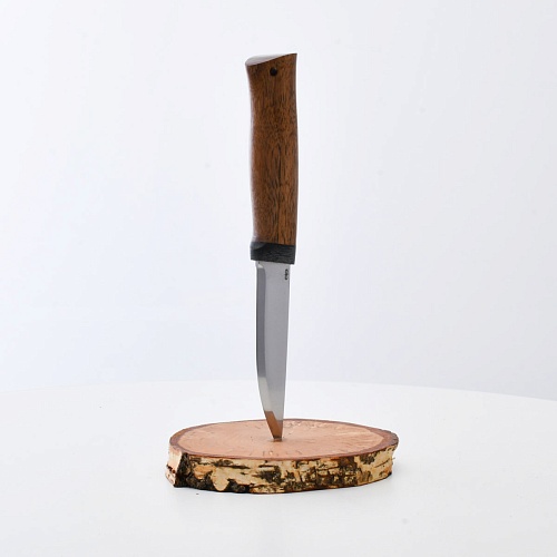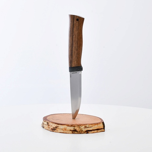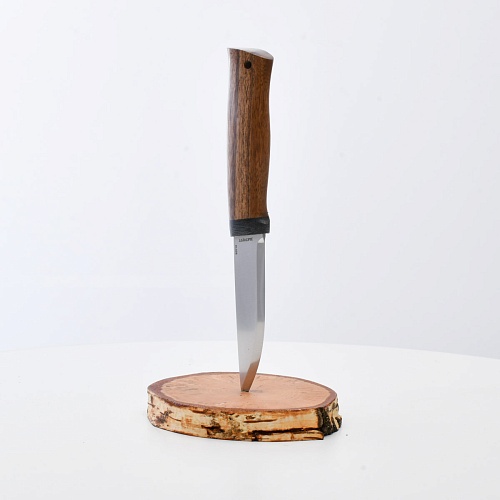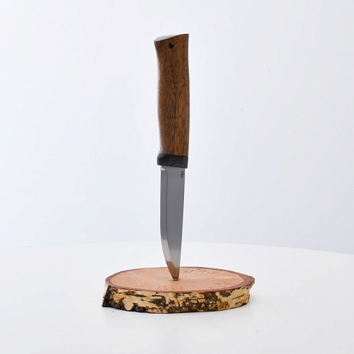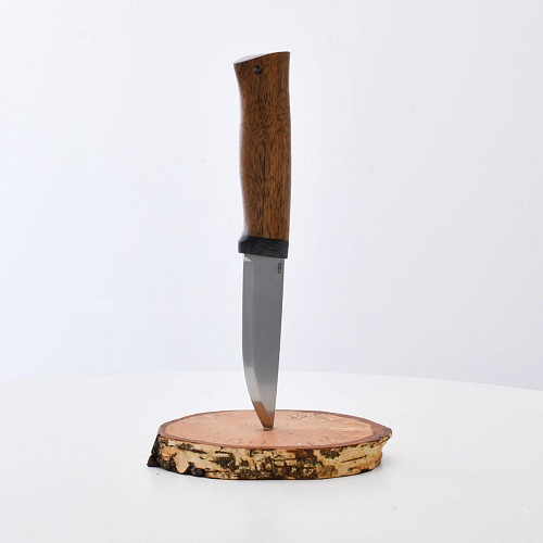Не плохой нож, НО КУЗЮК купил уже более двух лет назад. Брал 95Х18, карельская береза. Брал именно в расчете на небольшой рабочий нож для полевых/лесных выходов. Минус обнаружился сразу - после вскрытия банки консервов РК существовать перестала. По возвращению на зимние квартиры восстановил, заточил и более таких экспериментов не ставлю. В "резательно-строгательных" работах нож показывает себя хорошо. Уверенно сидит в руке. Оптимальное соотношение рукояти и лезвия. В итоге прихожу к мнению, что надо было подраскошелиться и взять КУЗЮК с более крепкой сталью. Имейте в виду при выборе |