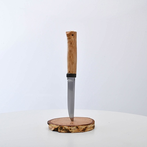 Нож удобный, рукоять красивая, вот только заточен плохо- одна сторона заточена равномерно, а на второй стороне от острия к пятке угол заточки увеличивается.