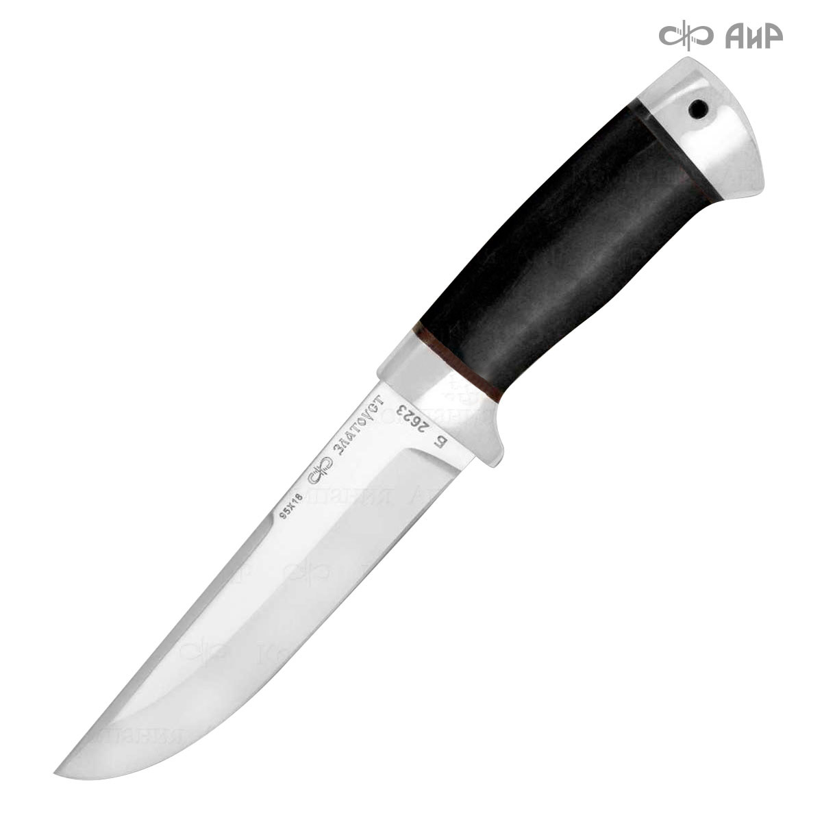 Образец является ножом охотничьим и относится к гражданскому холодному оружию.Внимание! С 27.11.2017 г. приостановлена доставка гражданского холодного оружия в населенные пункты по всей территории Российской Федерации, ранее осуществляемая ФГУП «Главный центр специальной связи». Данный нож можно приобрести на условиях самовывоза только в головном офисе Компании «АиР» в г. Златоусте (отдел маркетинга, график: пнд-птн, 8.00-17.00 ч.).
