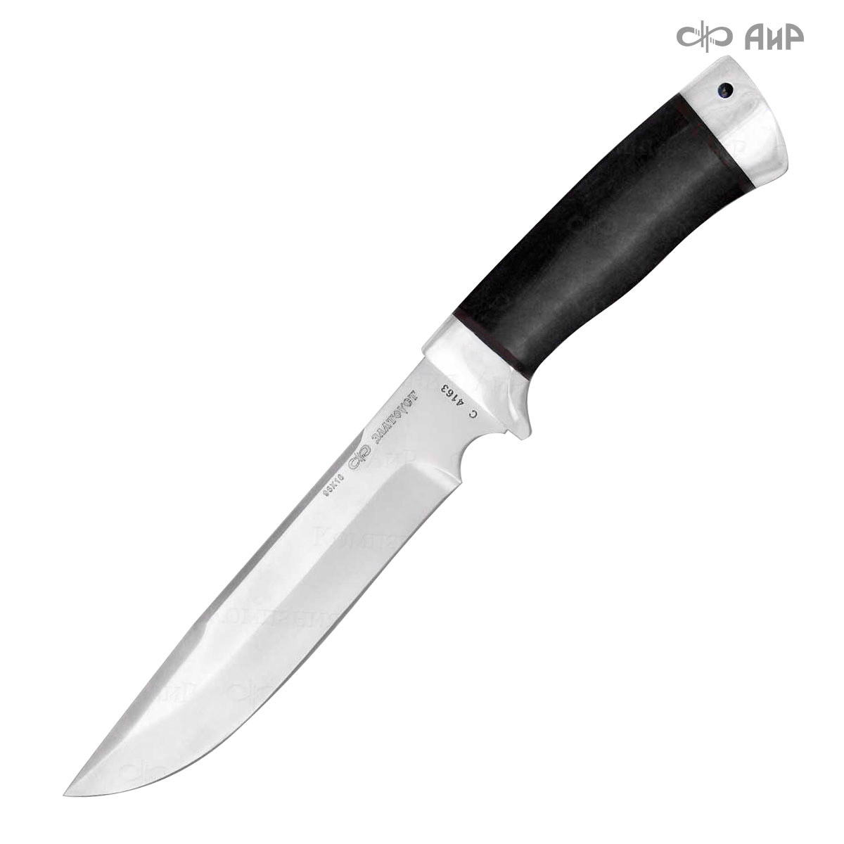 Внимание! С 27.11.2017 г. приостановлена доставка гражданского холодного оружия в населенные пункты по всей территории Российской Федерации, ранее осуществляемая ФГУП «Главный центр специальной связи». Данный нож можно приобрести на условиях самовывоза только в головном офисе Компании «АиР» в г. Златоусте (отдел маркетинга, график: пнд-птн, 8.00-17.00 ч.).Образец является ножом охотничьим и относится к гражданскому холодному оружию.