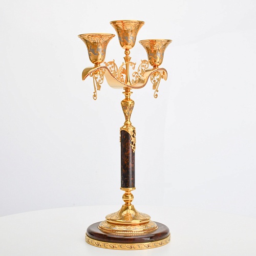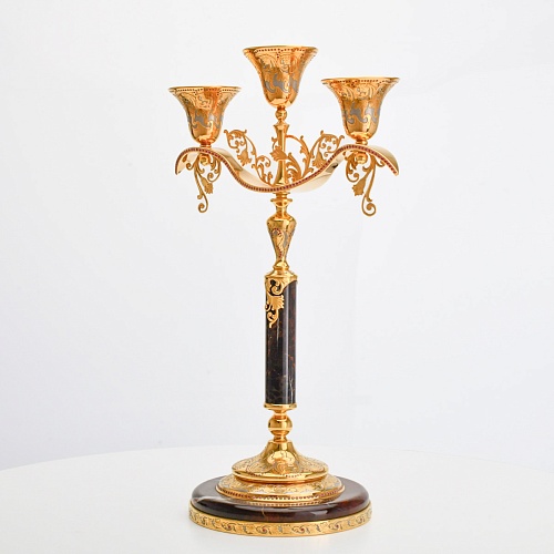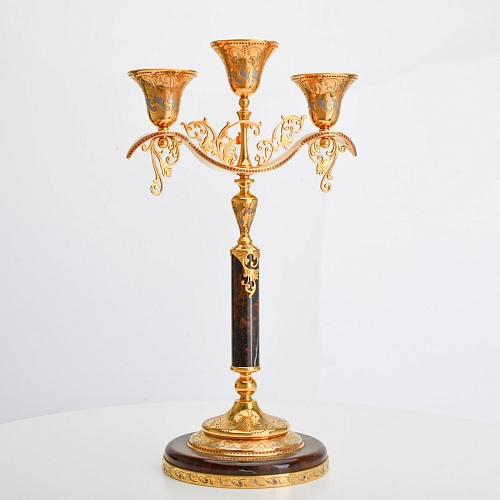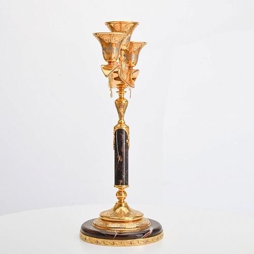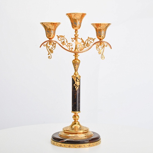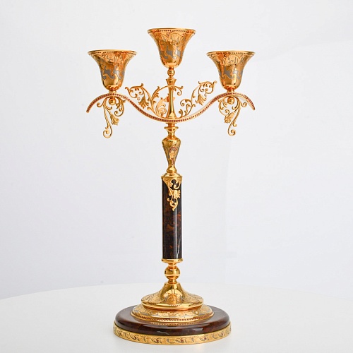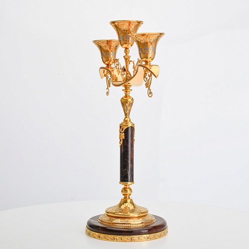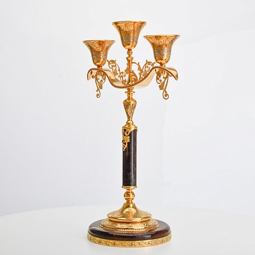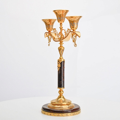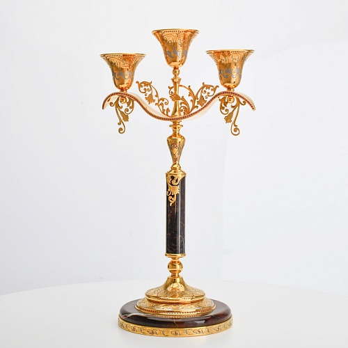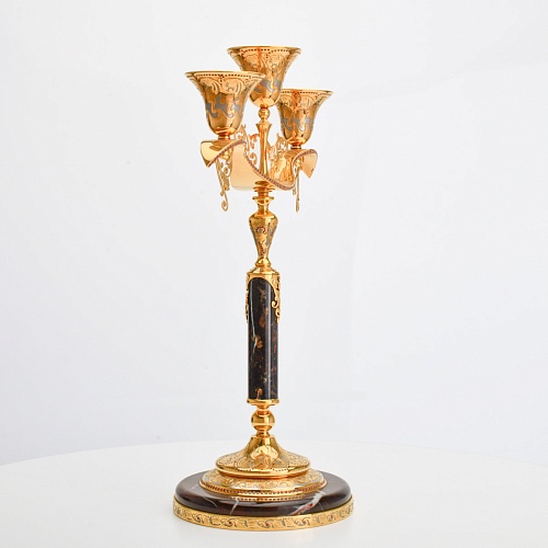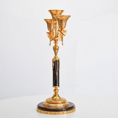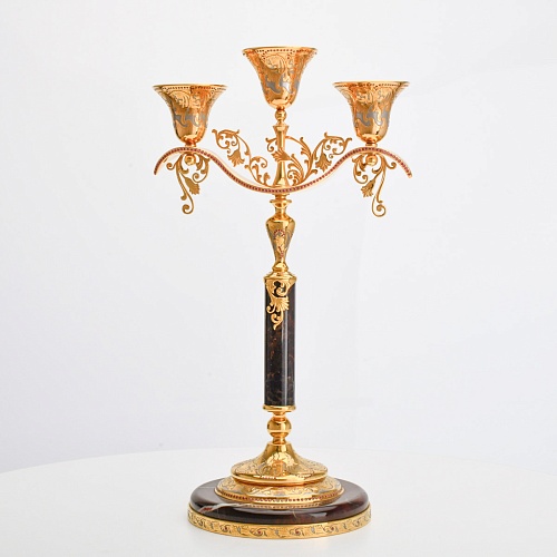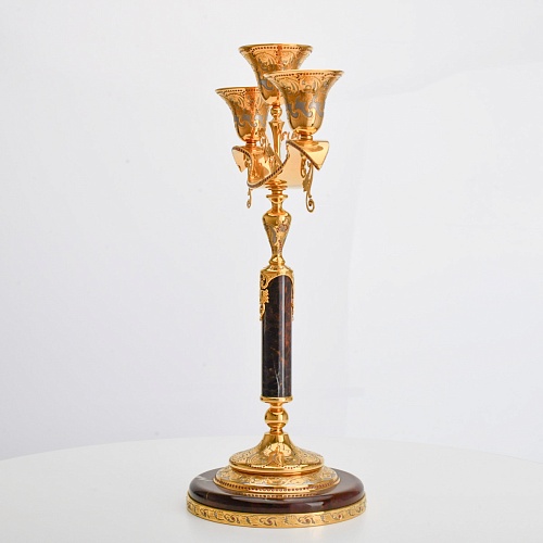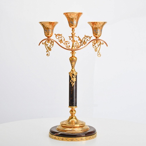 Подсвечник трехрожковый Золотой камертон, с яшмой и родолитами, Артикул: 0028-2