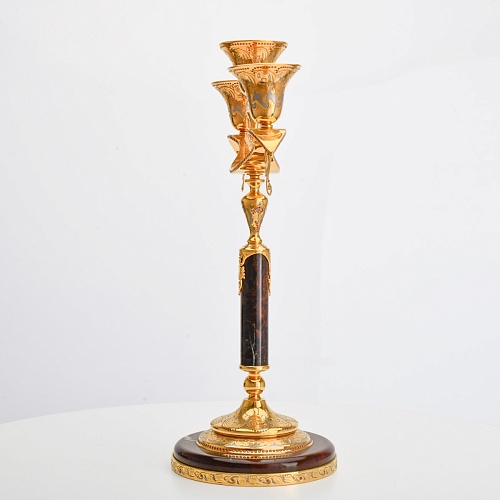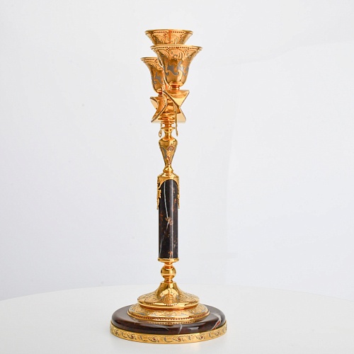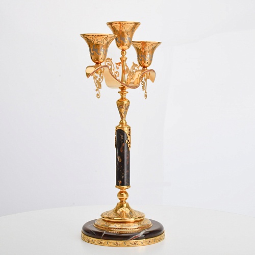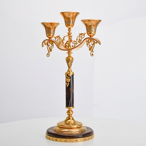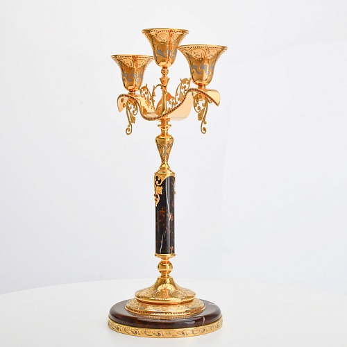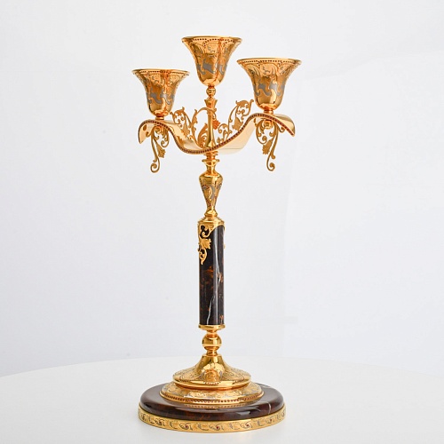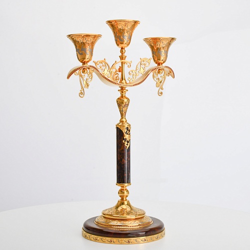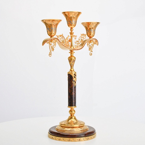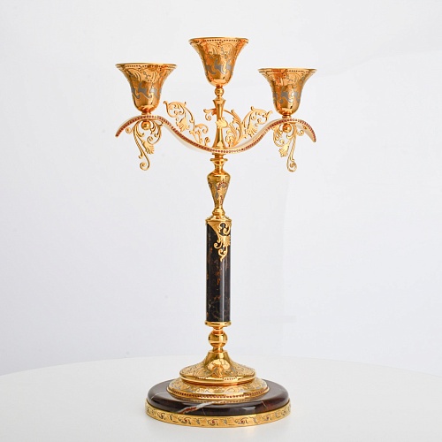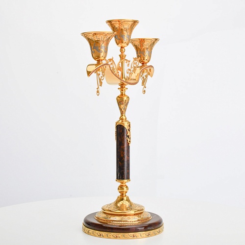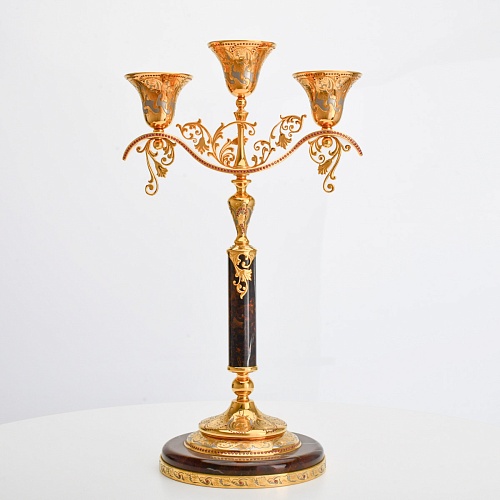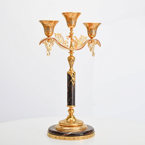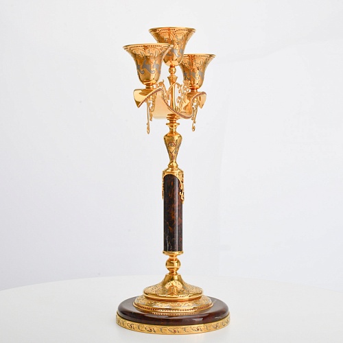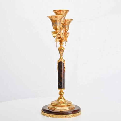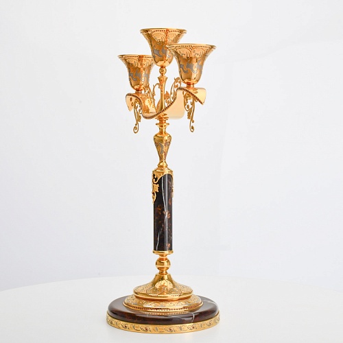 Подсвечник трехрожковый Золотой камертон, с яшмой и родолитами, Артикул: 0028-2