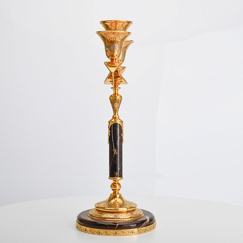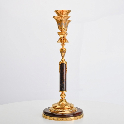 Подсвечник из металла и уральской яшмы, украшенный в стиле златоустовской гравюры на металле, придаст дому особый шарм и будет свидетельствовать о хорошем чувстве вкуса и благородной роскоши.