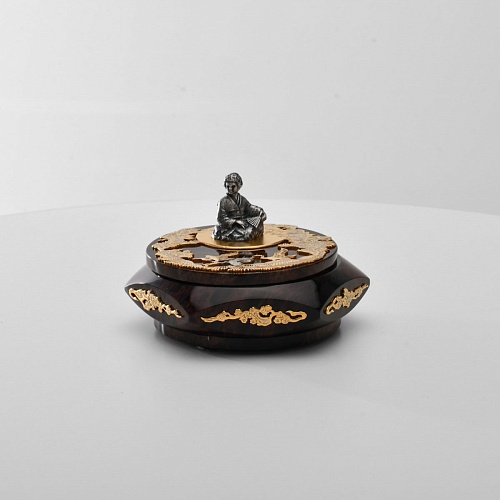 Шкатулка, изготовленная из красивейшего обсидиана, декорированная в стиле златоустовской гравюры, послужит прекрасным предметом для хранения женских украшений. Срок изготовления от 2 месяцев, 100% предоплата.