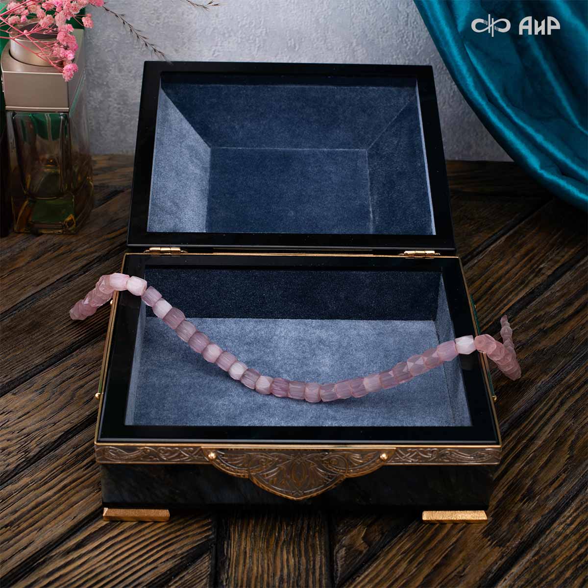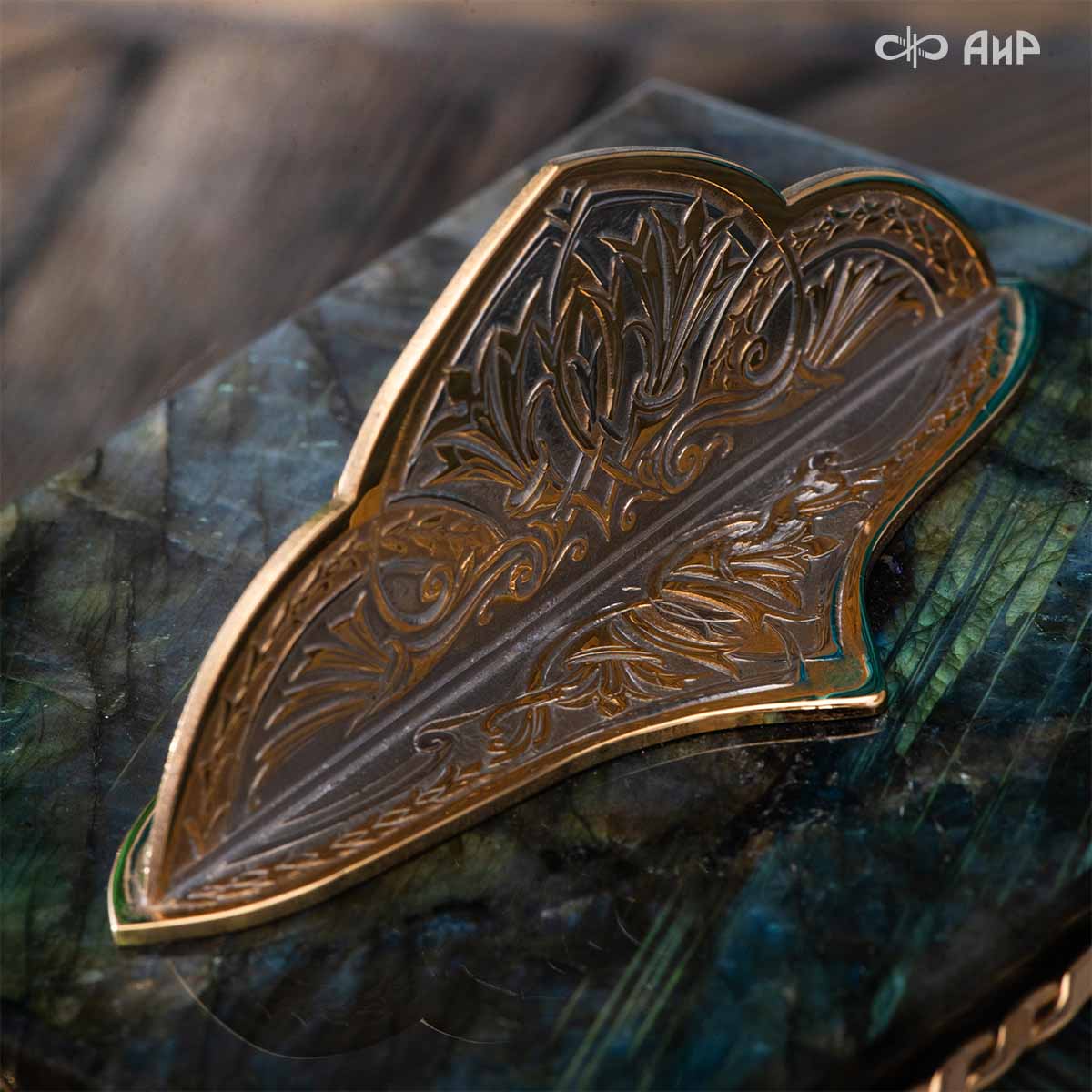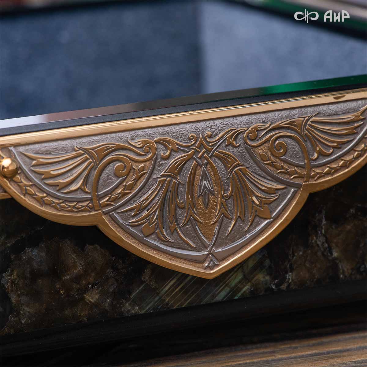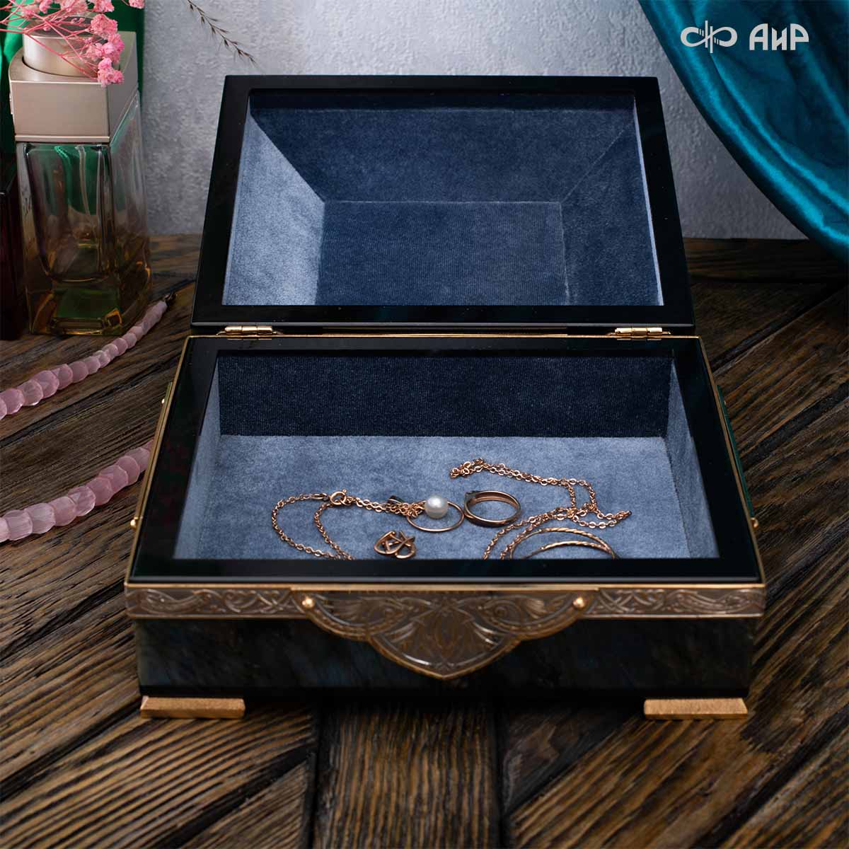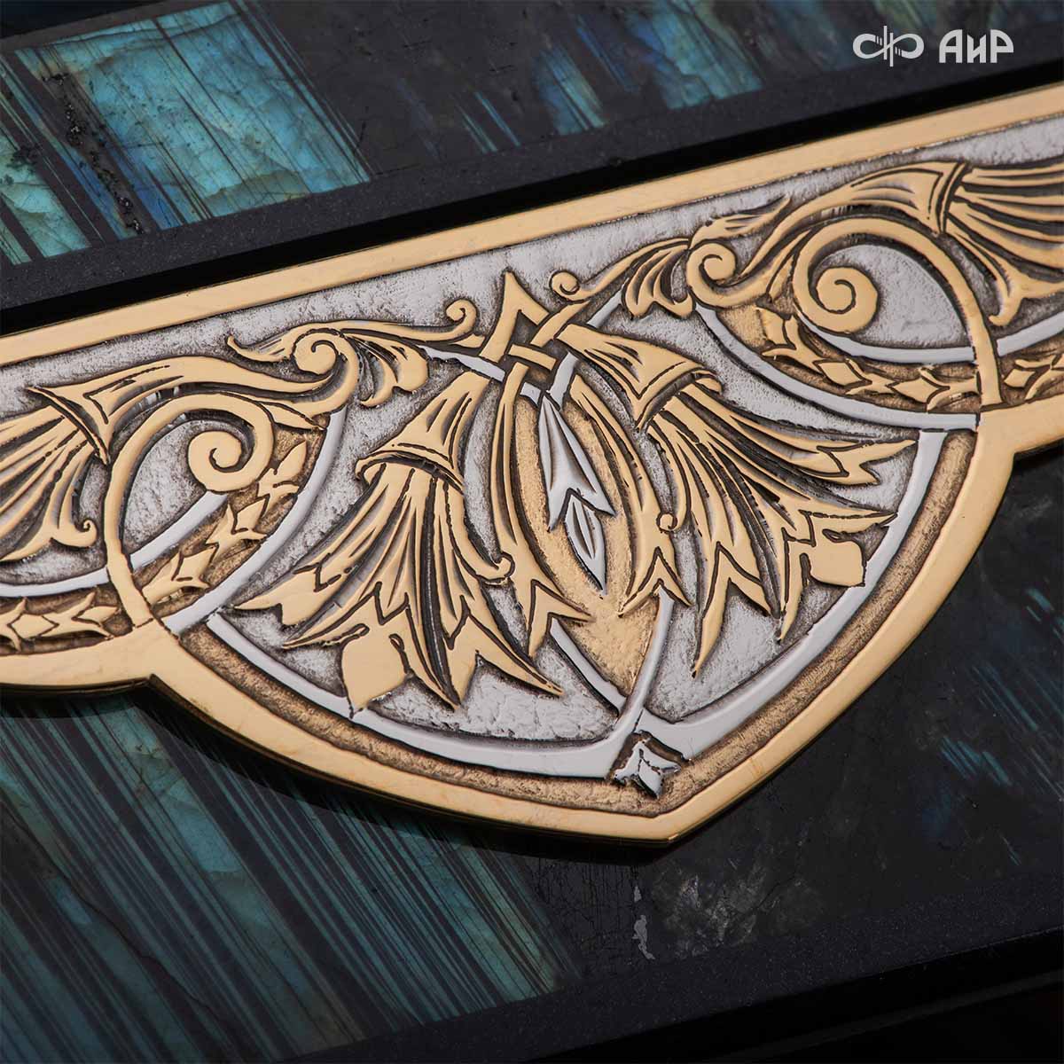 Шкатулка "Таинственная ночь" изготовлена из лабрадорита редкой красоты и украшена декоративными накладками с изображением цветочных орнаментов. Такая вещь, безусловно, украсит собой интерьер и станет изящным местом хранения для самых любимых и дорогих украшений.
