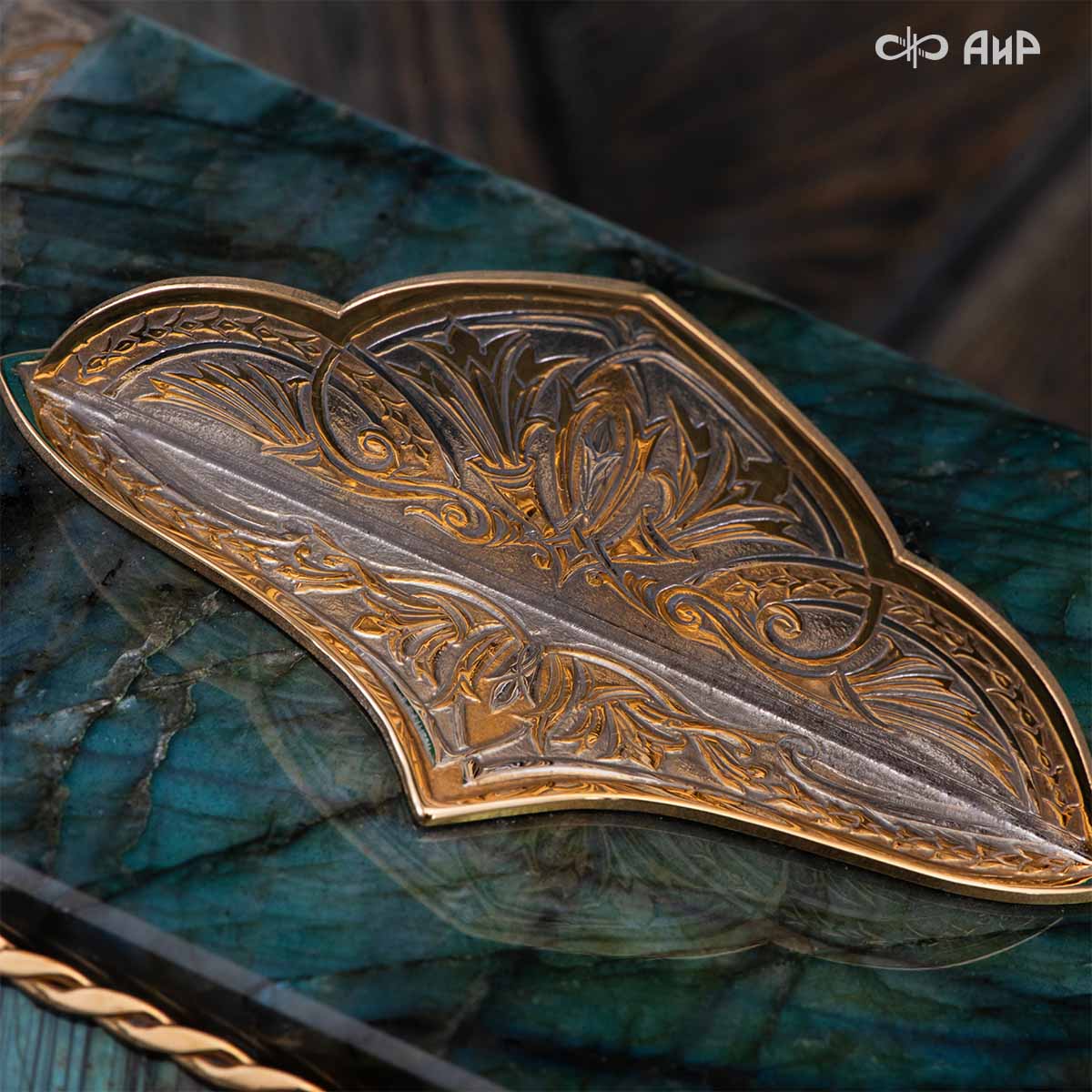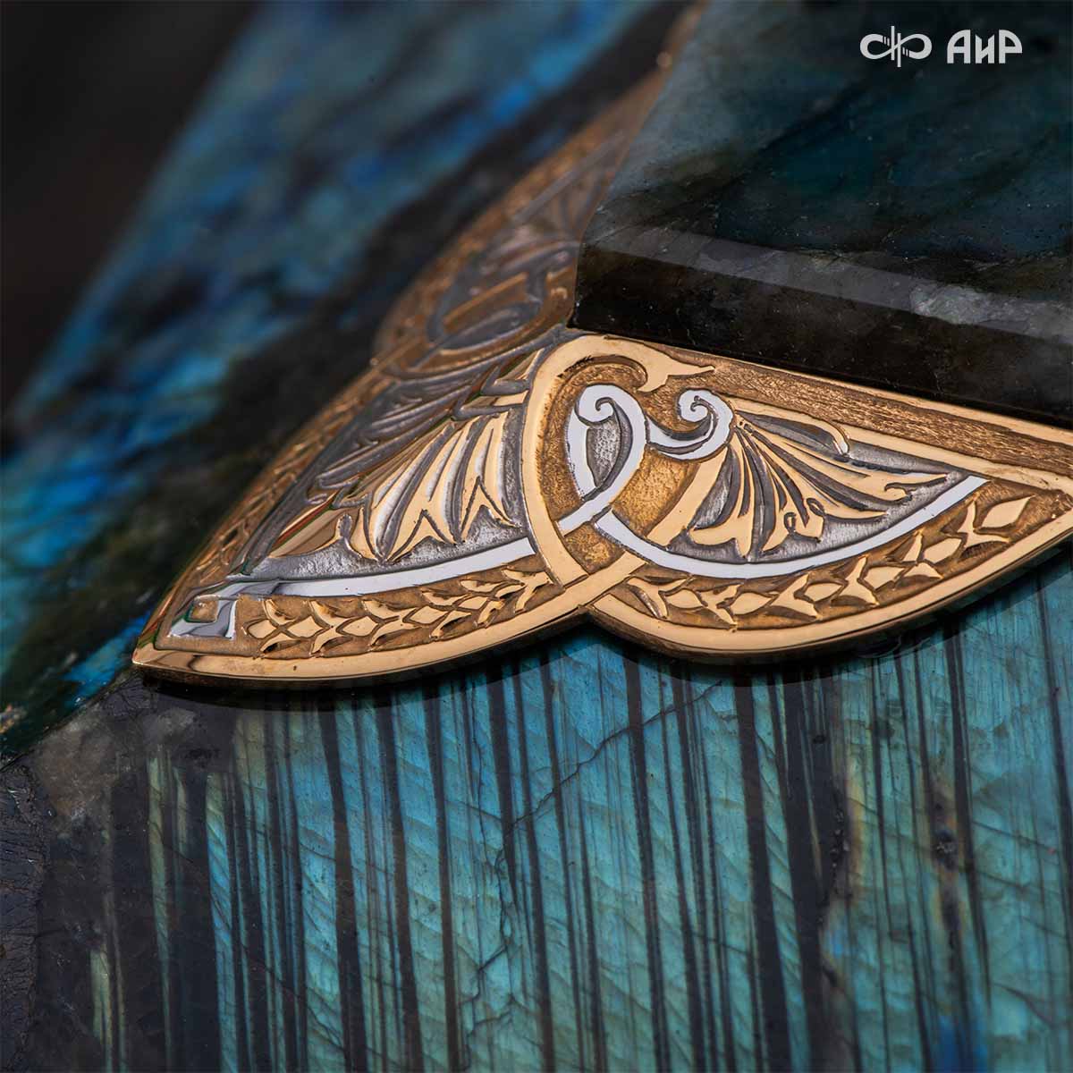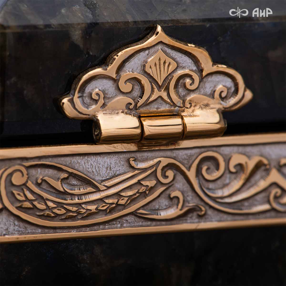 Шкатулка, изготовленная из красивейшего лабрадорита, декорированная в стиле златоустовской гравюры, послужит прекрасным предметом для хранения женских украшений.