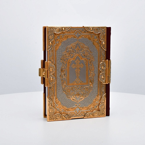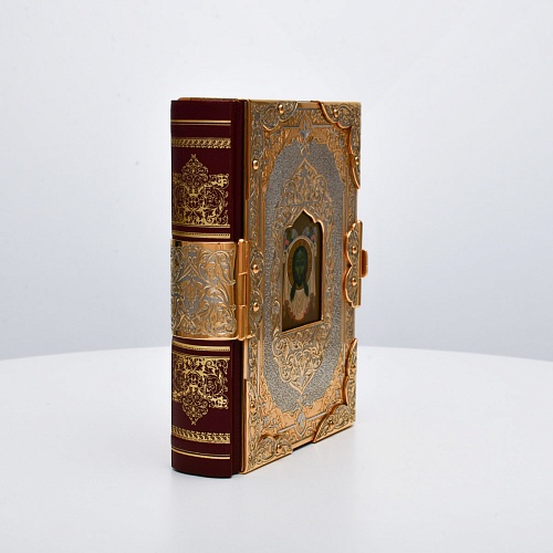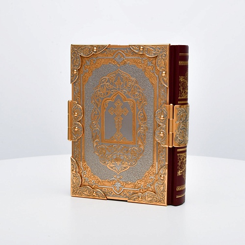 Оклад для этой книги изготовлен в стиле златоустовской гравюры на металле, покрыт золотом высшей пробы, украшен ювелирными камнями. Узор на лицевой и оборотной сторонах оклада выполнен в христианской символике.
