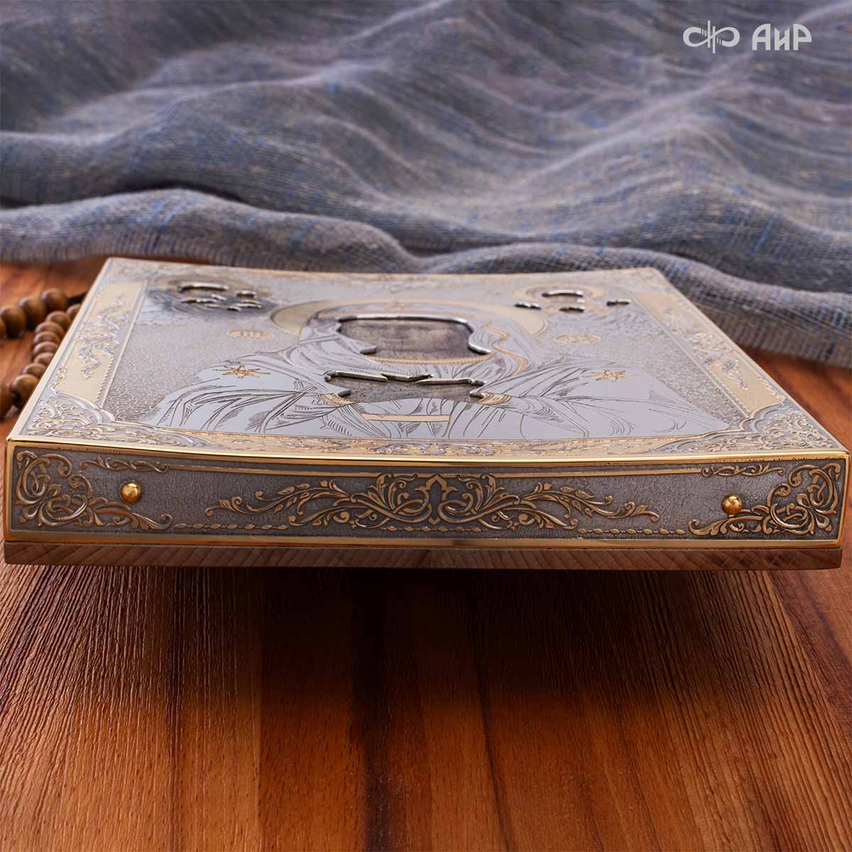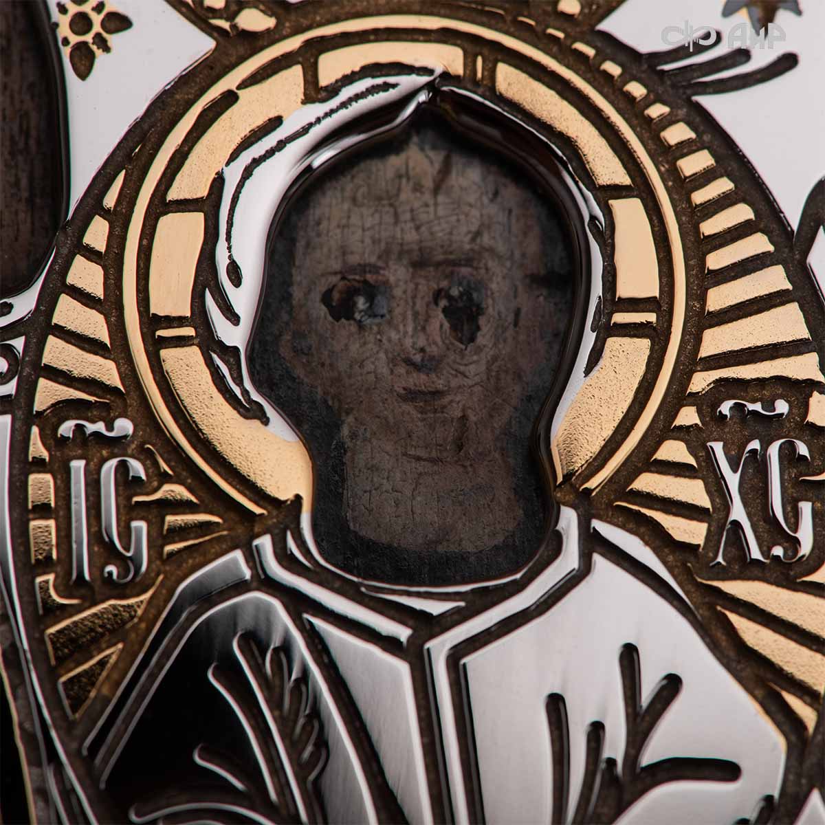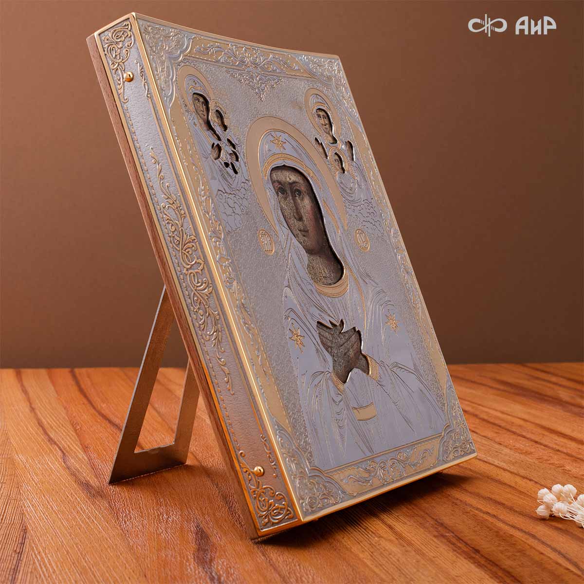 Современный оклад иконы Божьей Матери (икона заказчика, XIX век), выполненный мастерами компании “АиР”, является настоящим произведением искусства. Он изготовлен с использованием высочайших технологий и материалов, каждый его элемент выполнен с тщательной проработкой деталей, что делает икону настоящим произведением искусства. Златоуст известен своими уникальными традициями художественного ремесла, и этот оклад является ярким примером мастерства и преданности своему делу. Мастера “АиР” использовали уникальные технологии и традиционные приёмы художественной обработки металлов, чтобы создать этот шедевр. Оклад покрыт золотом высшей пробы (999,9°) толщиной в 1 микрон, что придает иконе особую ценность и благородство. Золото символизирует чистоту, вечность и божественное сияние. Золотой оклад не только подчеркивает духовное значение иконы, но и делает её ещё более величественной и торжественной, привлекая внимание верующих и ценителей искусства.