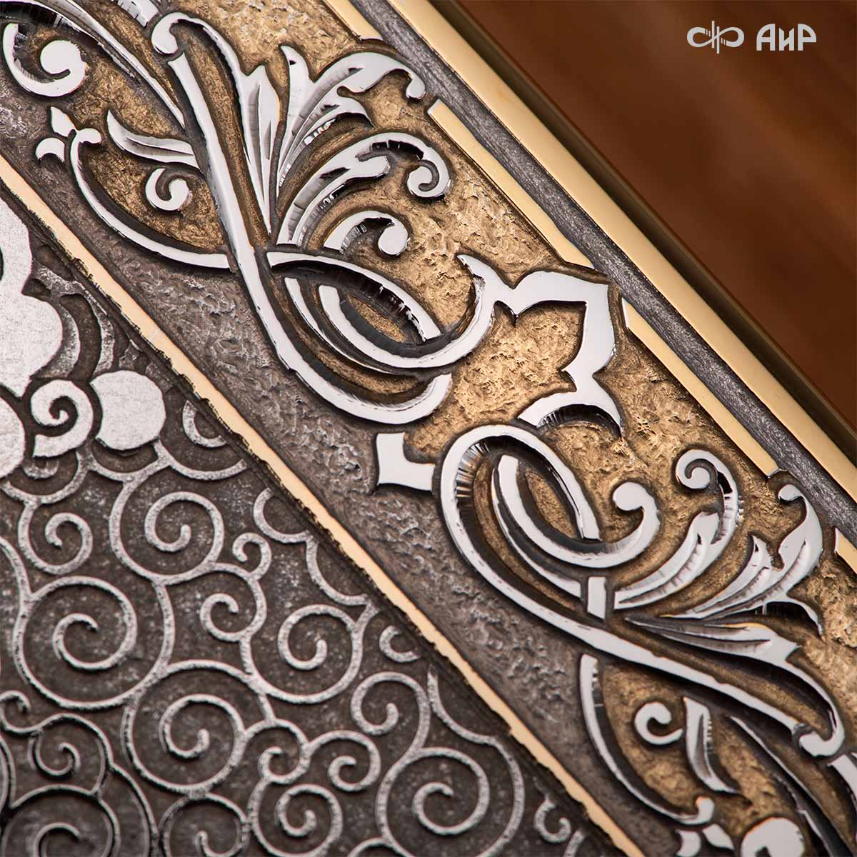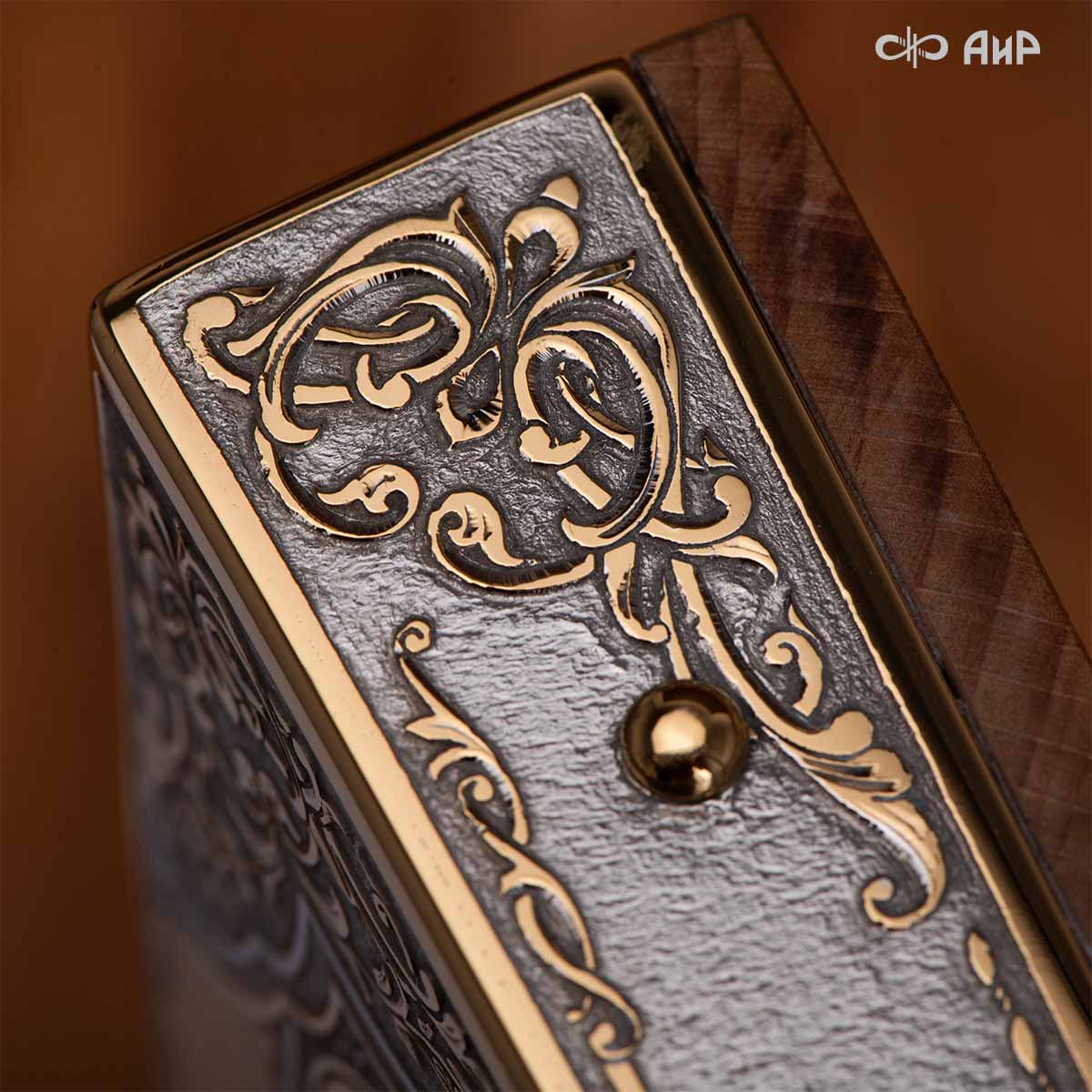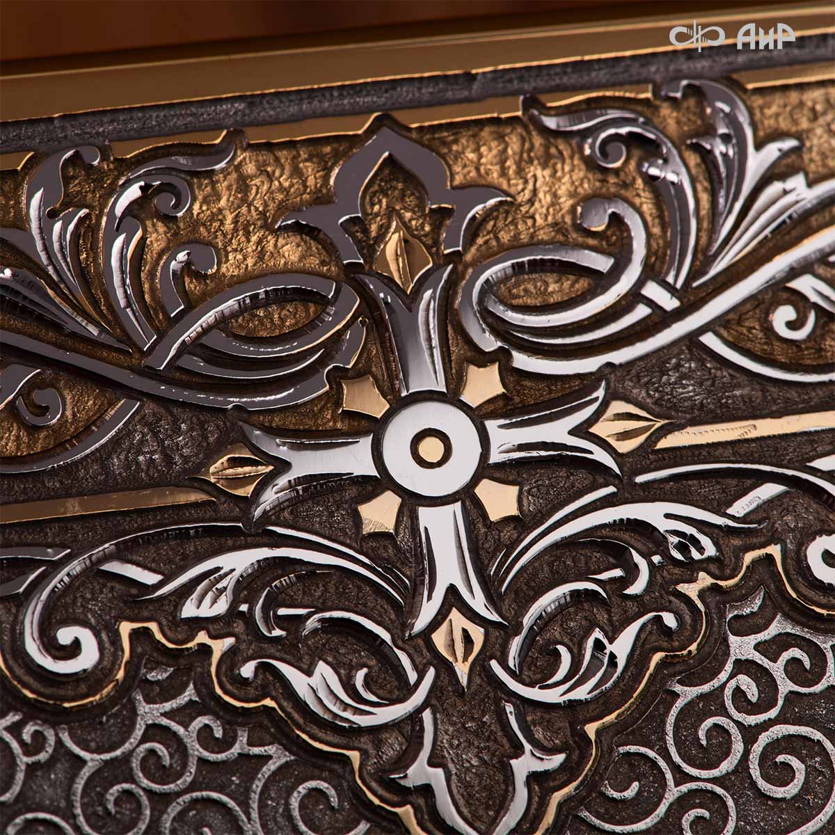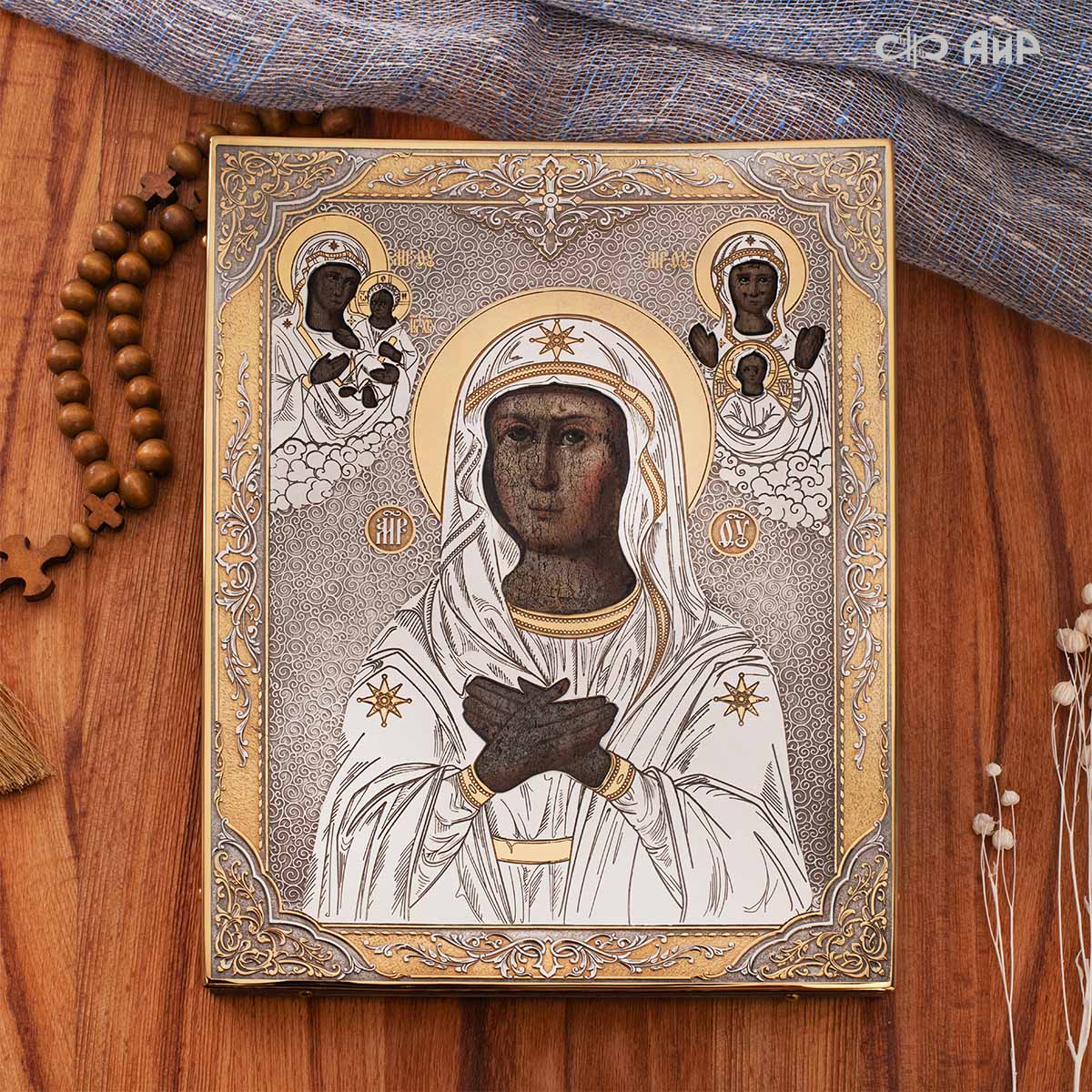 Современный оклад иконы Божьей Матери (икона заказчика, XIX век), выполненный мастерами компании “АиР”, является настоящим произведением искусства. Он изготовлен с использованием высочайших технологий и материалов, каждый его элемент выполнен с тщательной проработкой деталей, что делает икону настоящим произведением искусства. Златоуст известен своими уникальными традициями художественного ремесла, и этот оклад является ярким примером мастерства и преданности своему делу. Мастера “АиР” использовали уникальные технологии и традиционные приёмы художественной обработки металлов, чтобы создать этот шедевр. Оклад покрыт золотом высшей пробы (999,9°) толщиной в 1 микрон, что придает иконе особую ценность и благородство. Золото символизирует чистоту, вечность и божественное сияние. Золотой оклад не только подчеркивает духовное значение иконы, но и делает её ещё более величественной и торжественной, привлекая внимание верующих и ценителей искусства.