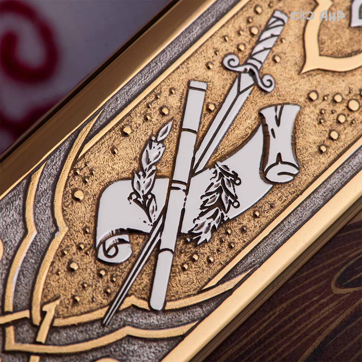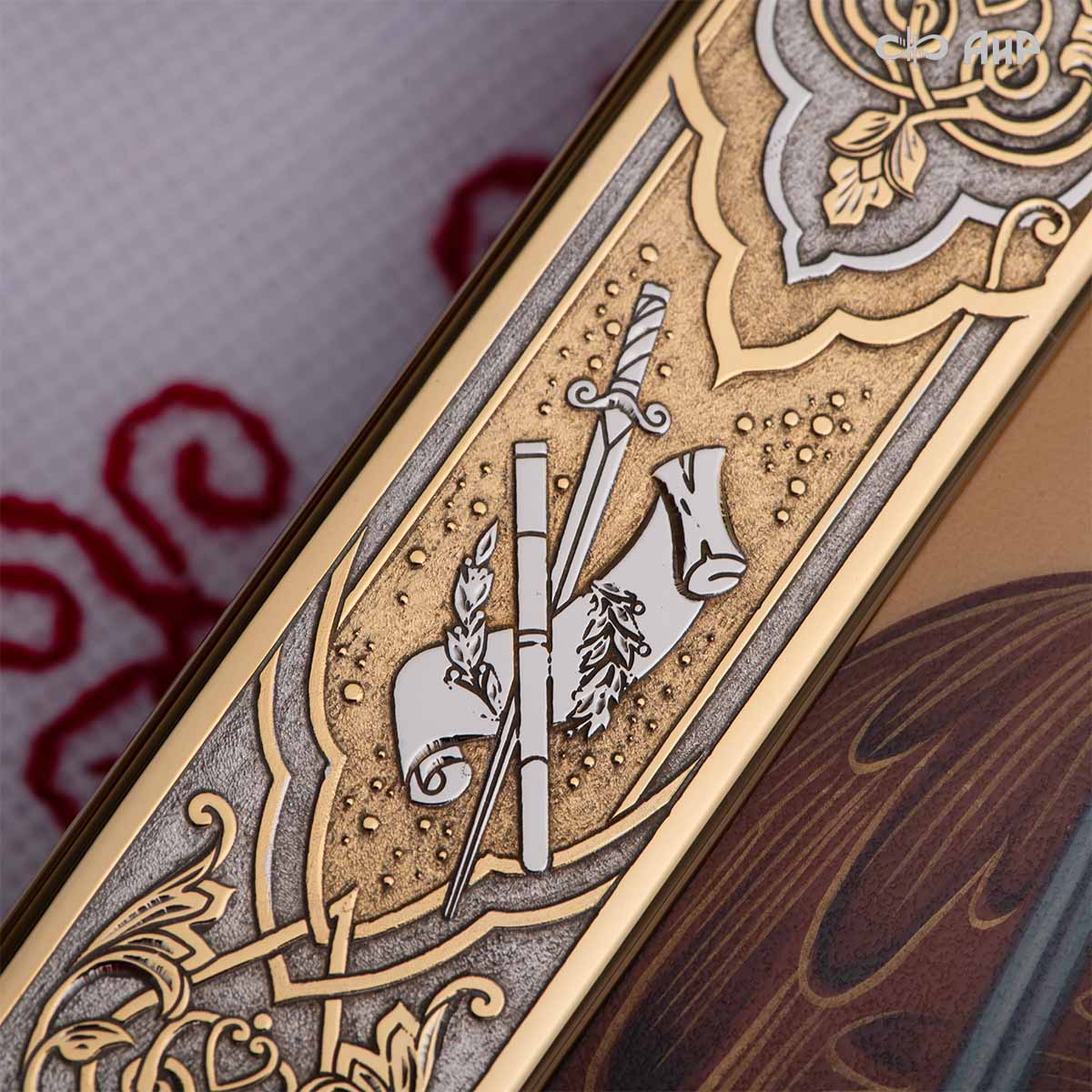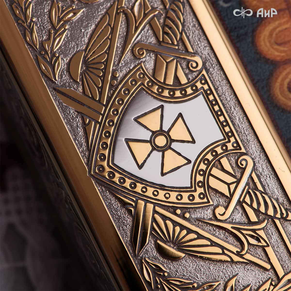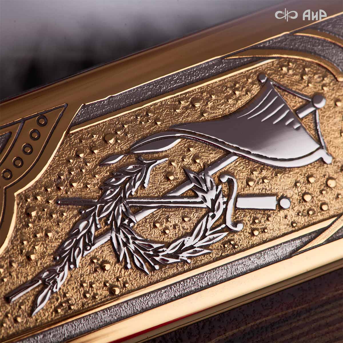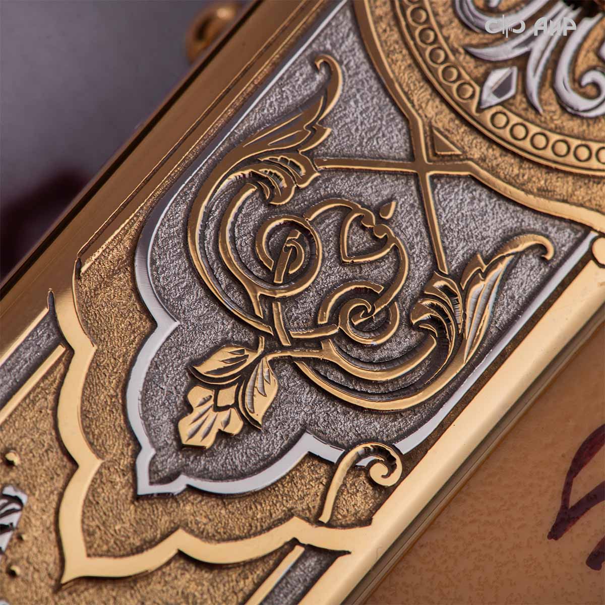 Оклад иконы «Архангел Михаил», выполненный мастерами компании «АиР» в г. Златоуст, придает ей особую ценность и торжественность. Оклад покрыт золотом высшей пробы (999,9°) толщиной в 1 микрон, что подчеркивает высокое мастерство и искусство создателей. Золотое покрытие не только украшает икону, но и символизирует вечность и непреходящую ценность духовного наследия. Оно защищает икону от внешних воздействий и придает ей дополнительное сияние, усиливая впечатление от образа святого. Такой оклад делает икону не только объектом религиозного почитания, но и произведением искусства, достойным восхищения и уважения.