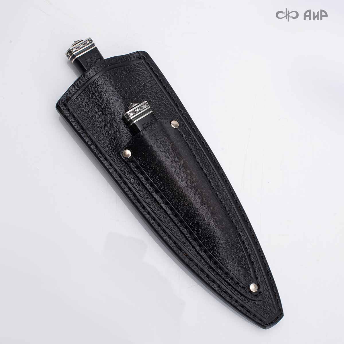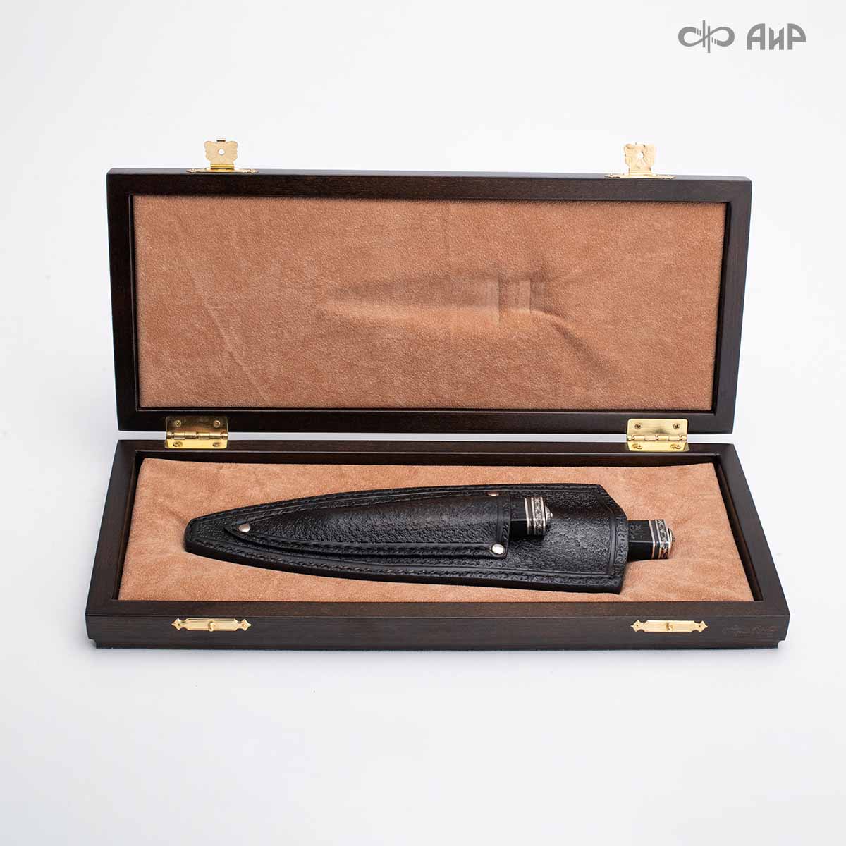 В комплекте: авторские кожаные ножны, подарочная коробка.
