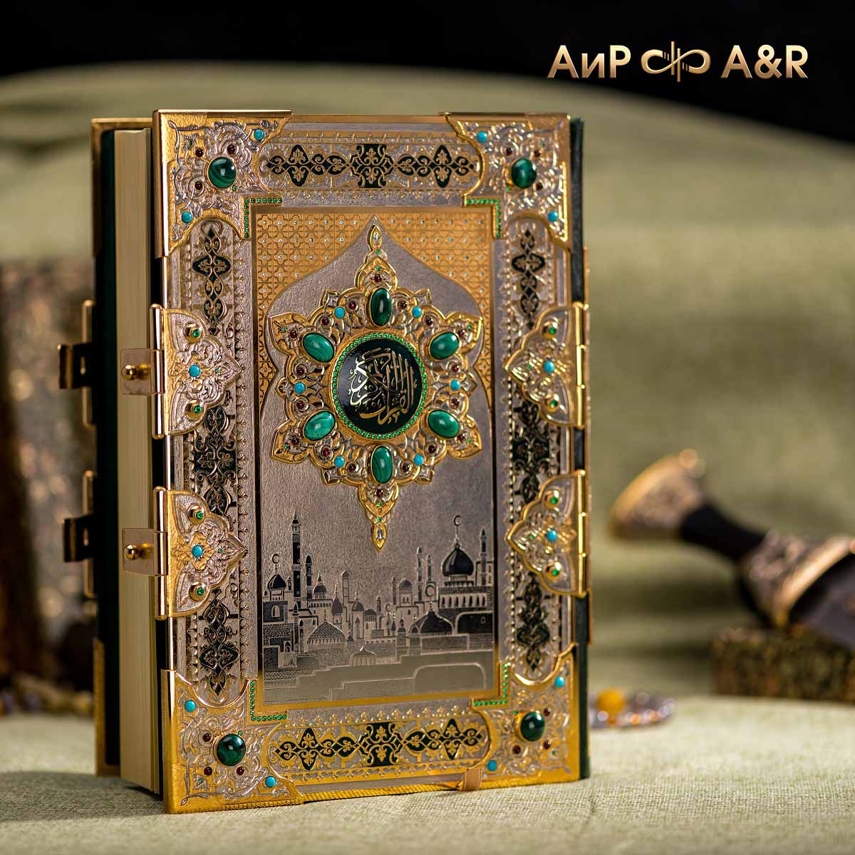 Коран на арабском языке в окладе с малахитом, бирюзой, гранатами, Артикул: 36931