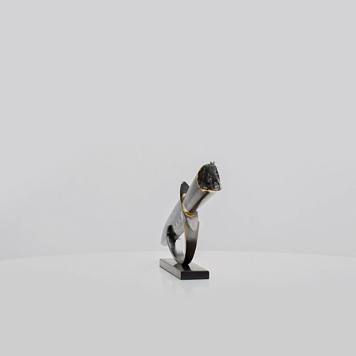 Почему изображены кони? Здесь переплелось несколько идей: крылатый конь присутствует в гербе города Златоуста, также конь – символ природной красоты, стремительности, грациозности, часто скорость мысли сравнивают с бегом несущихся скакунов. Именно летящий конь в полной мере может подчеркнуть красоту такого металла, как дамаск.