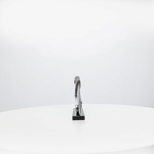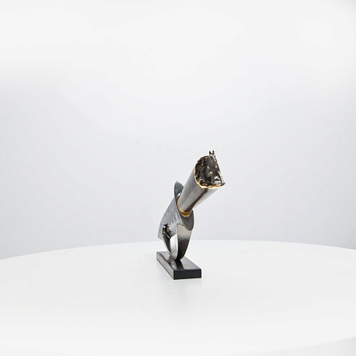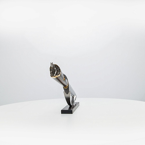 Почему изображены кони? Здесь переплелось несколько идей: крылатый конь присутствует в гербе города Златоуста, также конь – символ природной красоты, стремительности, грациозности, часто скорость мысли сравнивают с бегом несущихся скакунов. Именно летящий конь в полной мере может подчеркнуть красоту такого металла, как дамаск.