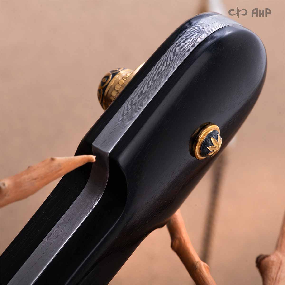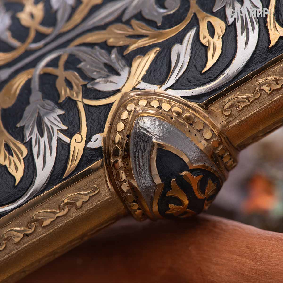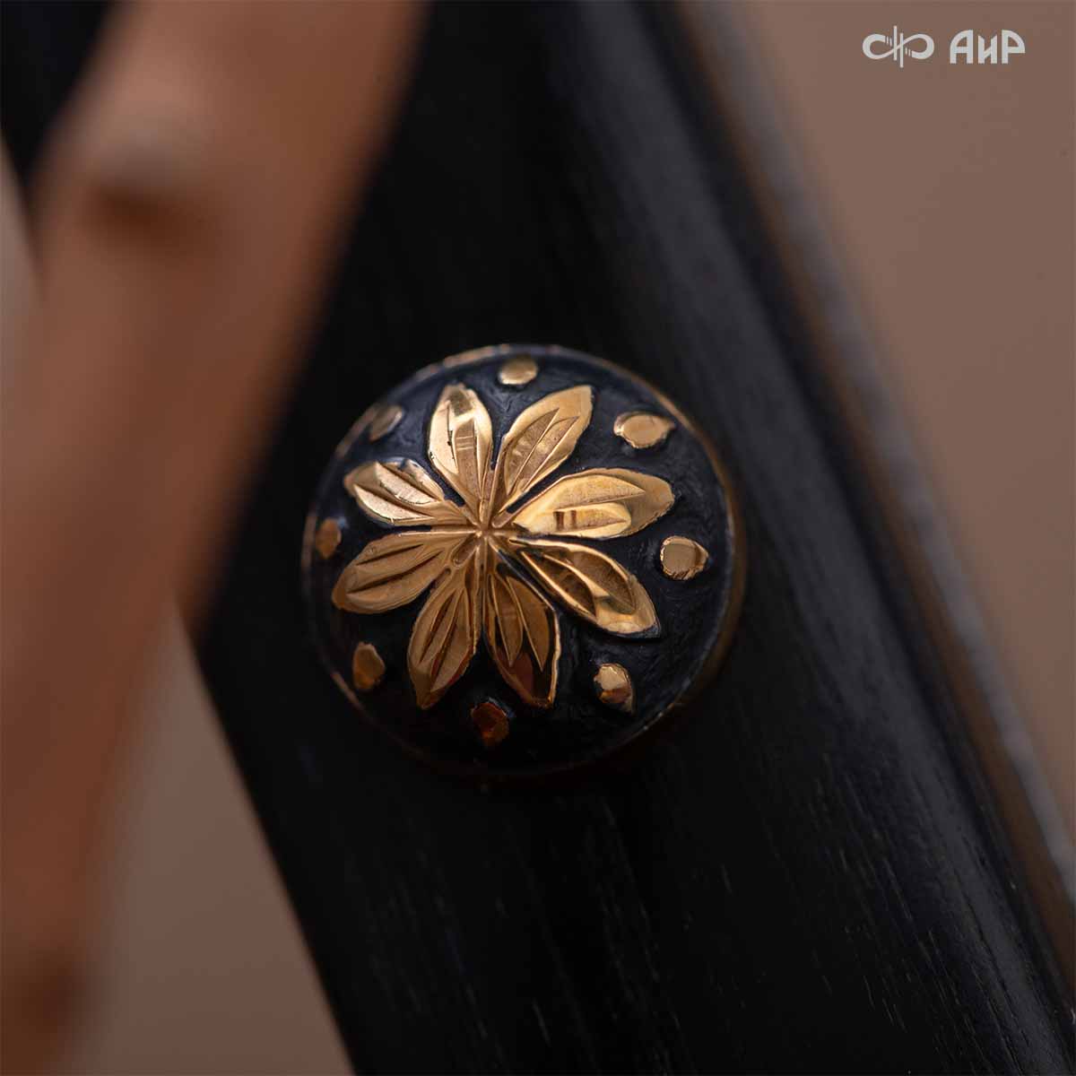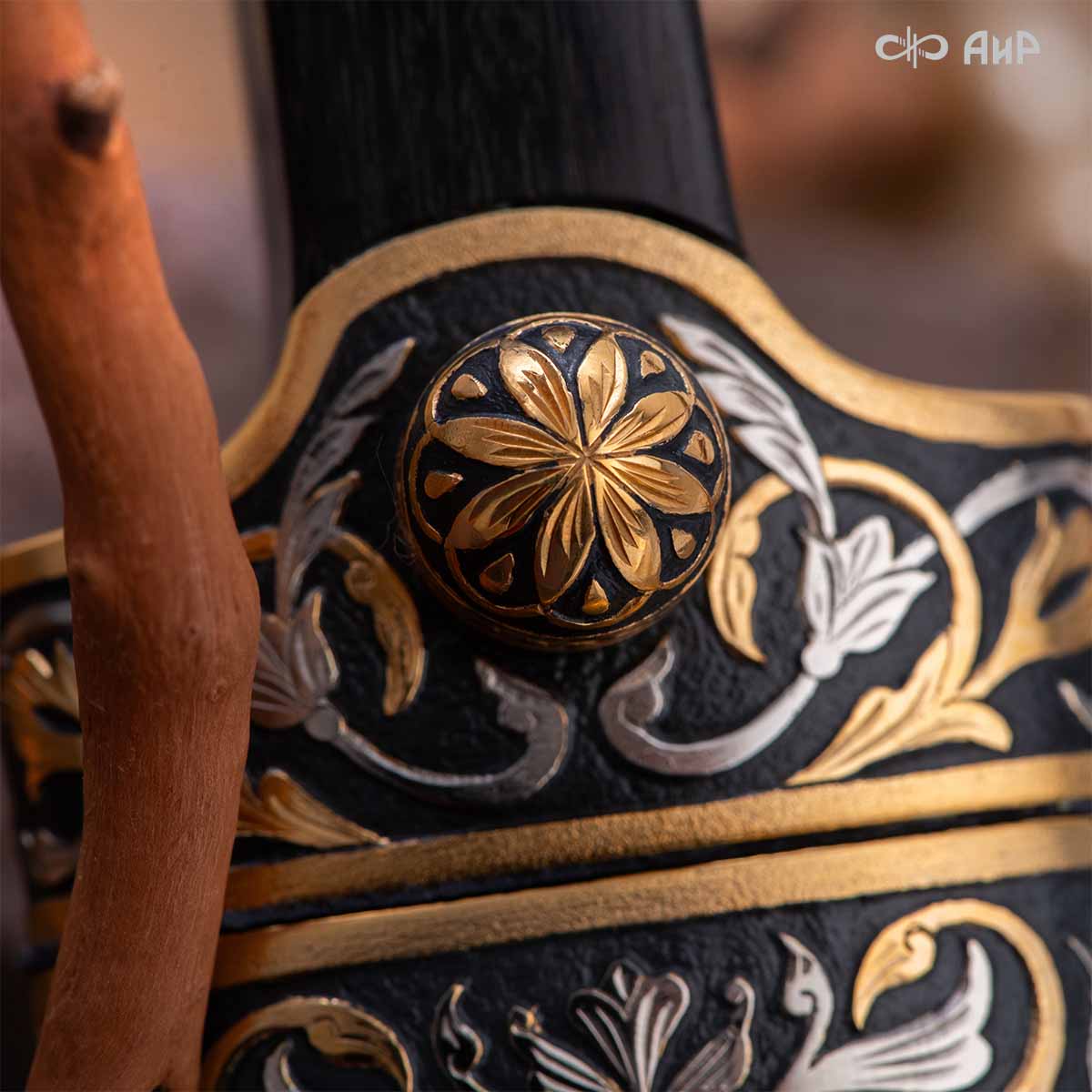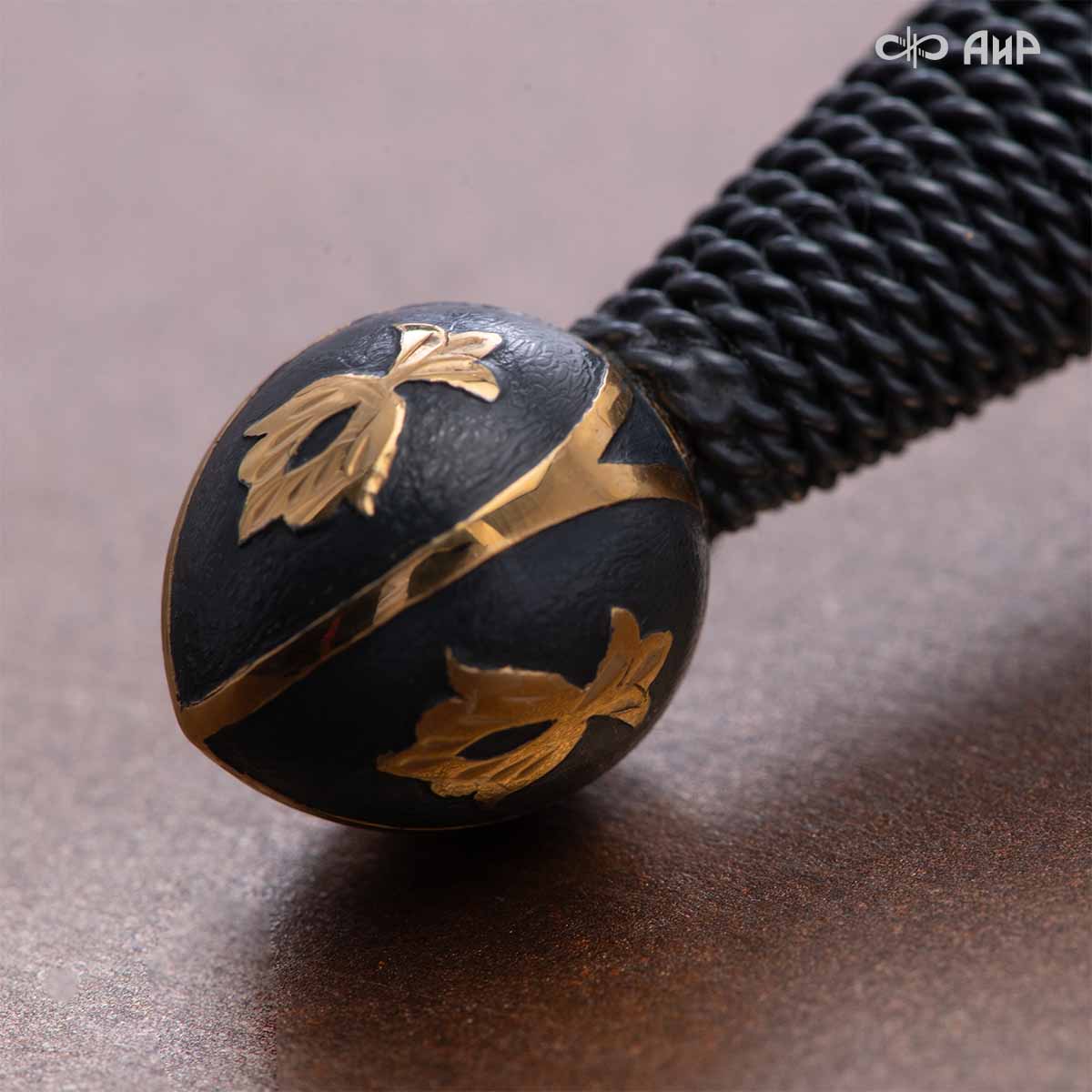 Компания «АиР» изготавливает кинжалы кавказского типа, украшенные золотом, серебром или мельхиором. Каждый кинжал – это яркий пример ручной работы и вдохновенного коллективного творчества. Оружейники, художники и граверы компании достойно хранят и развивают златоустовские традиции декорирования металла. В процессе создания каждого изделия соединяются талант, творческий подход и высокий уровень исполнения. Представленный экземпляр богато украшен орнаментом.