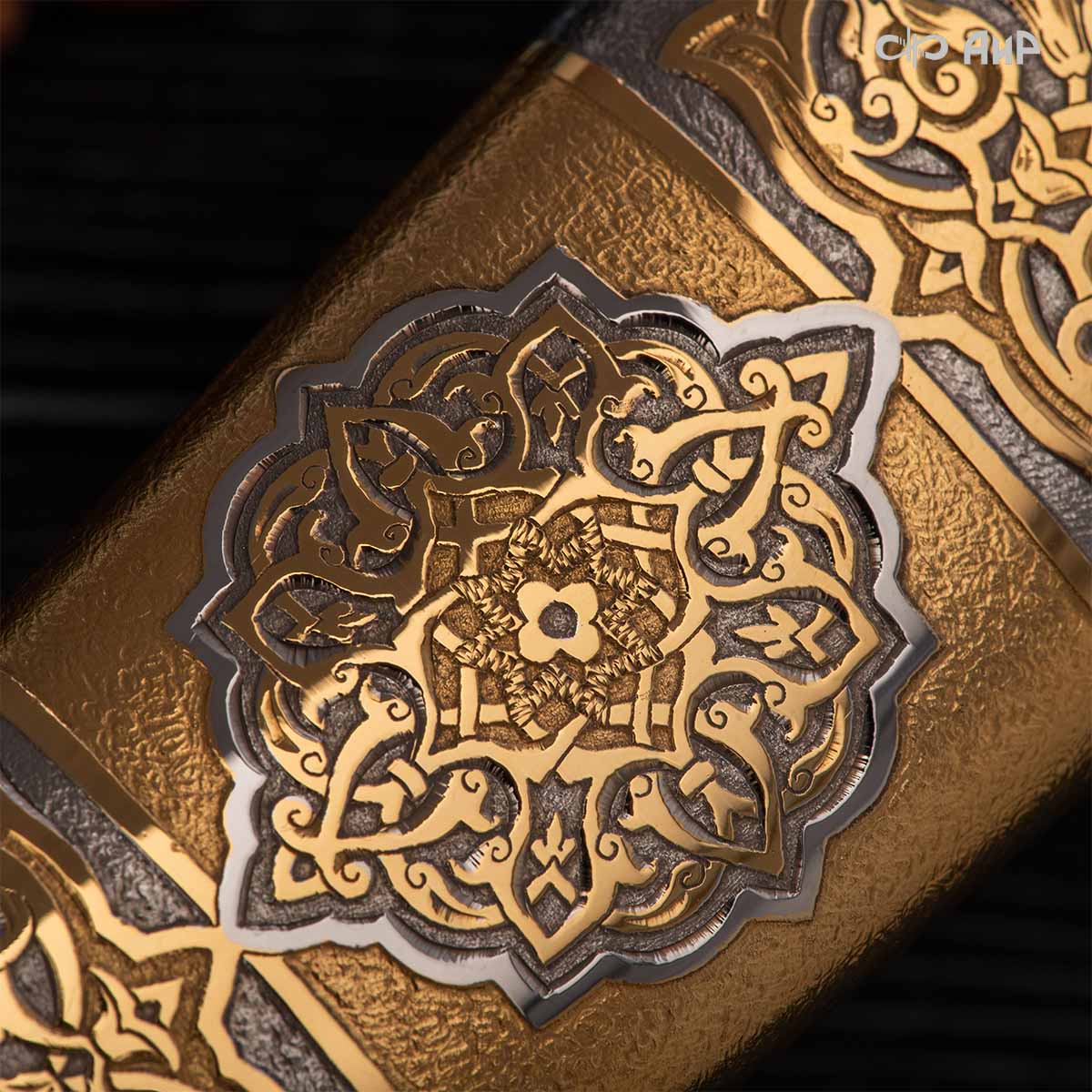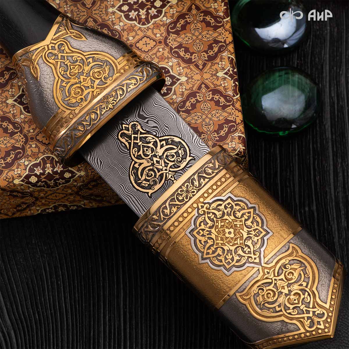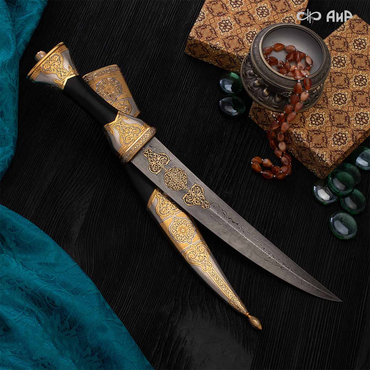 Кинжал восточного типа из дамасской стали, украшенный золотом – подарок, символизирующий харизму, силу и мужественность своего обладателя. Срок изготовления 25-40 рабочих дней, 100% предоплата.