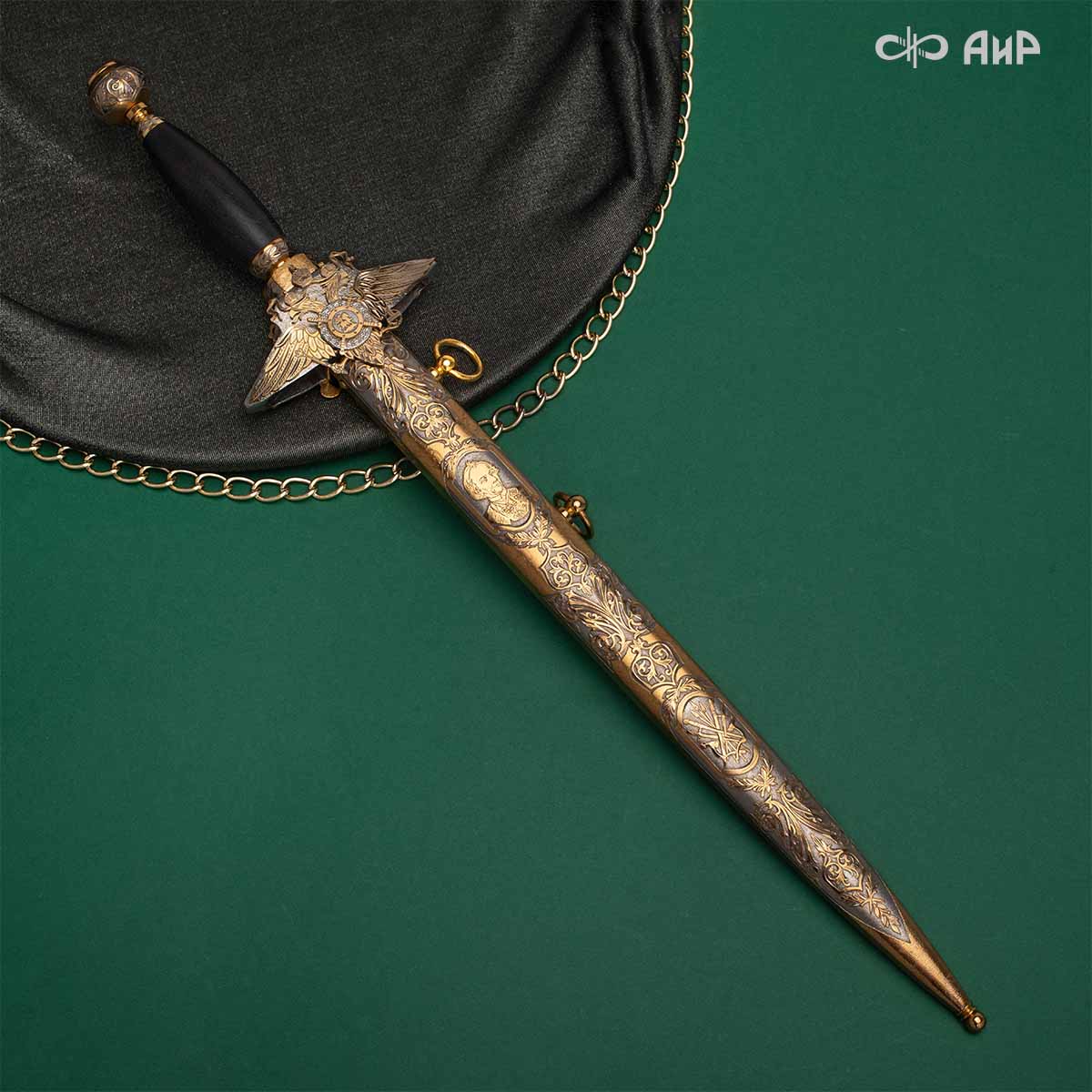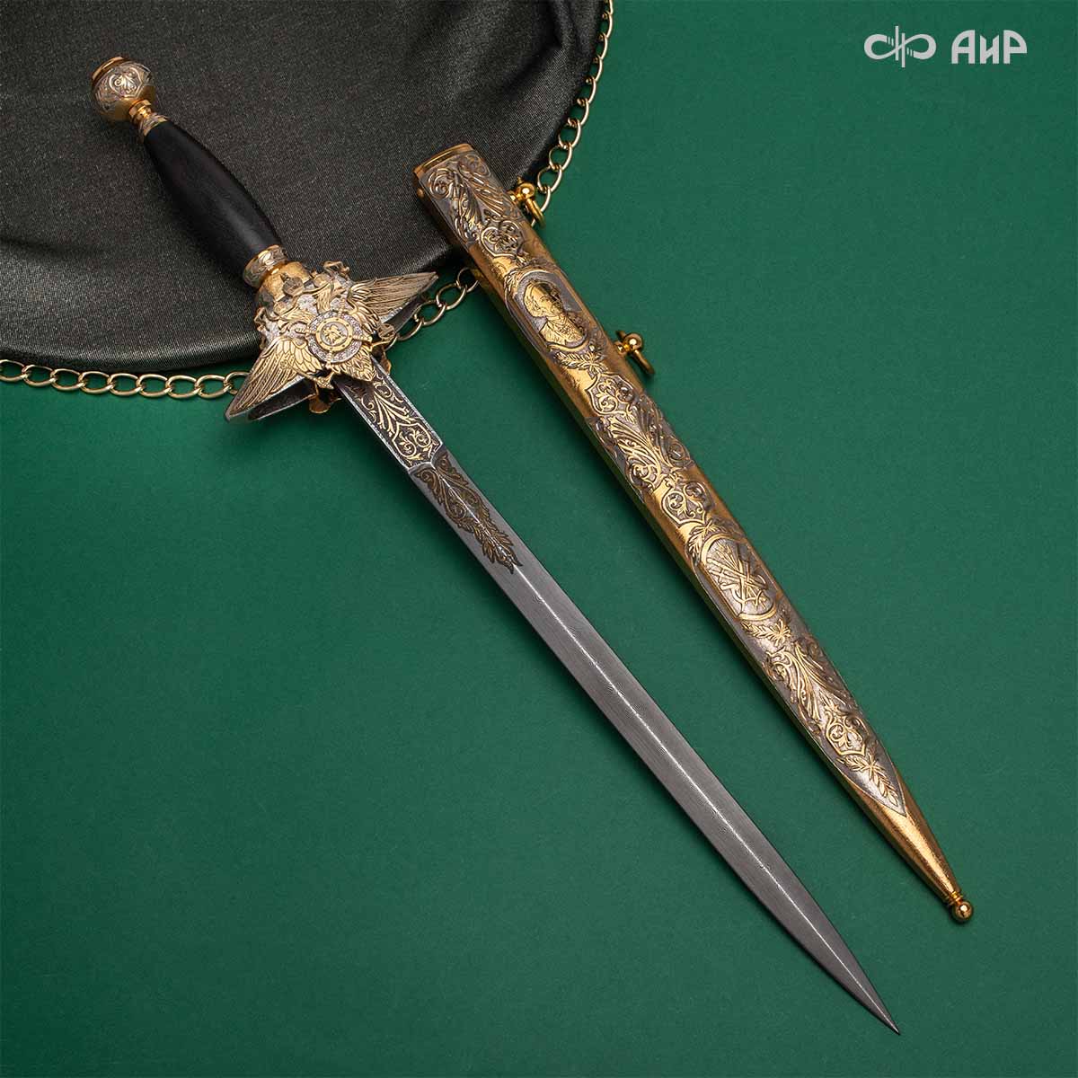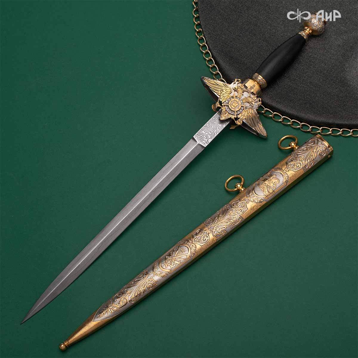 Компания «АиР» изготавливает разнообразные кортики для офицеров, адмиралов и генералов, которые различаются формой крестовины, вариантами украшения клинка и ножен. Преимущества кортиков от Компании «АиР» ─ исключительное качество изделий, творческий подход и высокая художественная ценность клинкового оружия за счет ручного труда и богатейших традиций златоустовских художников, оружейников и граверов.