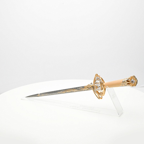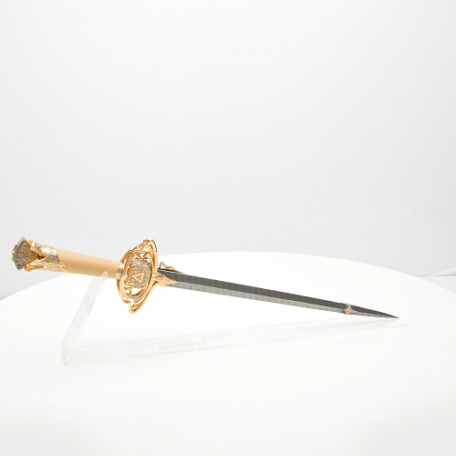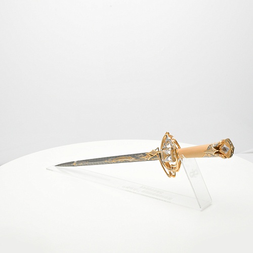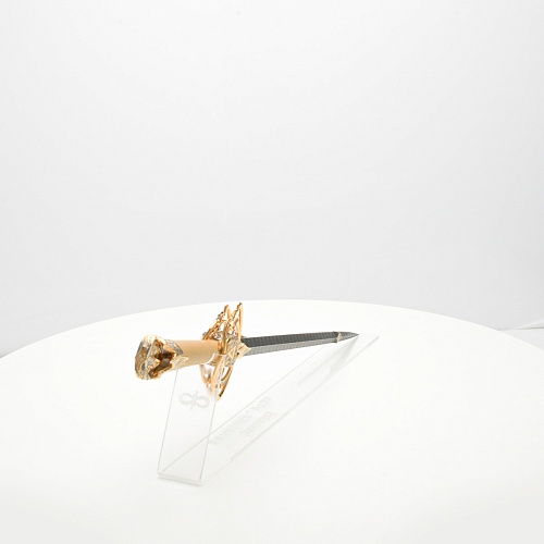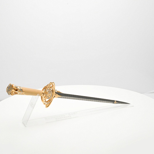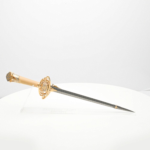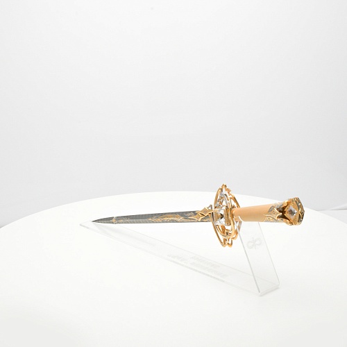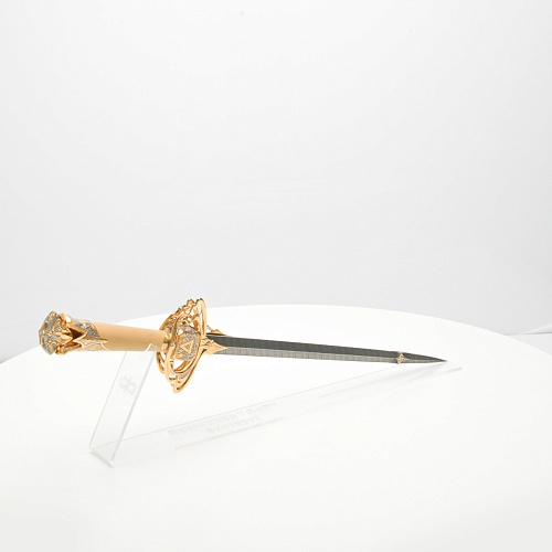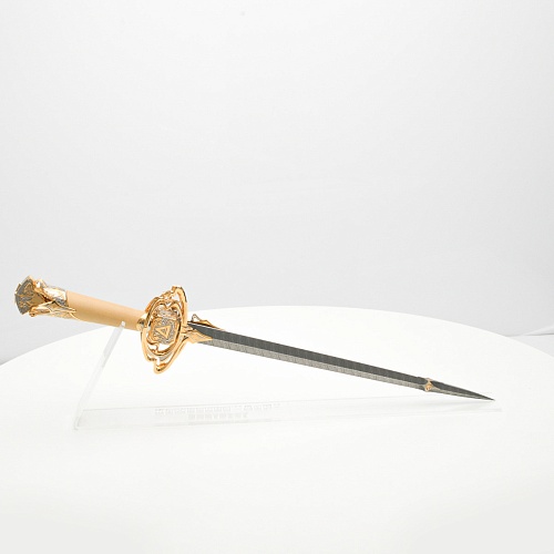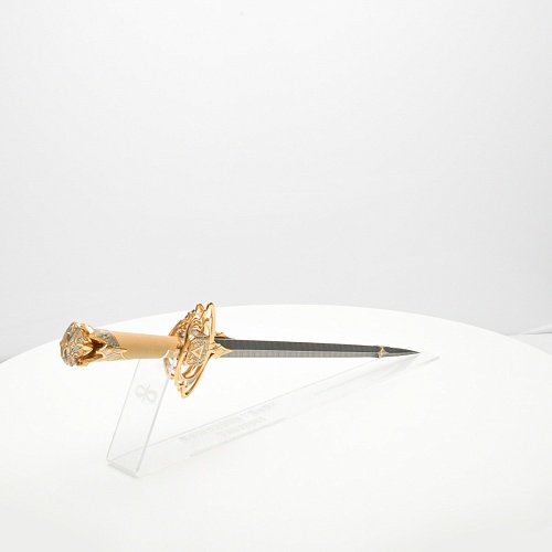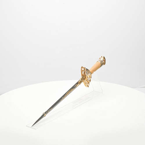 Стилеты прекрасны и не нуждаются в дополнительной защите или в форме, которая могла бы их ограничить. Каждая, выполненная мастерами деталь, плавно перетекает в другую, образуя почти невидимую взаимосвязь, что создает целостность восприятия. Лицевая сторона стилетов означает физическое проявление стихии, а центральный знак на обратной стороне являет собой «тонкое, преднебесное» состояние стихии, то есть ее духовное проявление. Прямой, зауженный клинок с утолщением в конце означает течение энергии с мощной концентрацией к высшим силам Вселенной.