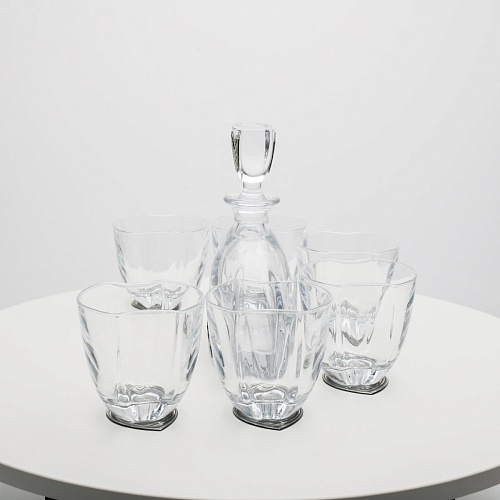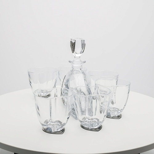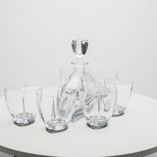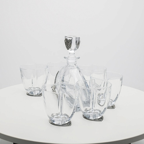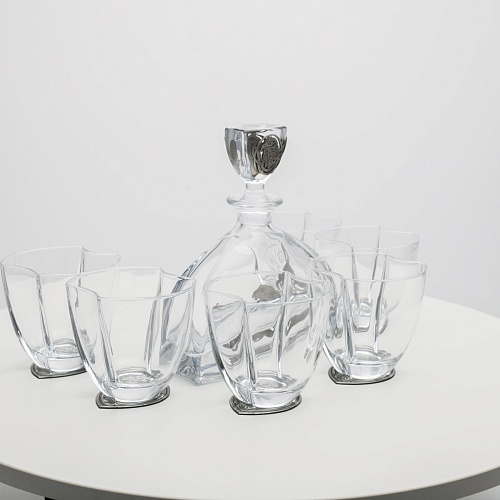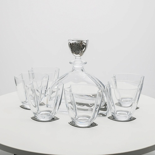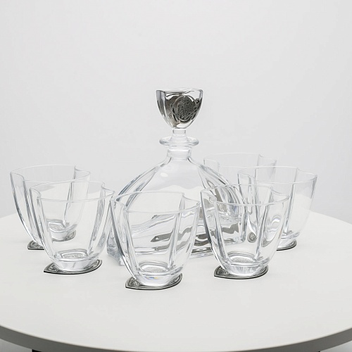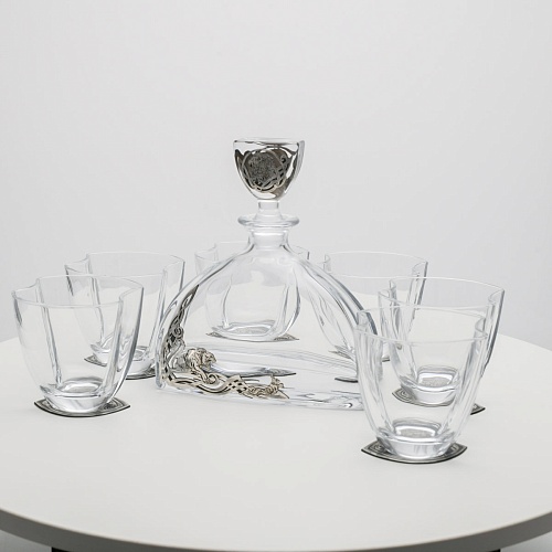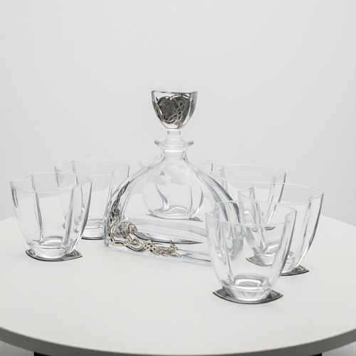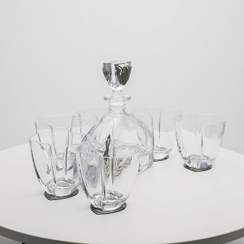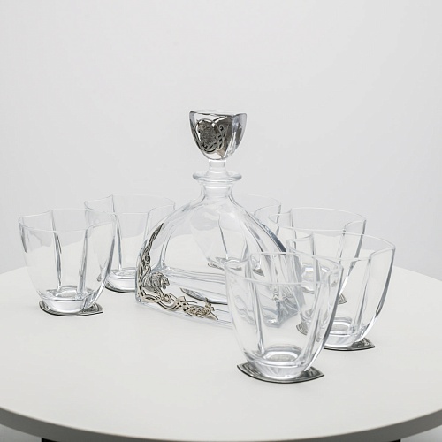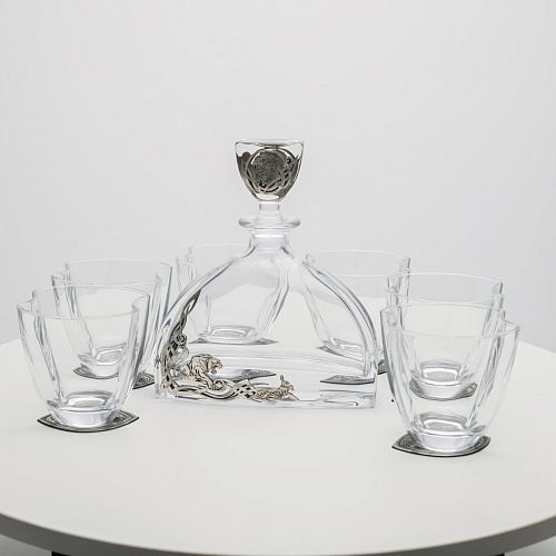 В набор для виски "Men’s Club" (в переводе с английского - "Мужской клуб") входят шесть бокалов и штоф объемом 750 мл из богемского стекла. Бокалы и штоф украшены в художественном стиле златоустовской гравюры на металле. У стеклянных бокалов и штофа на дне имеются украшенные металлические подставки. Кроме того, стеклянная пробка штофа также декорирована накладкой.