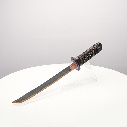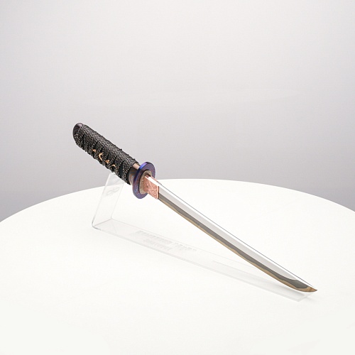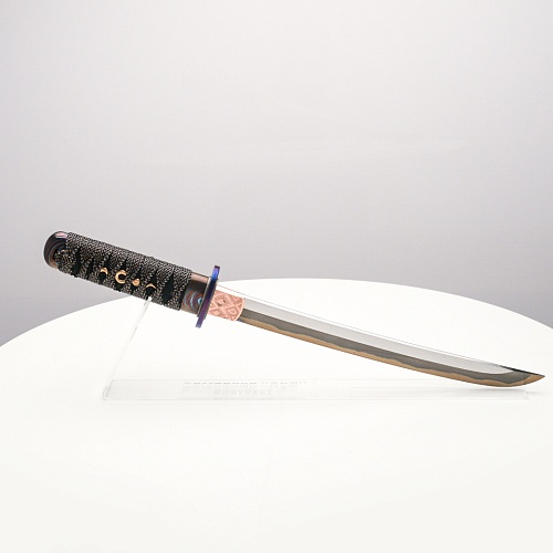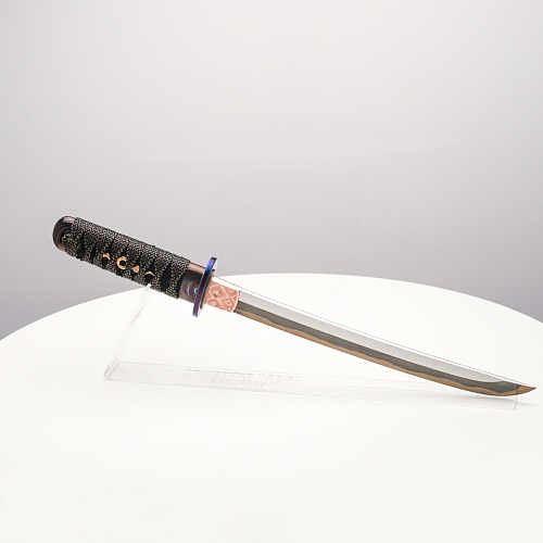 Танто "Хокку" авторы посвятили жанру традиционной японской лирической поэзии - японским трехстишиям хокку. В представленном танто, подобно в хокку, три части изделия особо заметны: рукоять из кожи ската с оригинальными мэнуки, клинок и цуба из титанового дамаска ZlaTi.Производитель клинка танто "Хокку" из углеродистой стали DNH7 - всемирно известная компания "CITADEL" (Cambodia).
